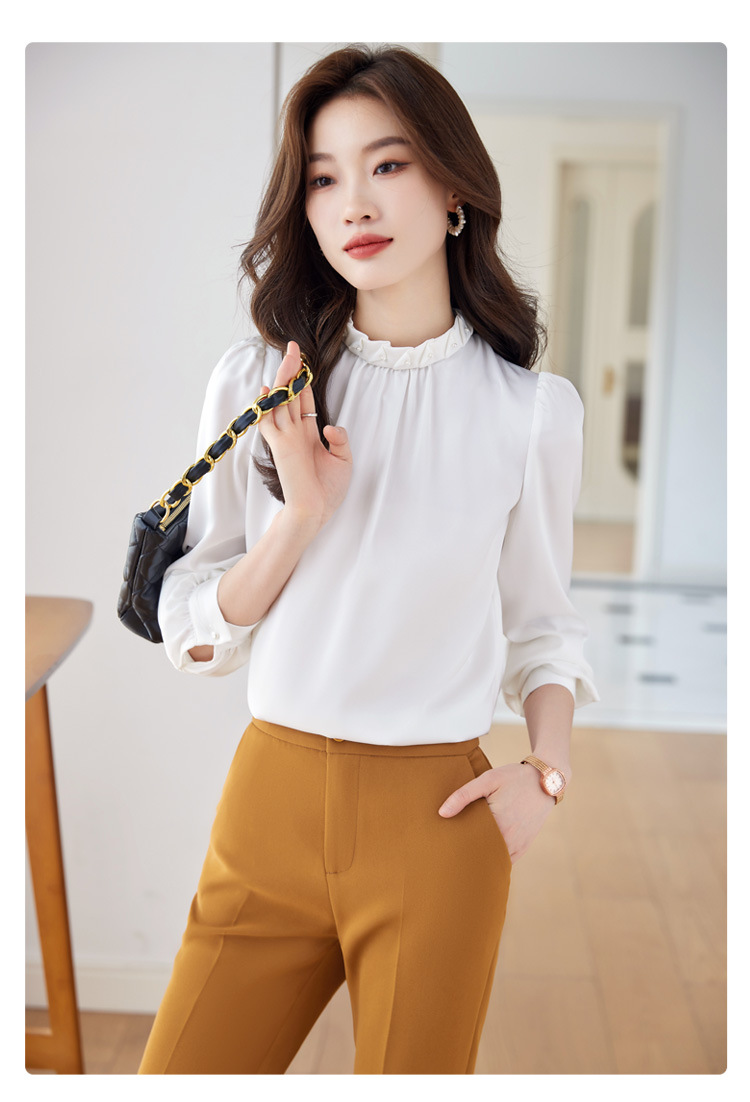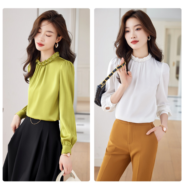 아세트산 새틴 셔츠 여성용 긴 소매 봄과 가을 새로운 패션 서양식 여성 전문 셔츠 프렌치 칼라 쉬폰 셔츠