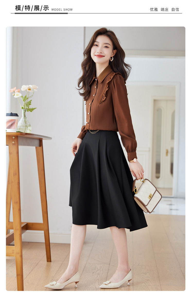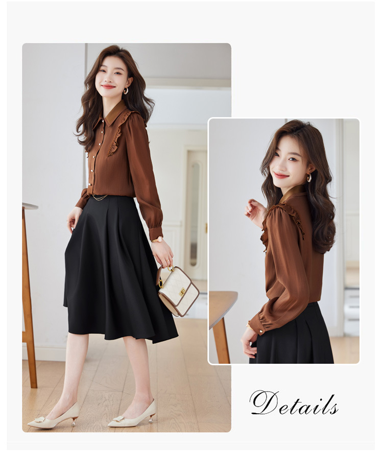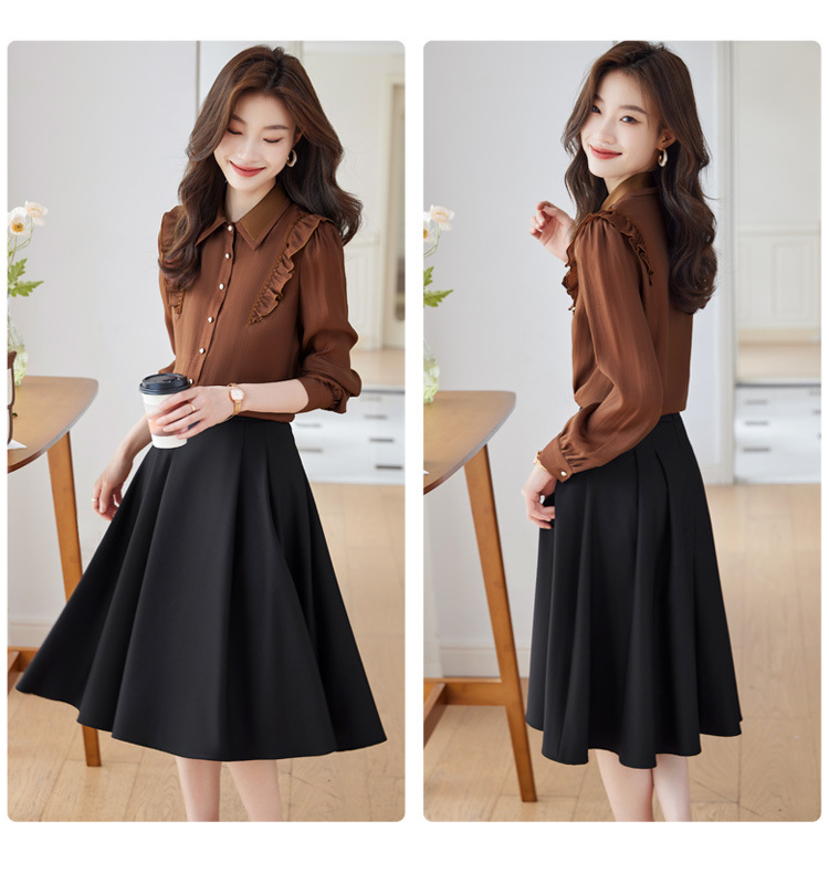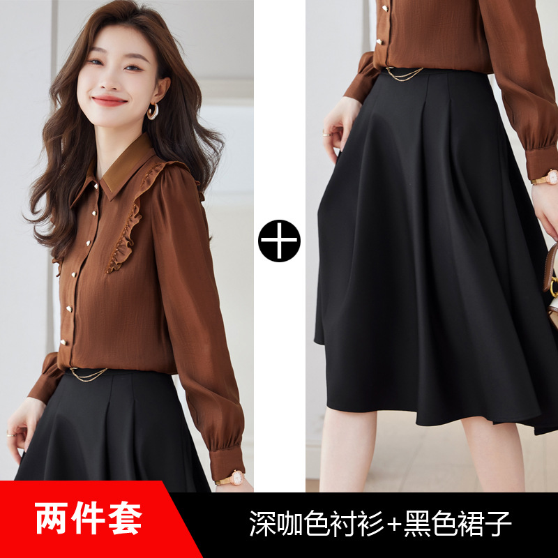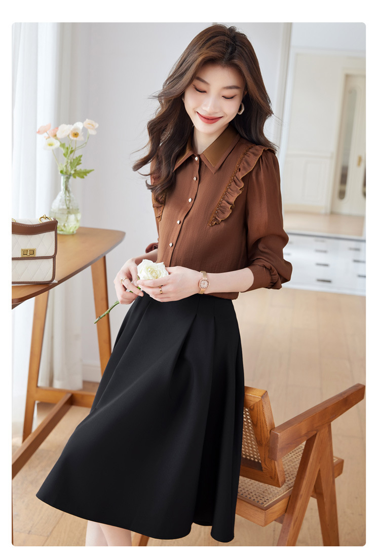 • 다크 브라운 6758 셔츠 + 1098 블랙 스커트