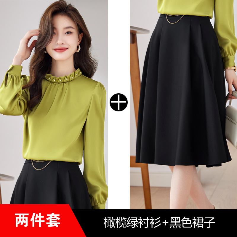• 올리브 그린 6759 셔츠 + 1098 블랙 스커트