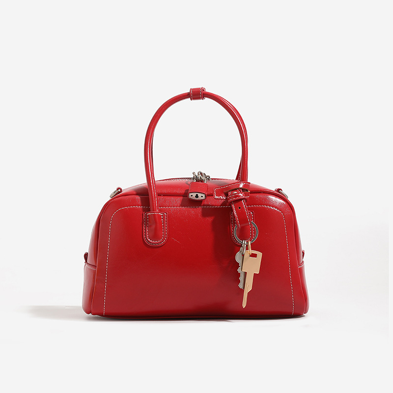 실버 도금 잠금 키가있는 스웨이드 레트로 보스턴 가방 가을 및 겨울 통근 휴대용 볼링 가방 어깨 크로스 바디 백스토어 가기