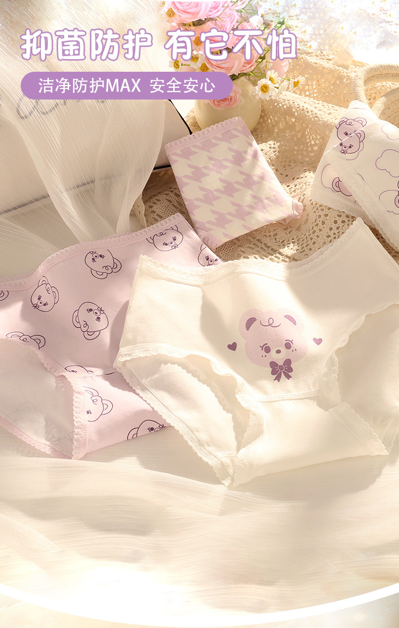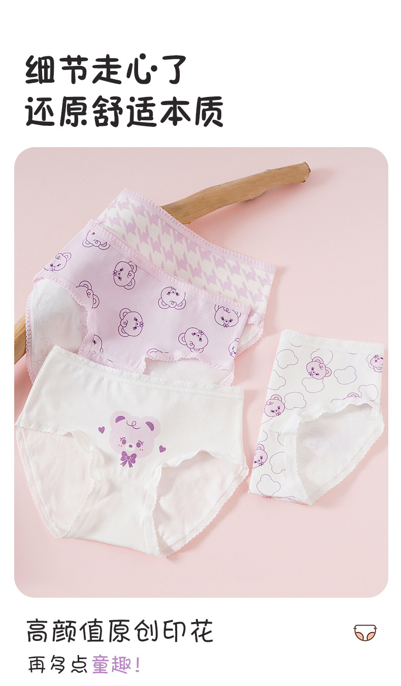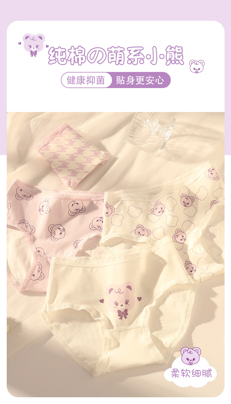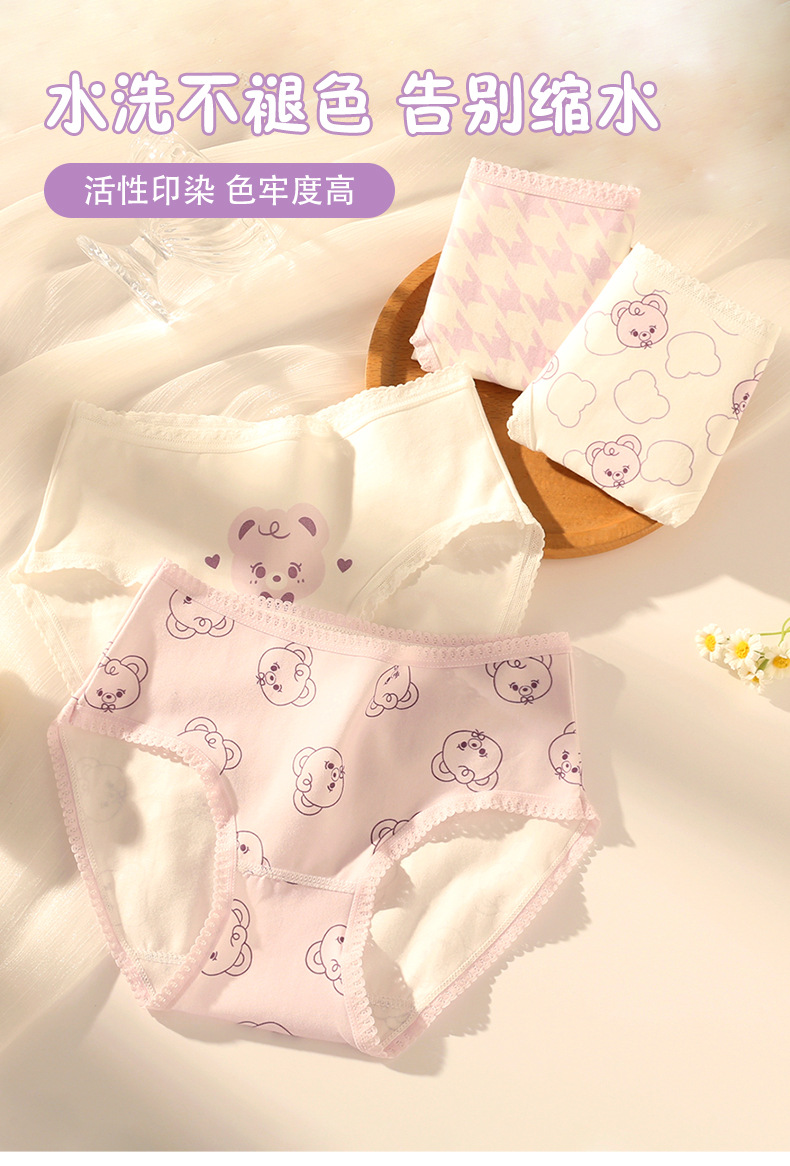 소녀 속옷 면화 브리프 소녀 달콤한 소녀 스타일 항균 속옷 피부 친화적 인 통기성 레이스 브리프