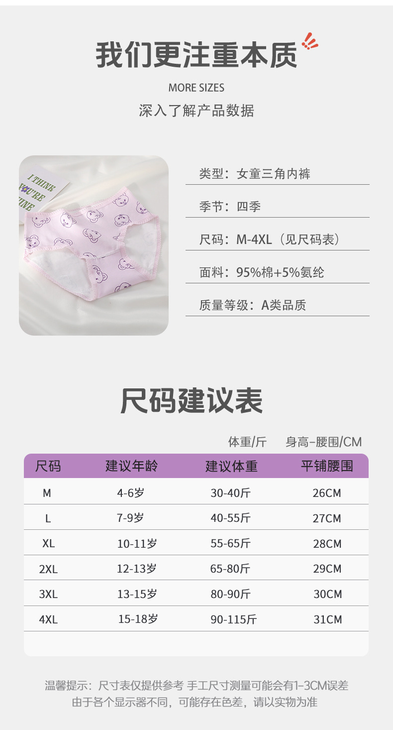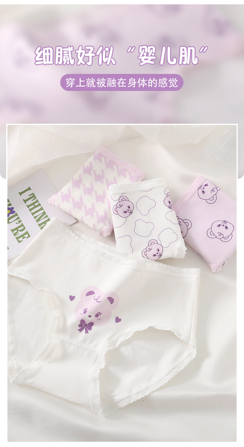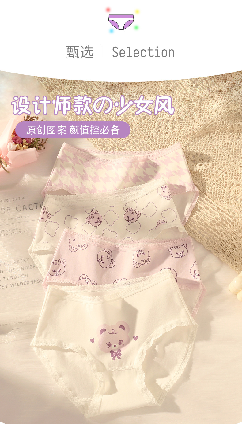 소녀 속옷 면화 브리프 소녀 달콤한 소녀 스타일 항균 속옷 피부 친화적 인 통기성 레이스 브리프