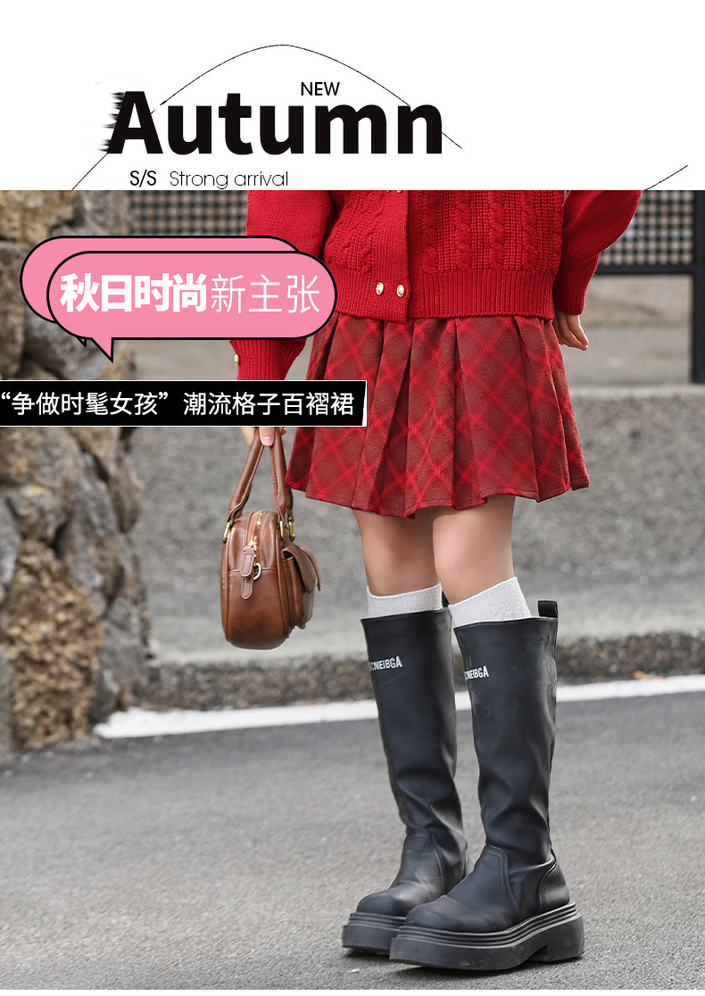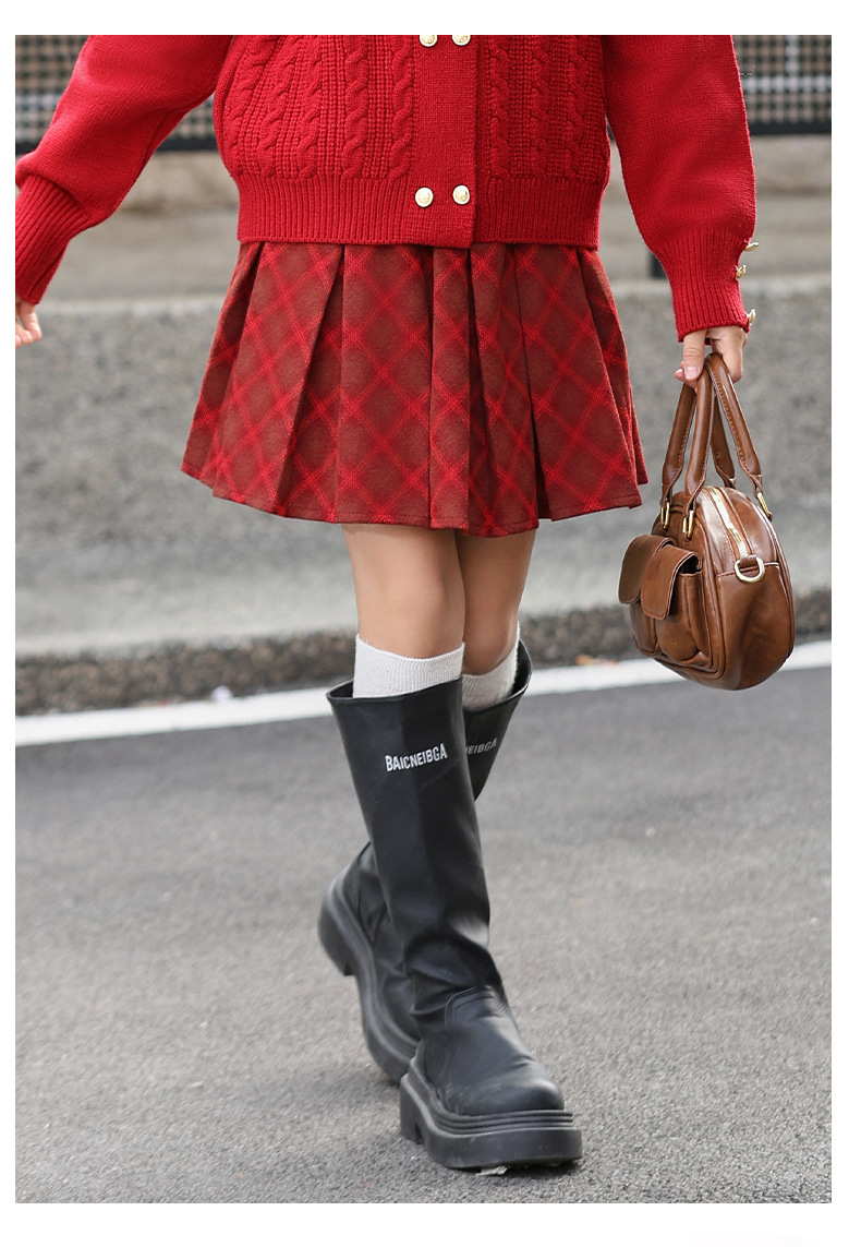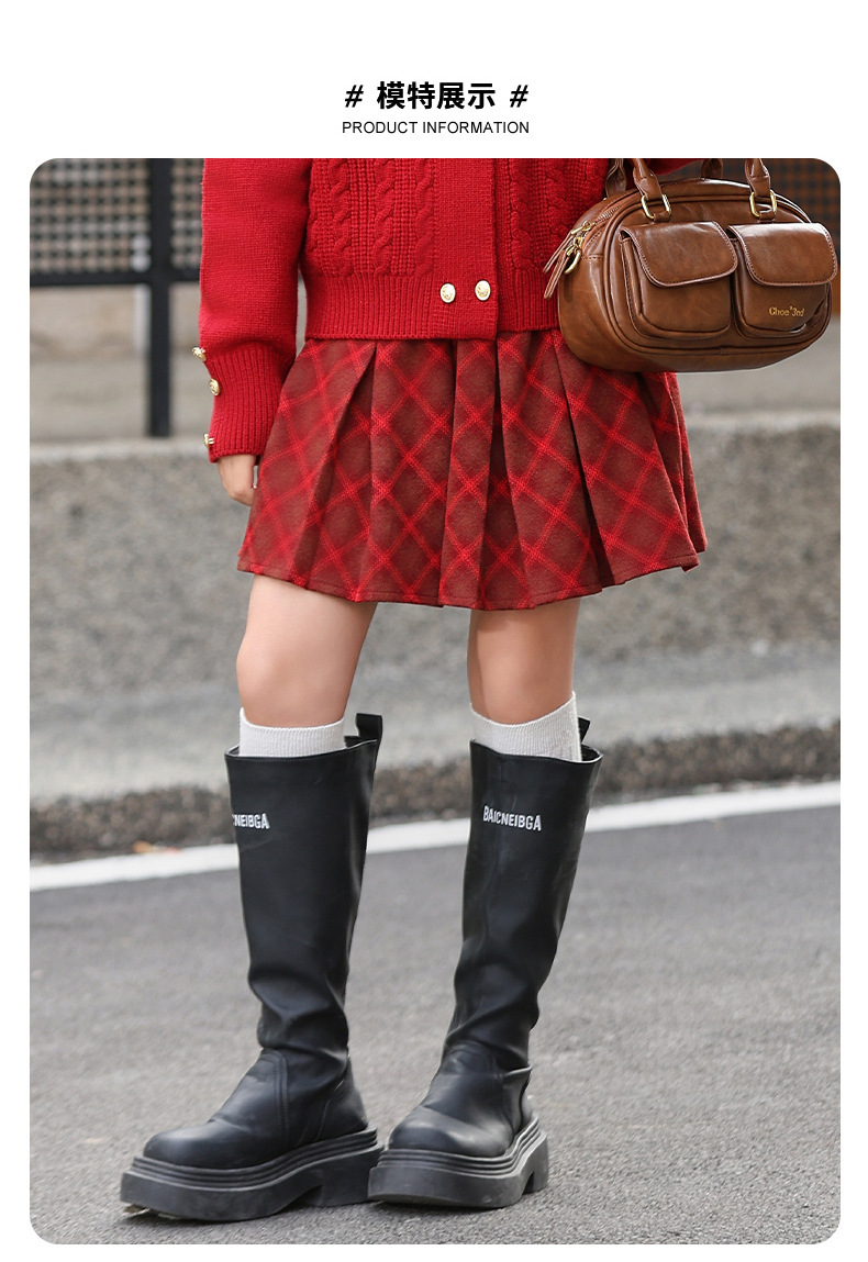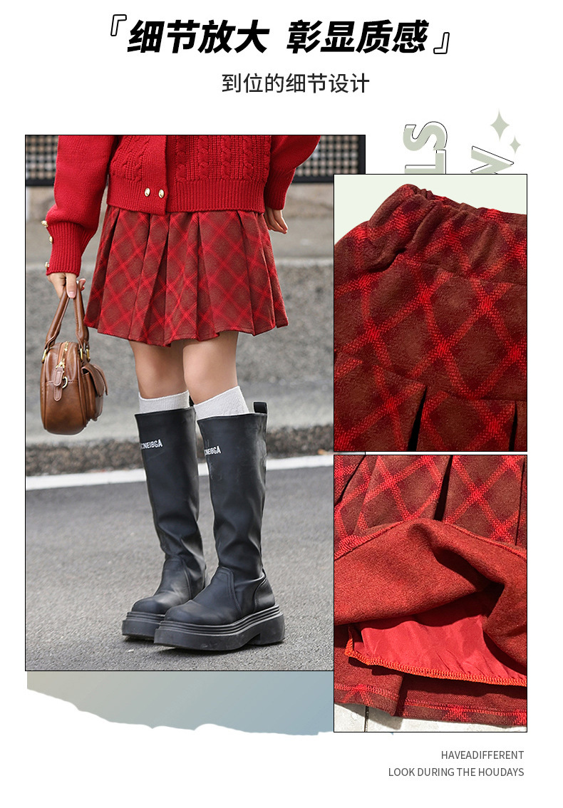 소녀 모직 치마 큰 어린이 느슨한 주름 치마 플러스 사이즈 빨간 격자 무늬 치마 가을 겨울 크리스마스 새해스토어 가기