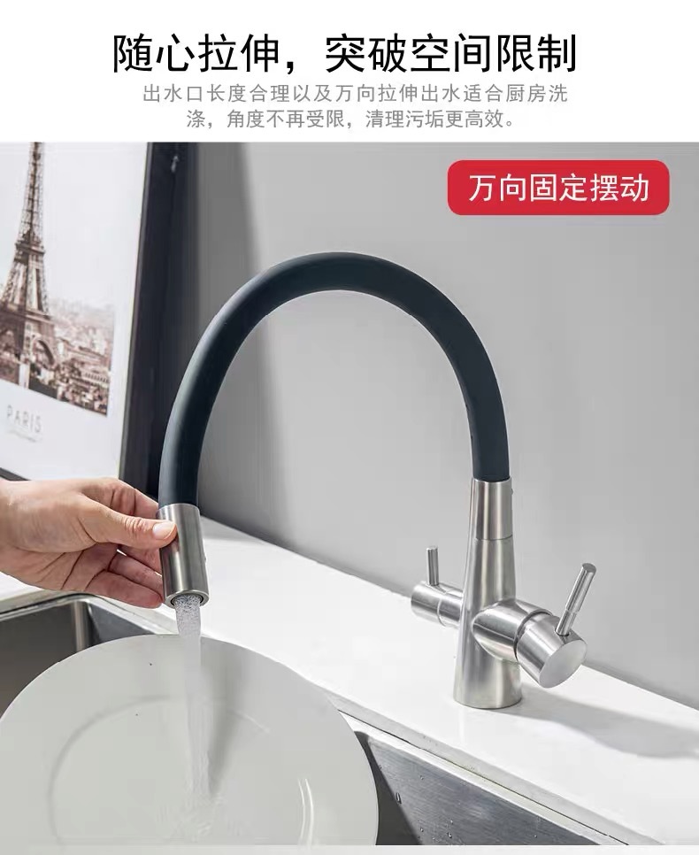 304 주방 정수 수도꼭지 3 대 1 수도꼭지 차갑고 뜨거운 추출 싱크대 식물성 분지 보편적 인 정수기 직접 음주스토어 가기