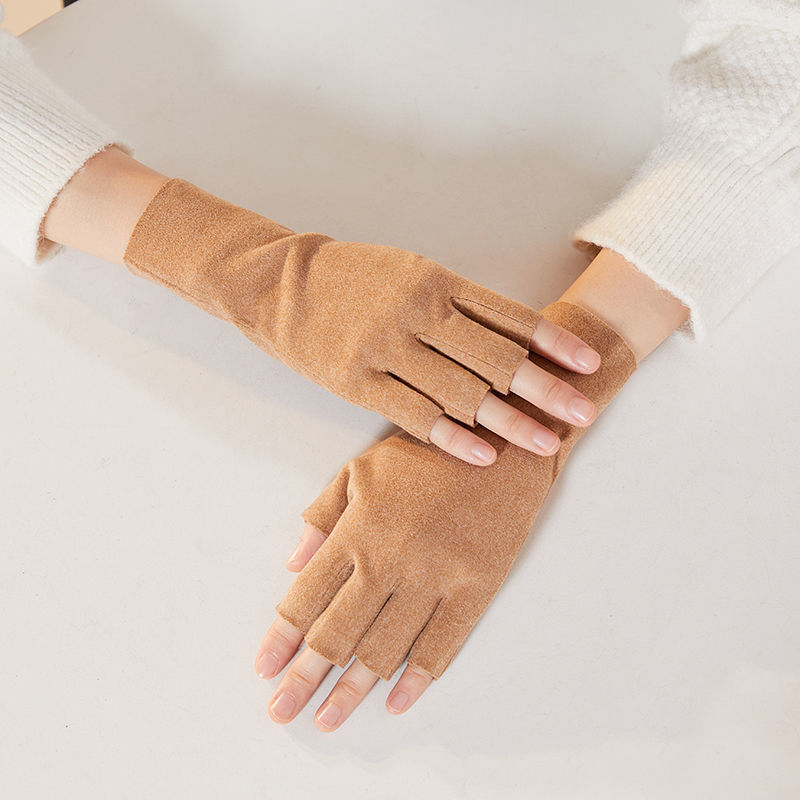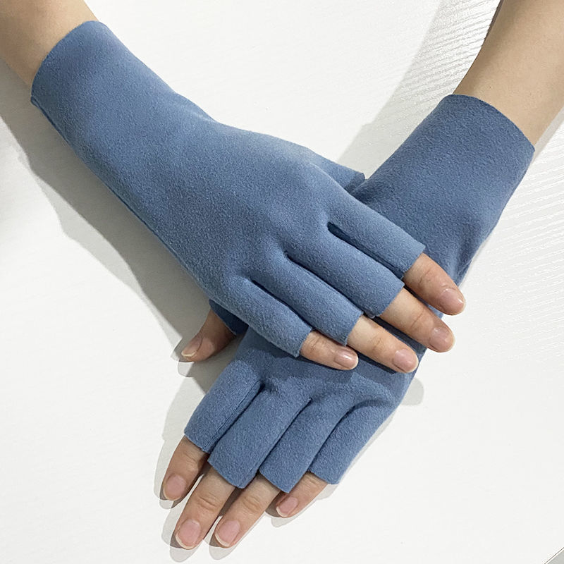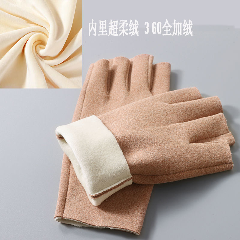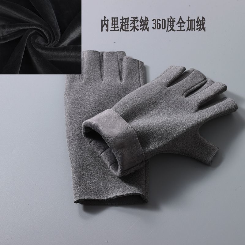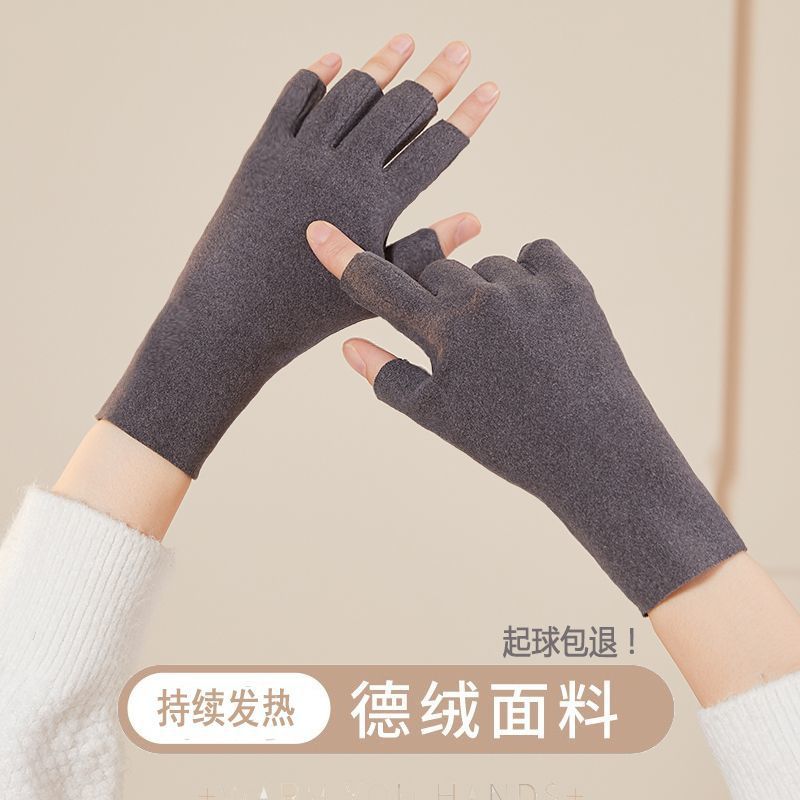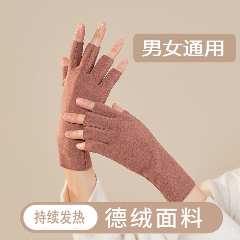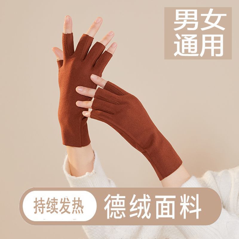 노출 된 손가락이있는 장갑 자체 가열 반 손가락 남성과 여성의 겨울 벨벳 기모 누출 학생들은 열린 사이클링 두 손가락 터치 스크린을 작성합니다.스토어 가기