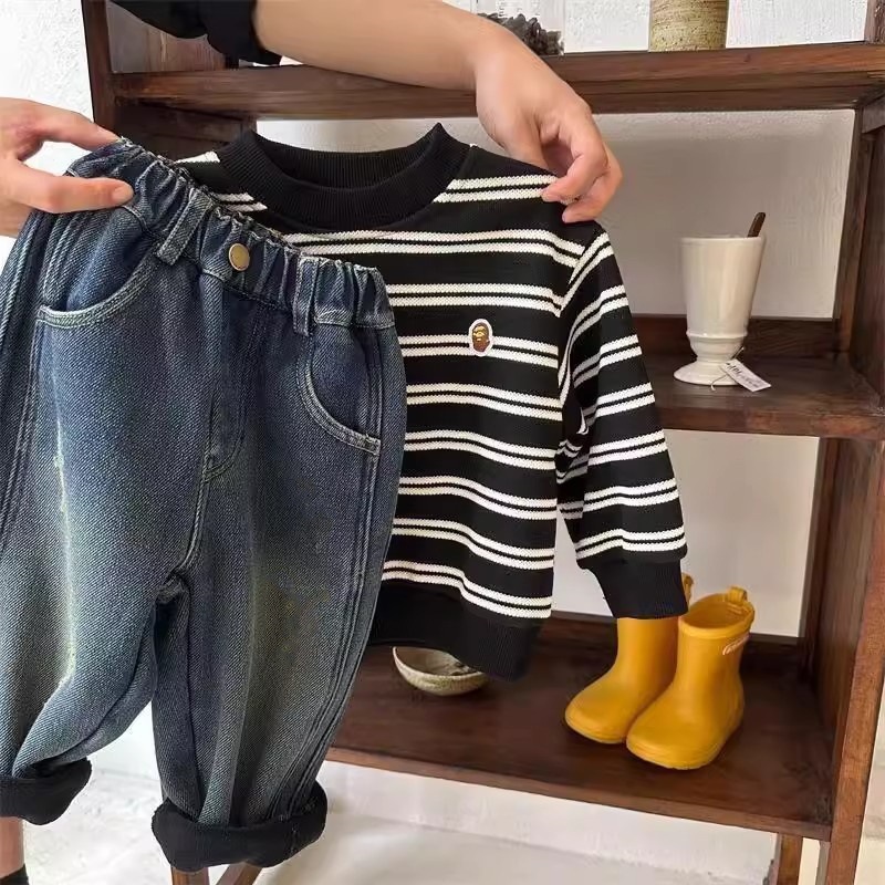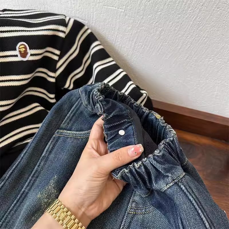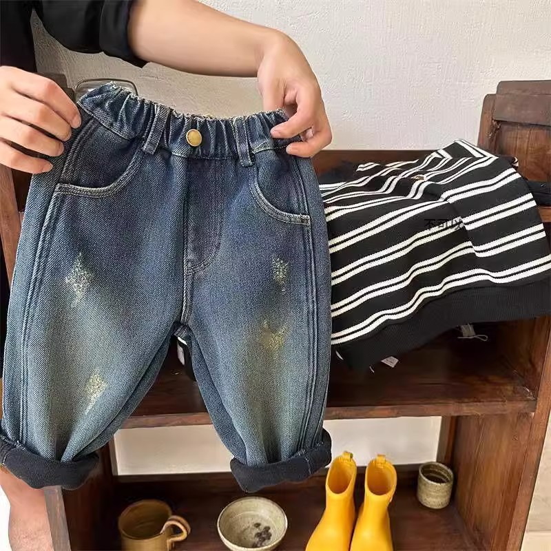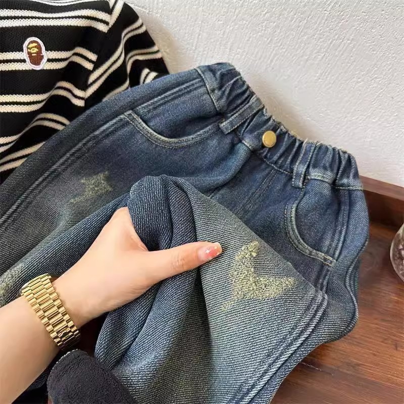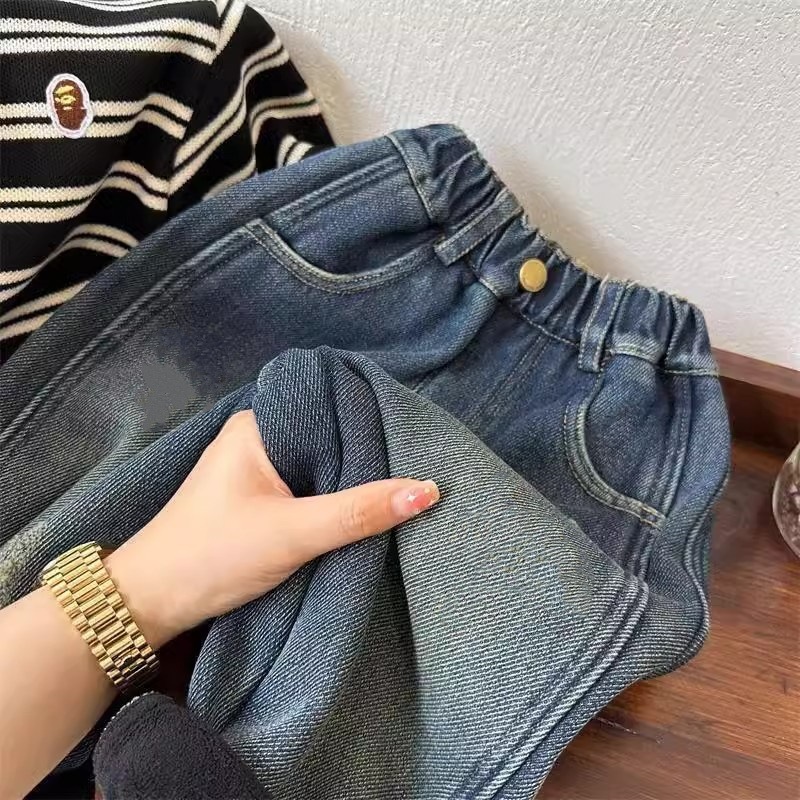 아동용 청바지 남아용 2024 겨울 바지 유아용 포켓 바지 여아용 플리스 안감 스포츠 스타일 플리스 안감 두꺼운 바지스토어 가기