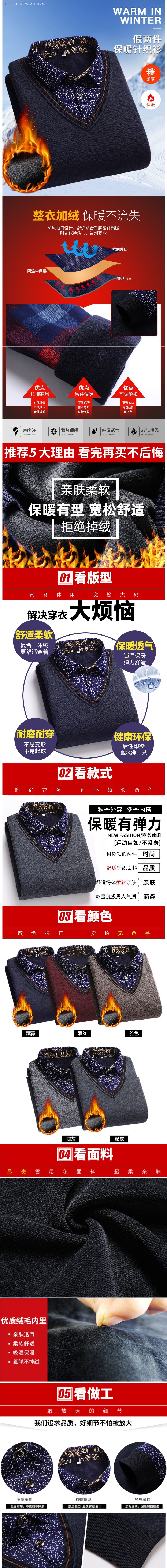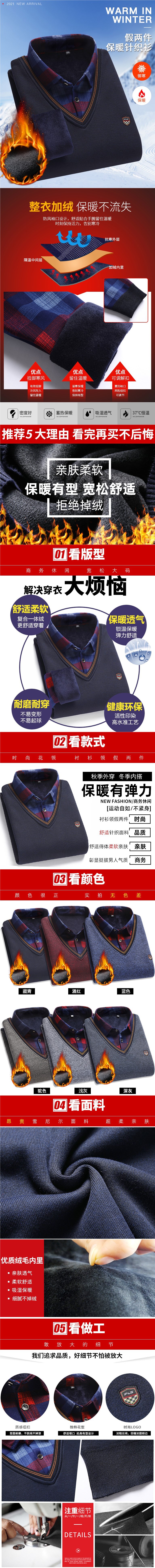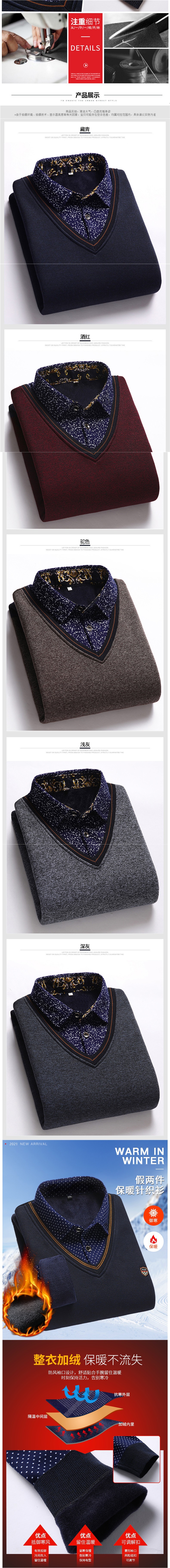 가을과 겨울 새로운 가짜 투피스 기모 두꺼운 스웨터 남성 중년 및 노인 스웨터 니트 베이스 셔츠 따뜻한 탑
