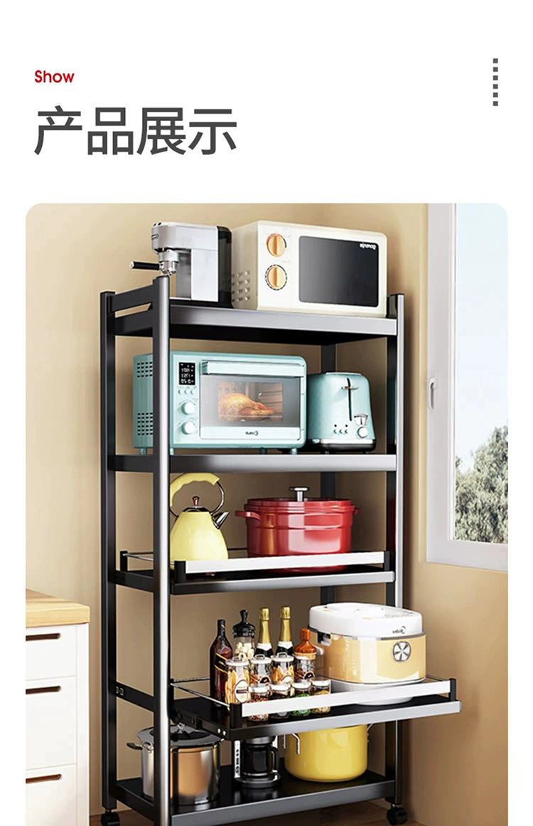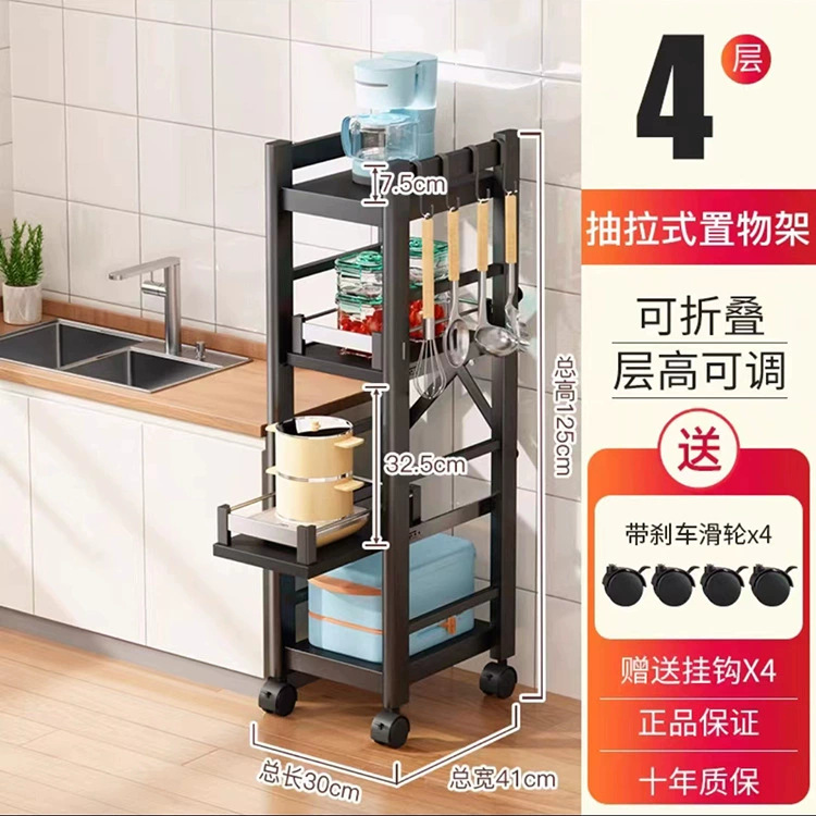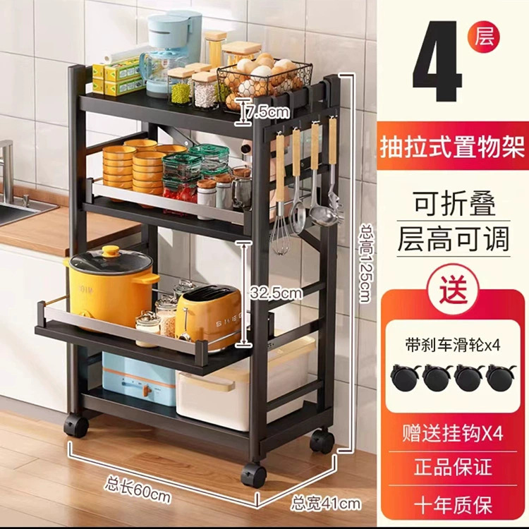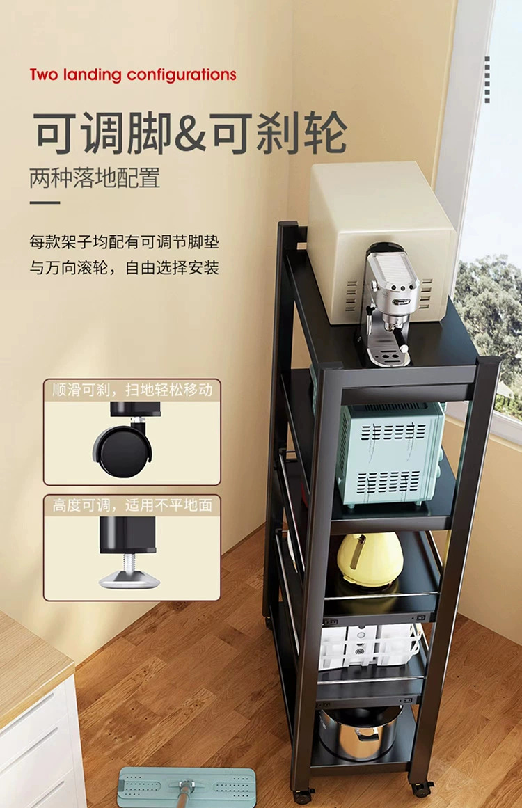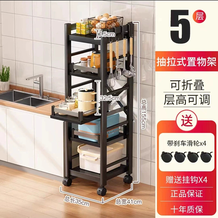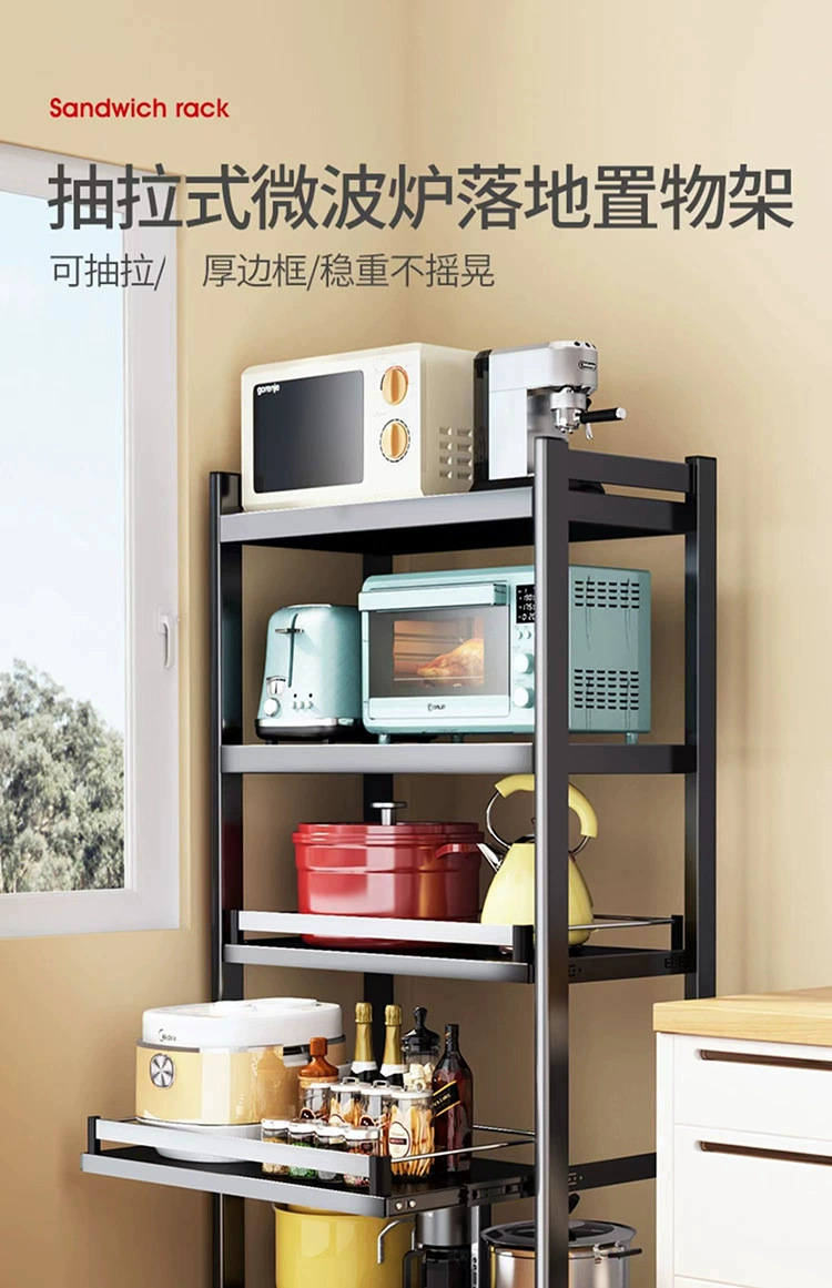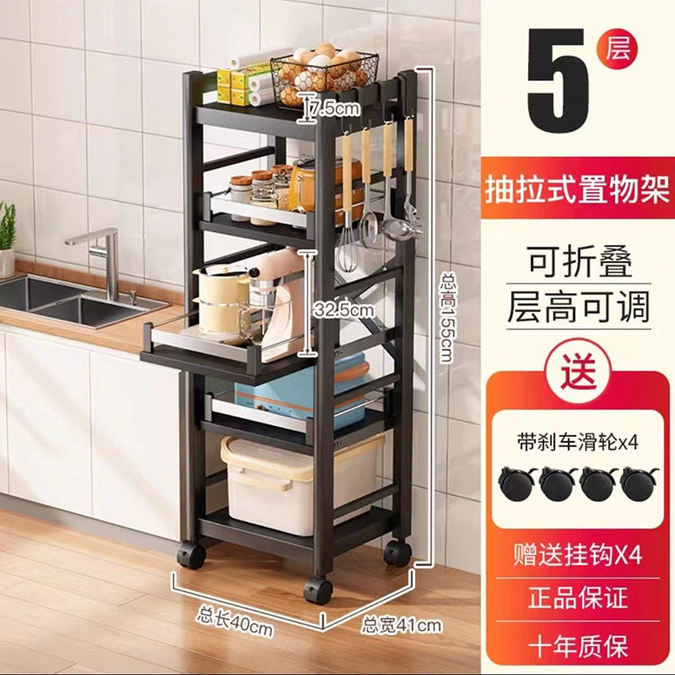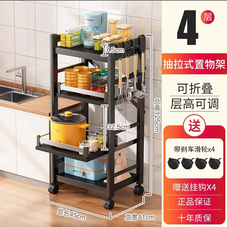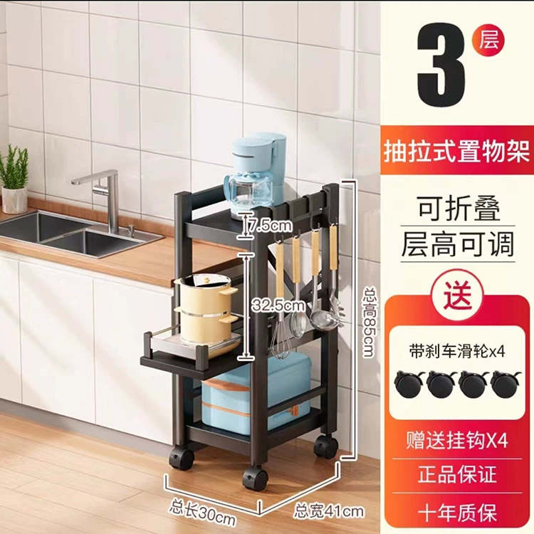 전자 레인지 스토리지 랙 가정용 바닥 스탠딩 풀 아웃 주방 갭 멀티 레이어 선반 냄비 어플라이언스 스토리지 캐비닛