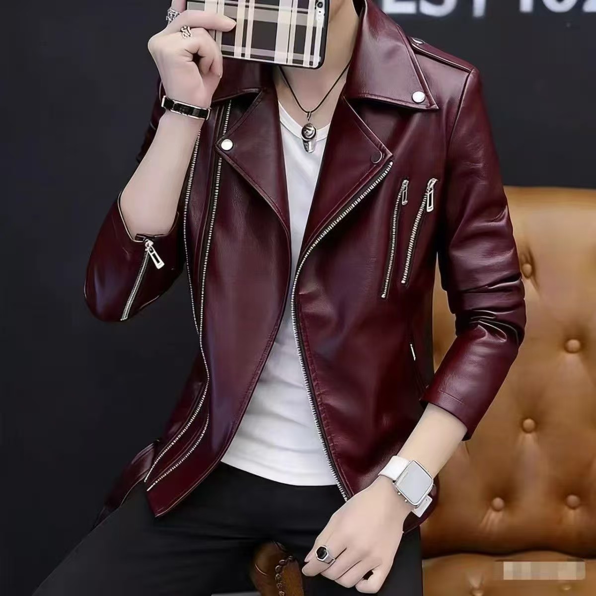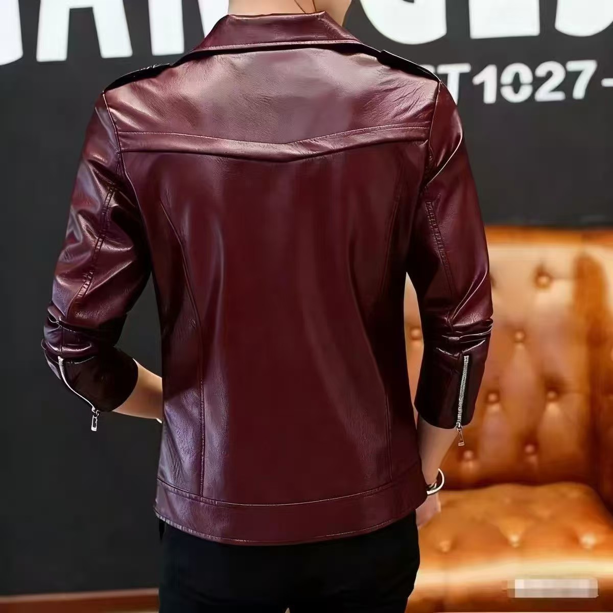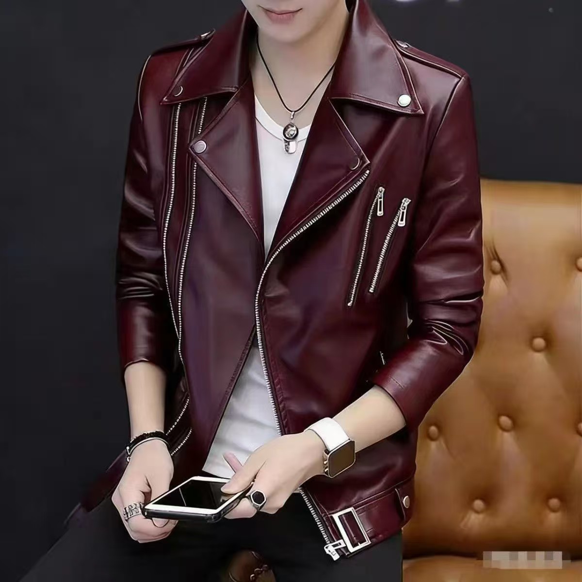 봄과 가을 빈티지 다크 브라운 가죽 자켓 남성 아메리칸 스타일 하이 스트리트 패션 하이 엔드 루즈 옷깃 핸섬 오토바이 자켓
