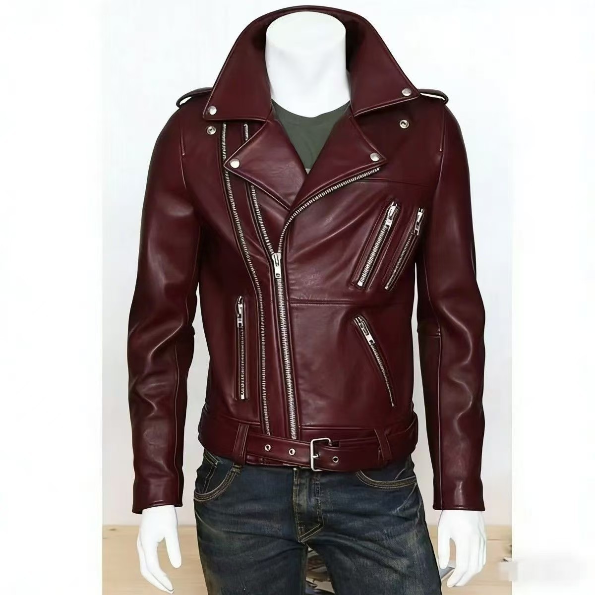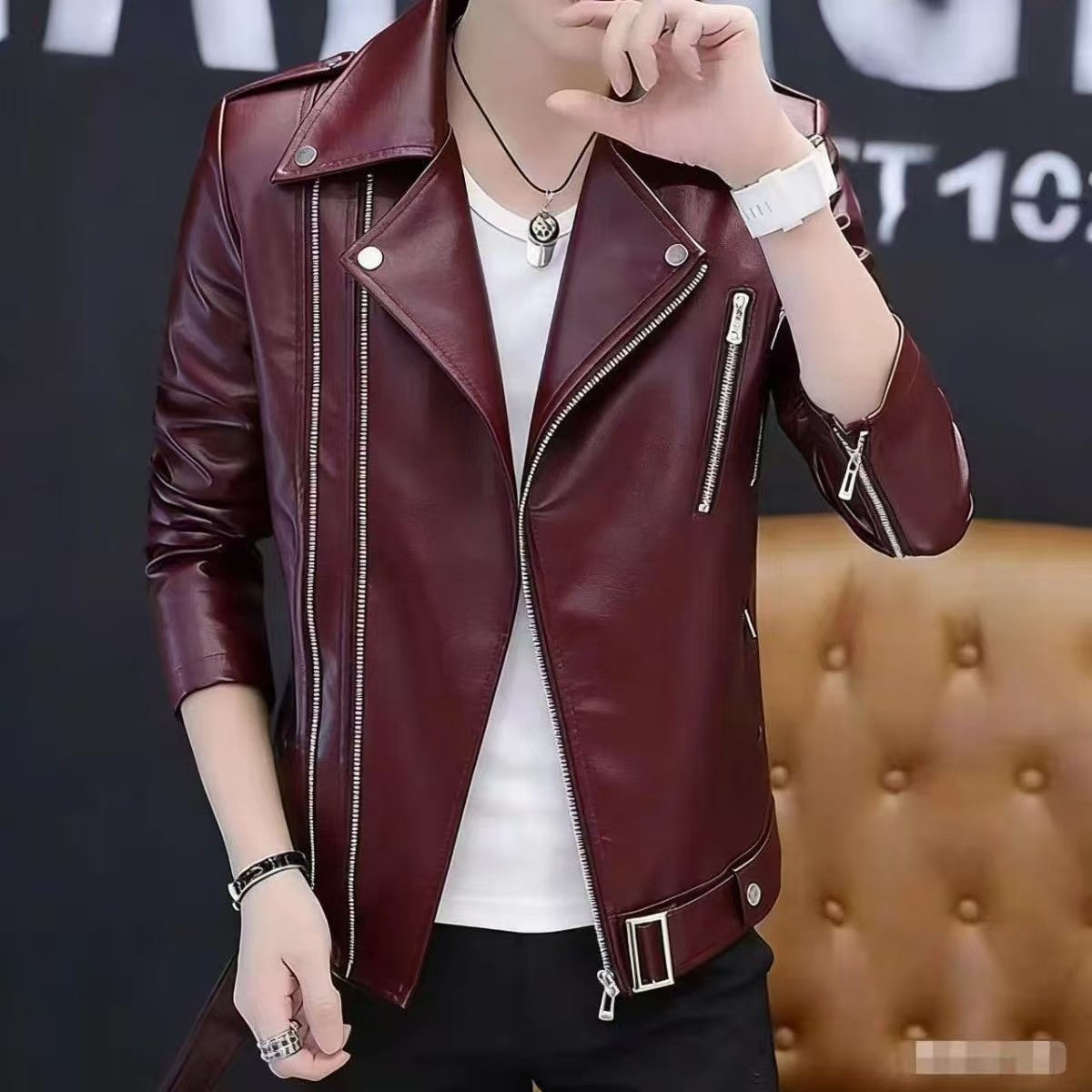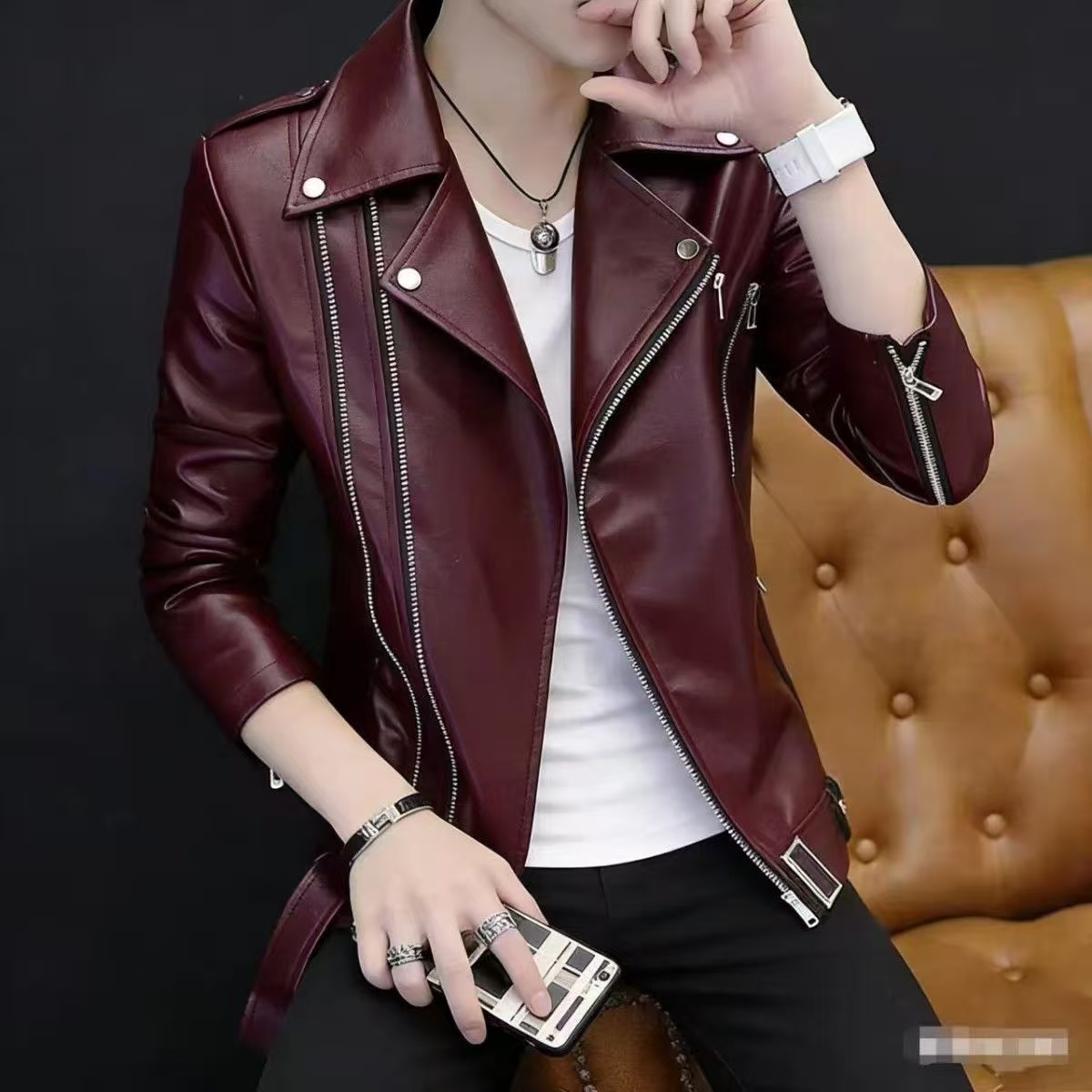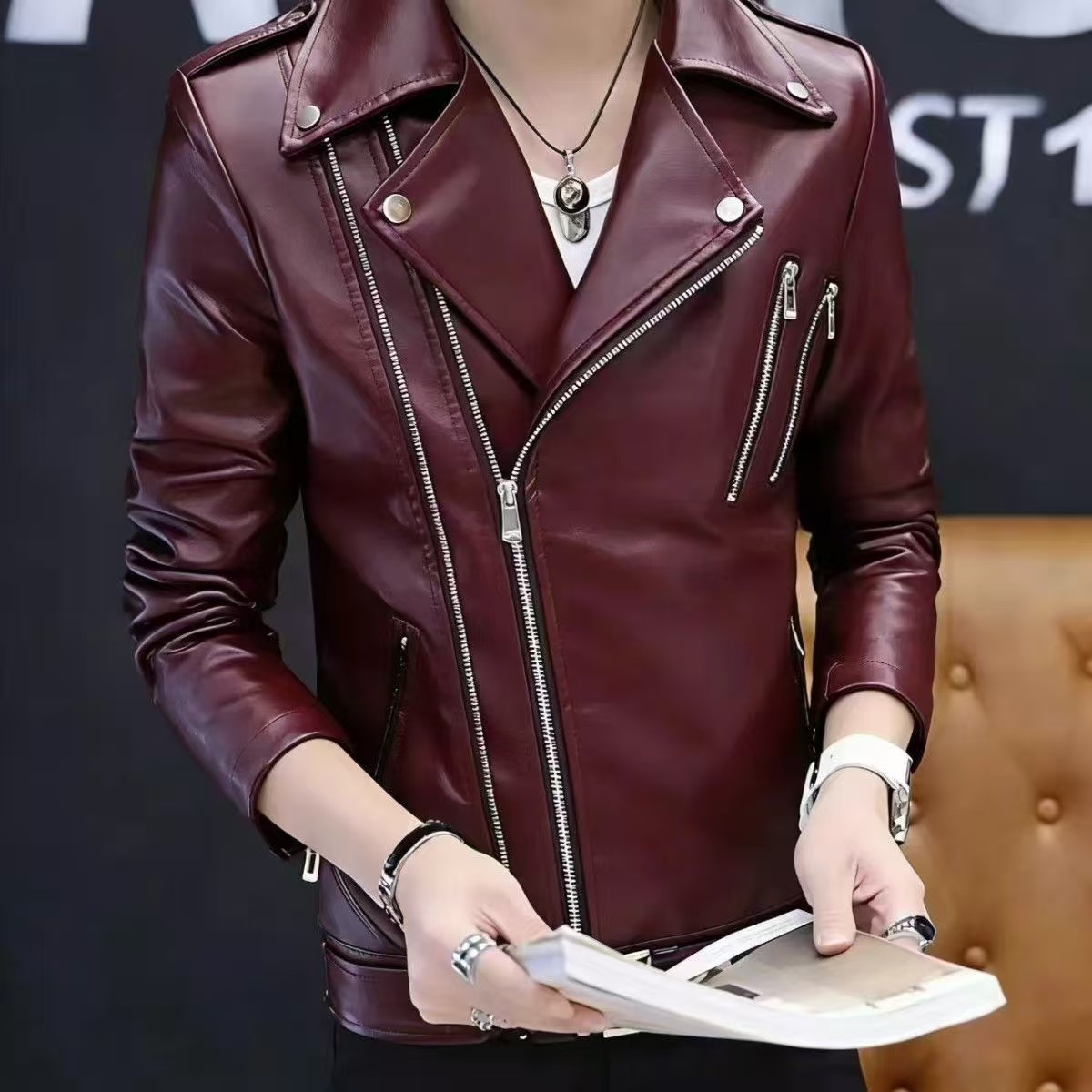 봄과 가을 빈티지 다크 브라운 가죽 자켓 남성 아메리칸 스타일 하이 스트리트 패션 하이 엔드 루즈 옷깃 핸섬 오토바이 자켓