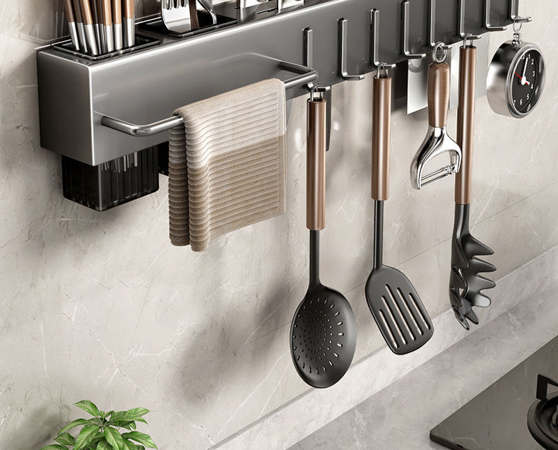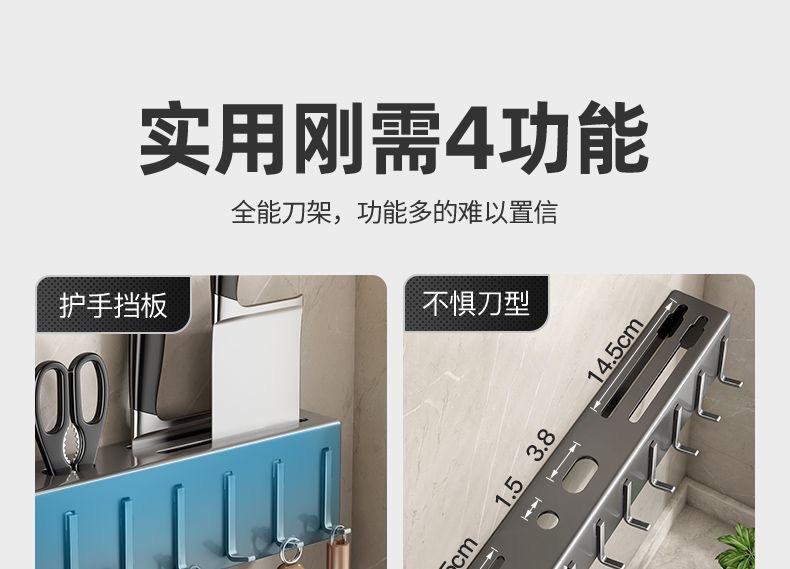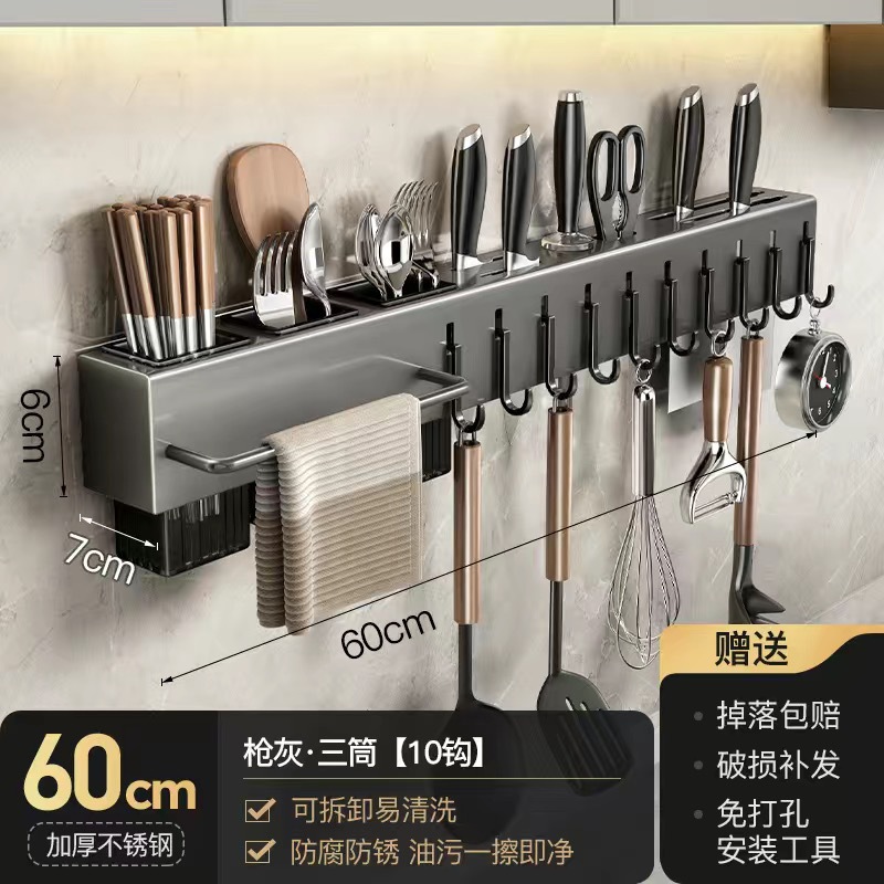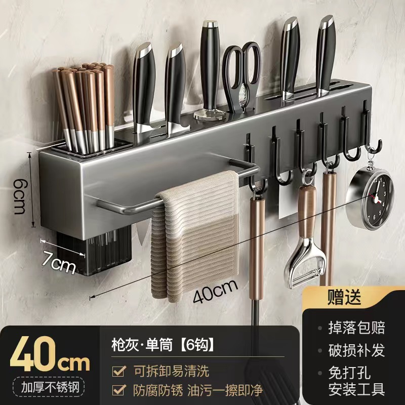 두꺼운 주방 나이프 홀더 펀치 프리 스토리지 랙 주방 다기능 벽걸이 형 젓가락 홀더 야채 나이프 통합 보관스토어 가기