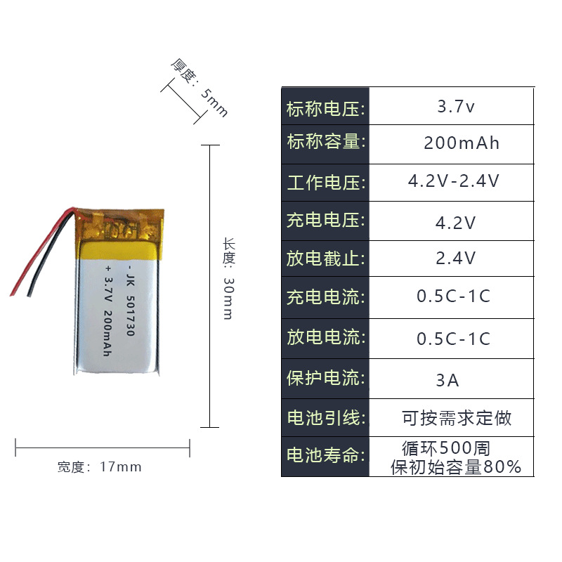 501 730 200 mAh3.7 폴리머 리튬 공장 직접 배터리 장난감 라디오 뷰티 기기 전기 기기