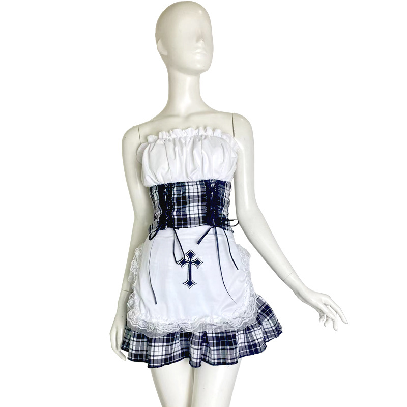 COS 2 차원 메이드 귀여운 메이드 원피스 JK 새로운 로리타 세트 Y2K 섹시한 메이드 스타일 3 피스 세트