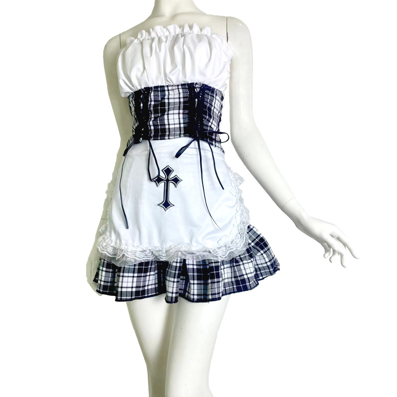 COS 2 차원 메이드 귀여운 메이드 원피스 JK 새로운 로리타 세트 Y2K 섹시한 메이드 스타일 3 피스 세트스토어 가기