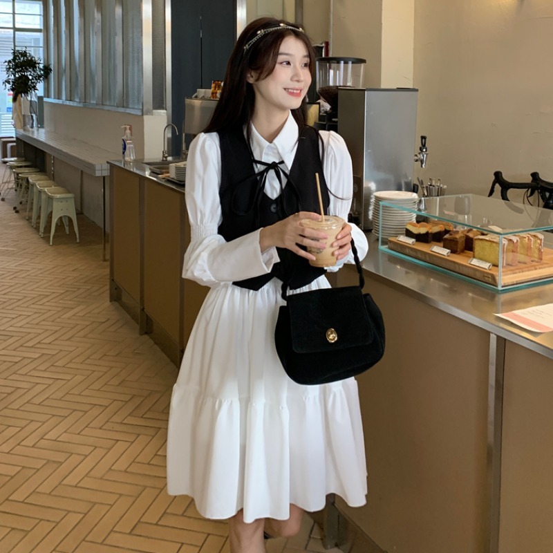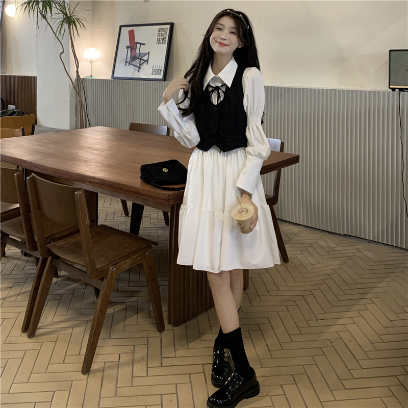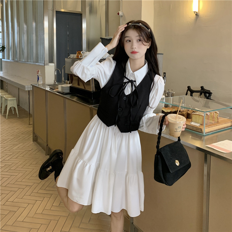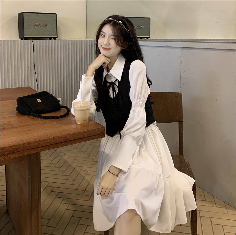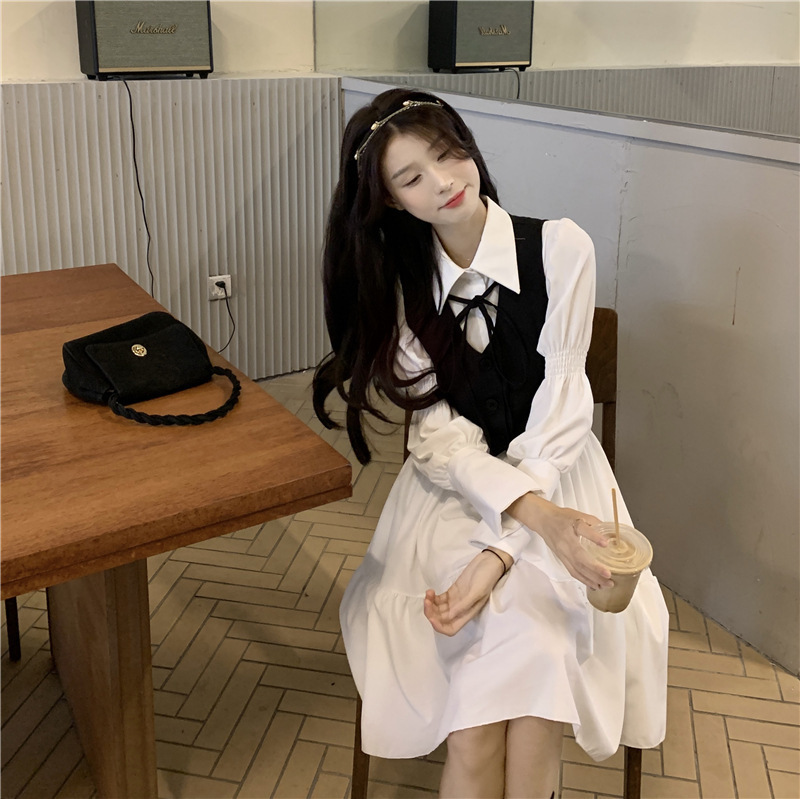 아카데미 스타일 원피스 여성 봄 2024 새로운 허리 슬리밍 기질 프랑스 디자인 틈새 스커트스토어 가기