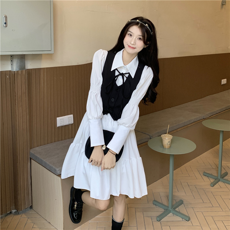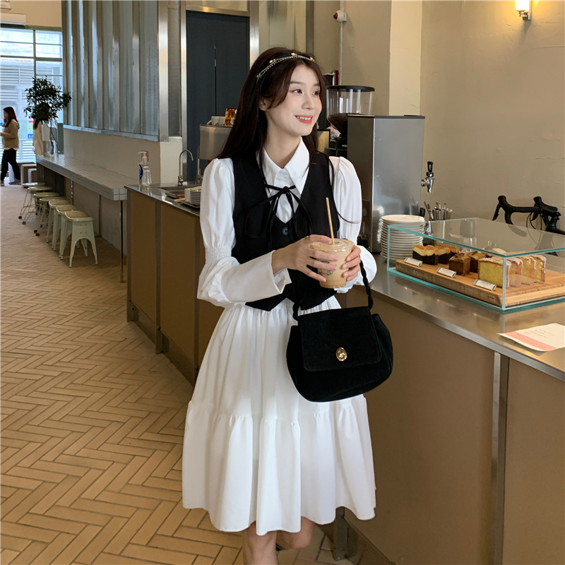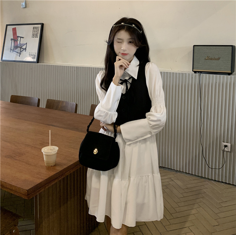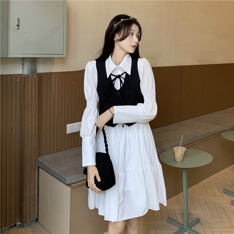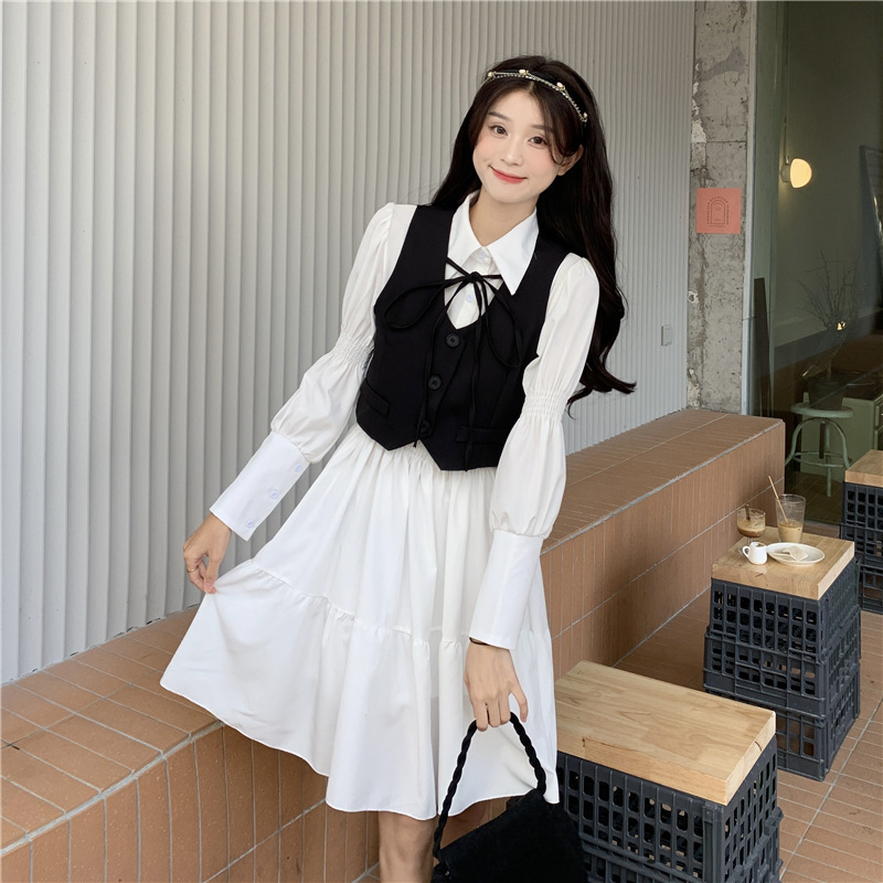 아카데미 스타일 원피스 여성 봄 2024 새로운 허리 슬리밍 기질 프랑스 디자인 틈새 스커트스토어 가기