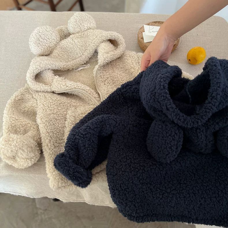 소년 소녀 겨울 코트 아기의 서양식 어린이 맞춤형 트렌디 브랜드 한국 스타일 만화 귀 후드 두꺼운 모직 스웨터스토어 가기