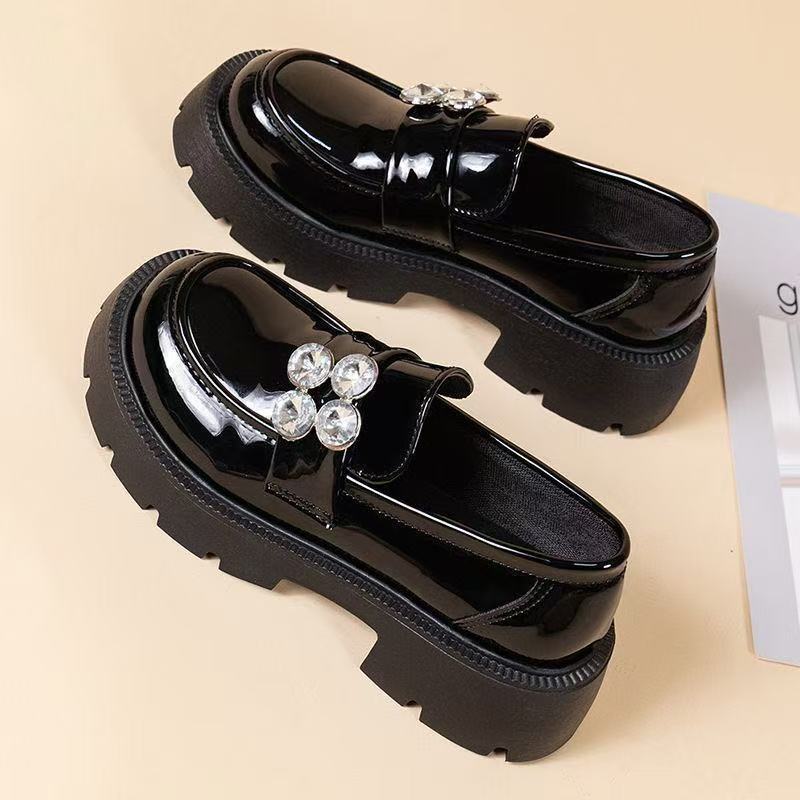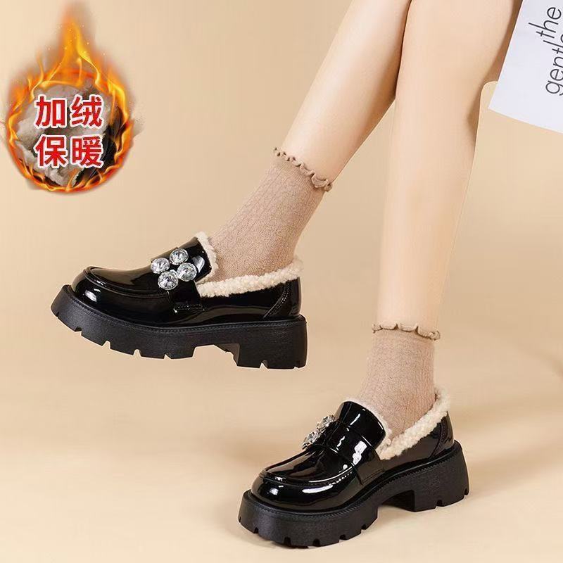 두꺼운 밑창 강화 기모 로퍼 패션 다재다능한 얕은 작은 가죽 신발 2024 가을과 겨울의 새로운 슬립 온 로퍼스토어 가기