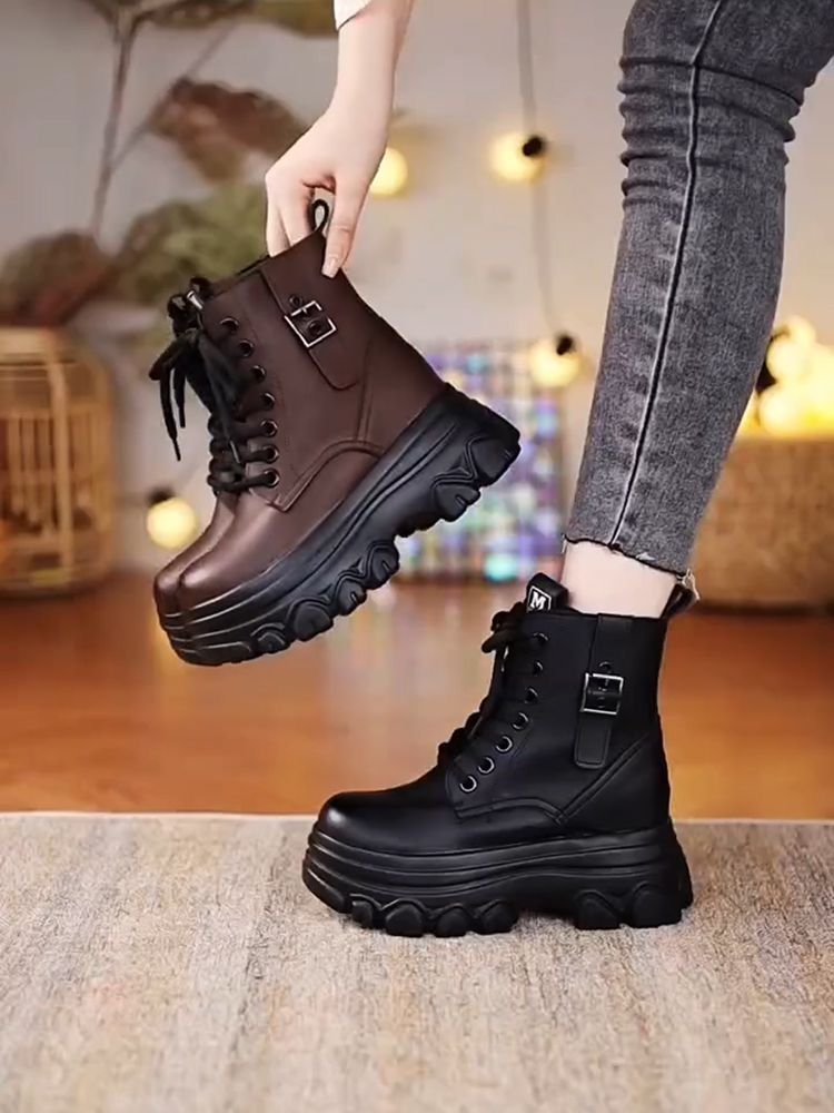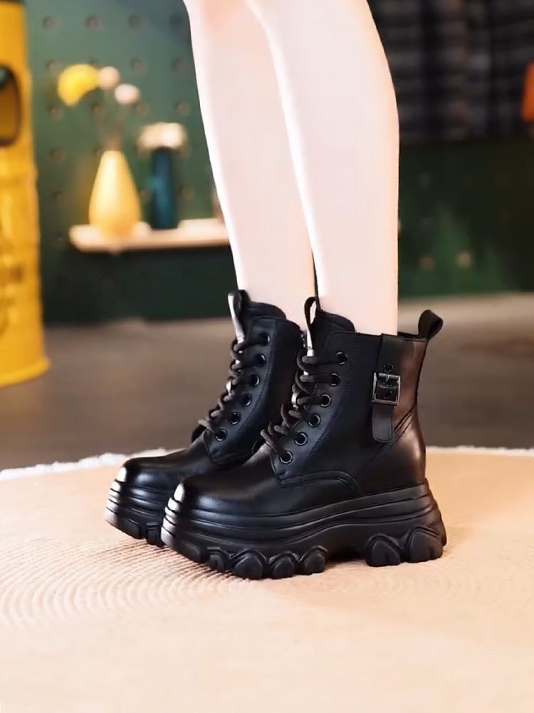 폭발] 슈퍼 두꺼운 밑창 하이탑 코튼 신발 맞춤형 트렌드 오토바이 부츠 소프트 가죽 편안한 마틴 부츠 가을과 겨울 기모 가죽 부츠스토어 가기