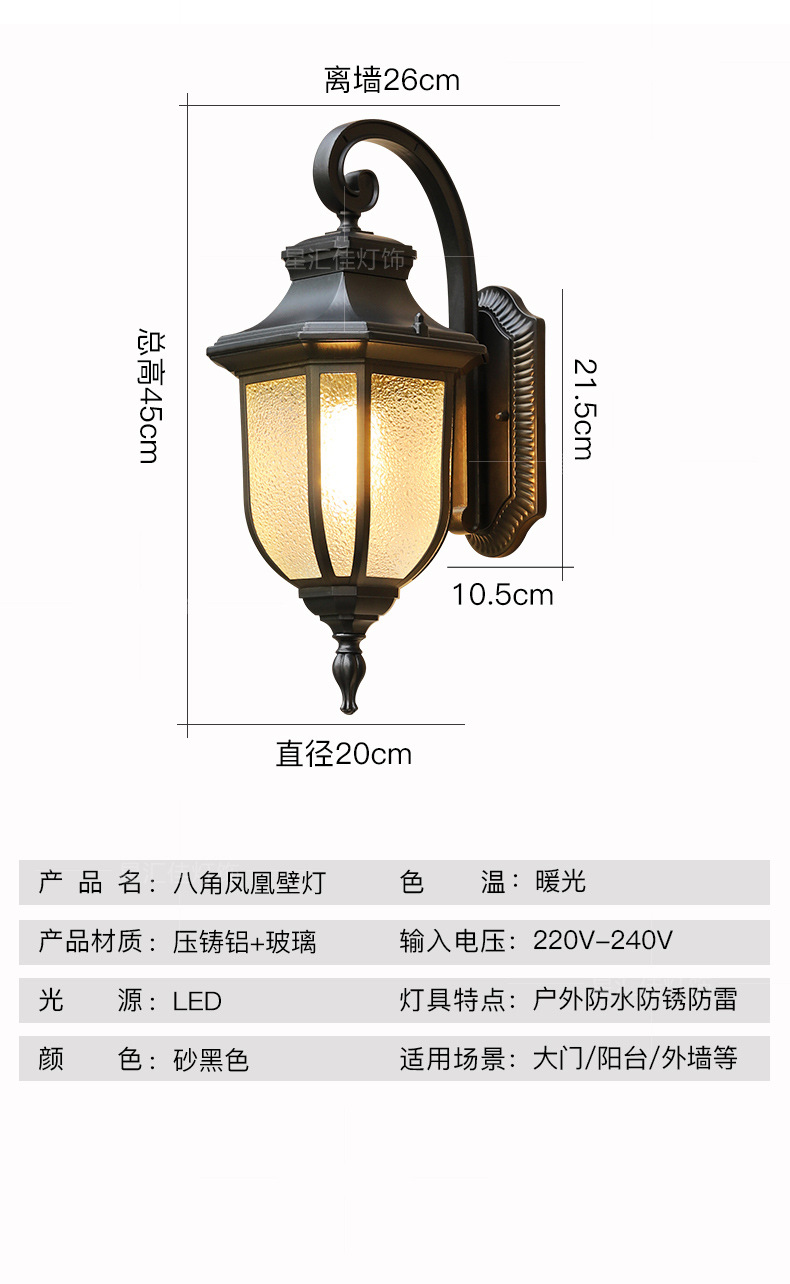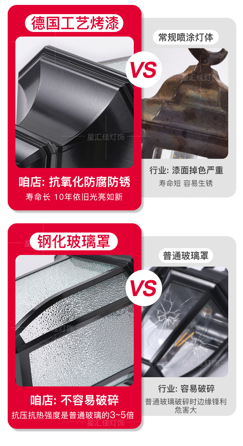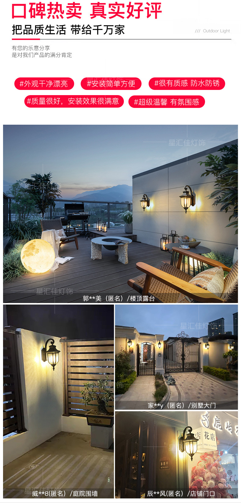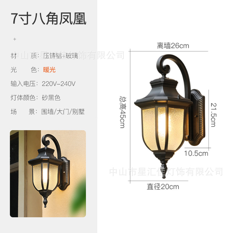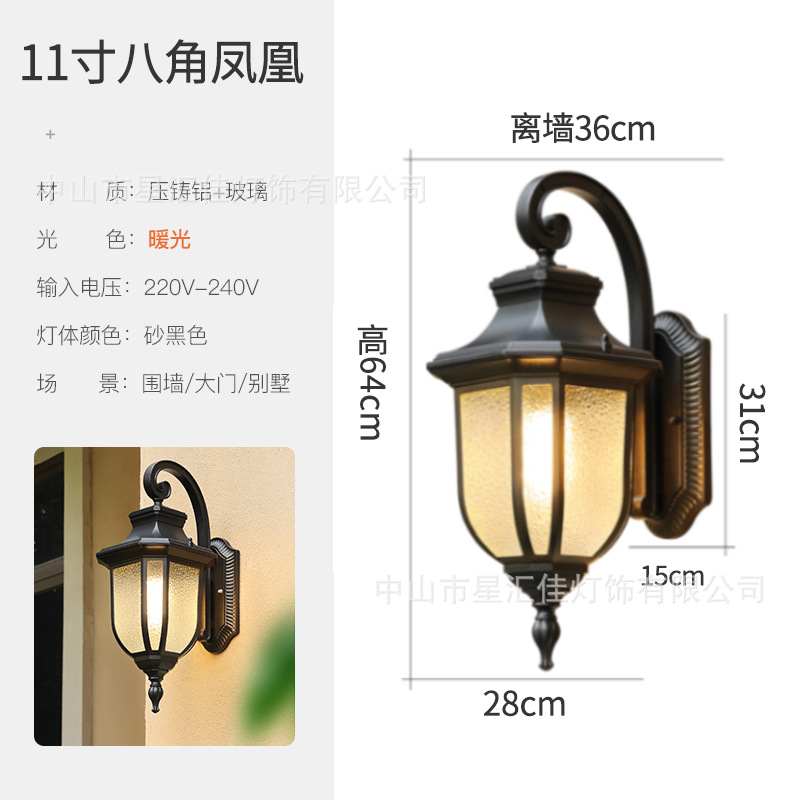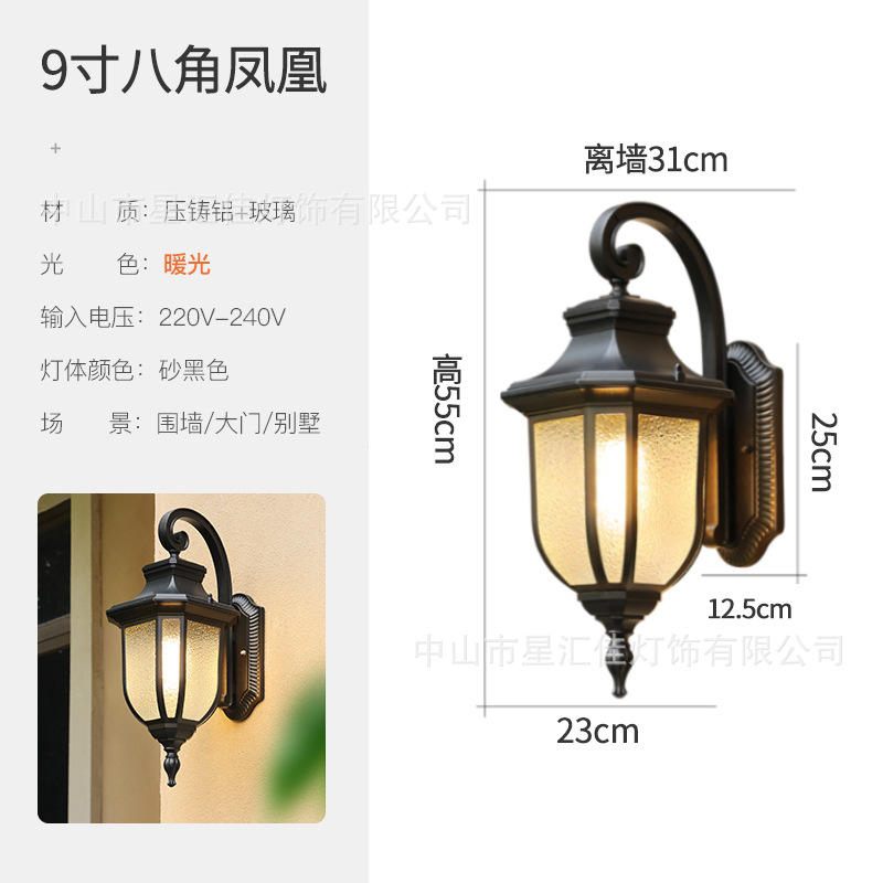 빌라 벽 램프 야외 방수 게이트 벽 기둥 야외 안뜰 유럽 스타일 복고풍 발코니 외부 벽 정원 램프
