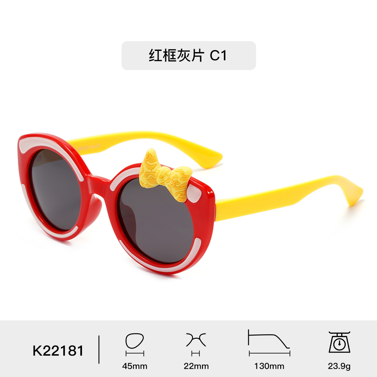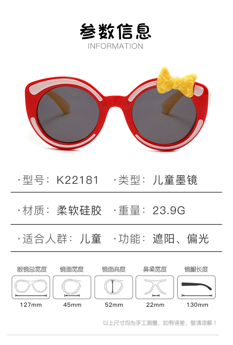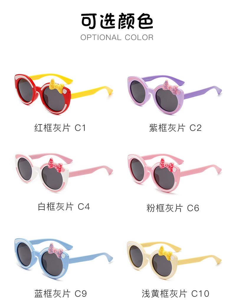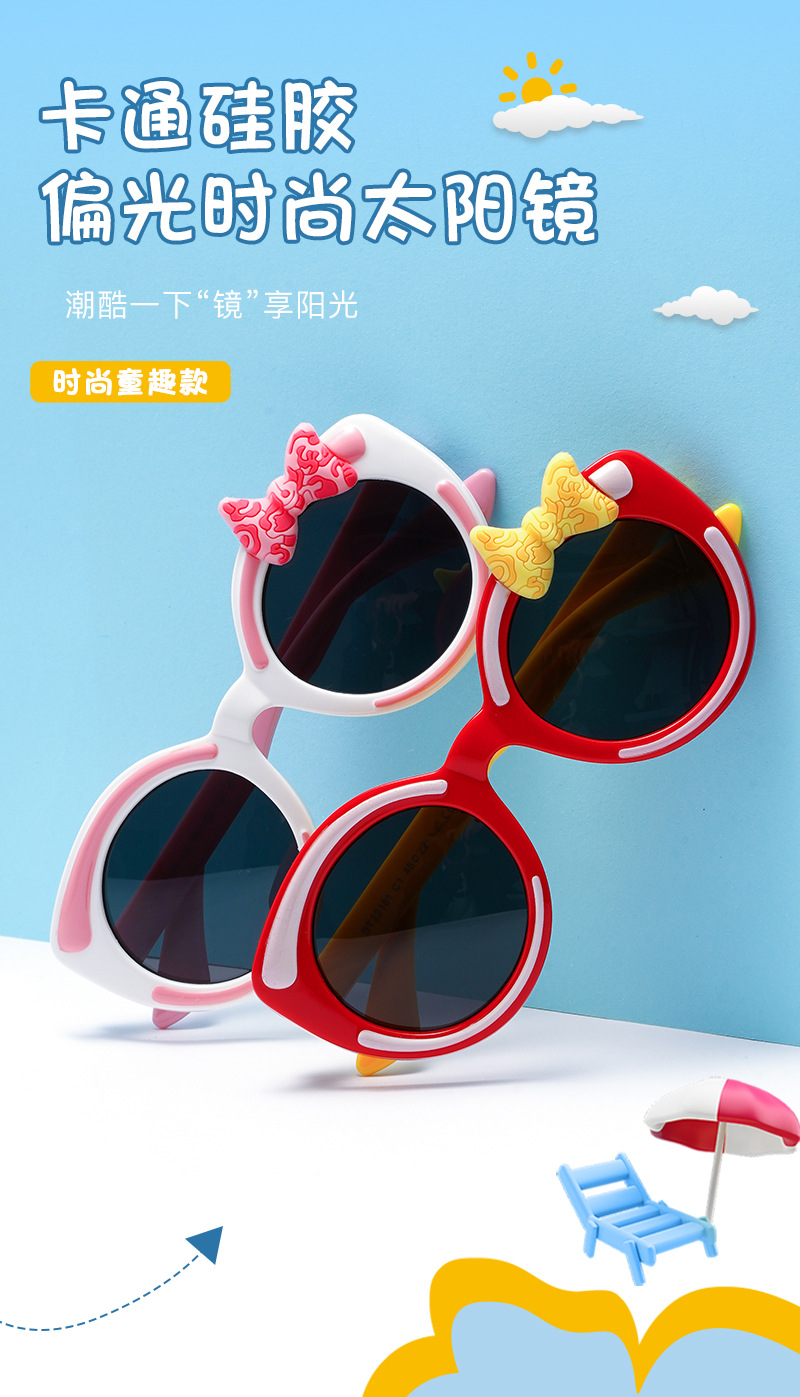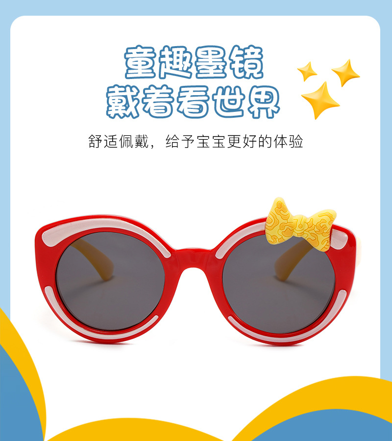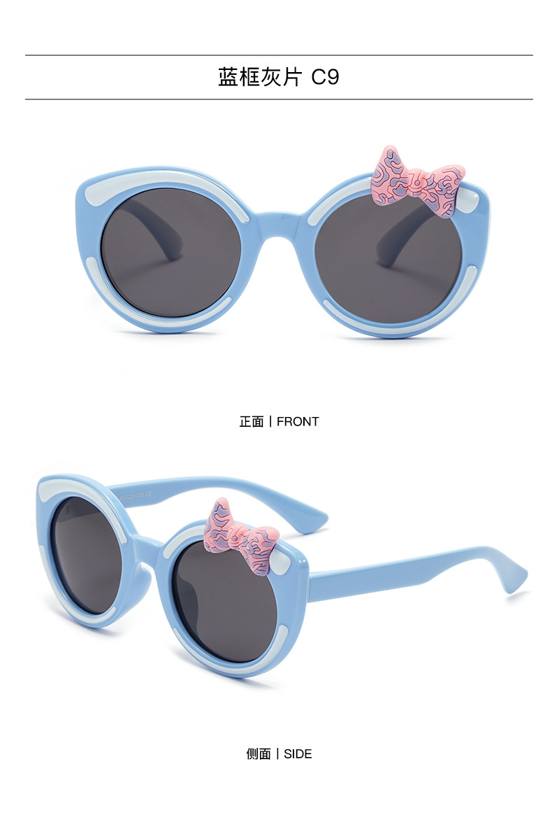 엄선된 새로운 어린이 만화 실리콘 선글라스, 패셔너블하고 트렌디한 선글라스, 고급 여성용 단면 리본 장식