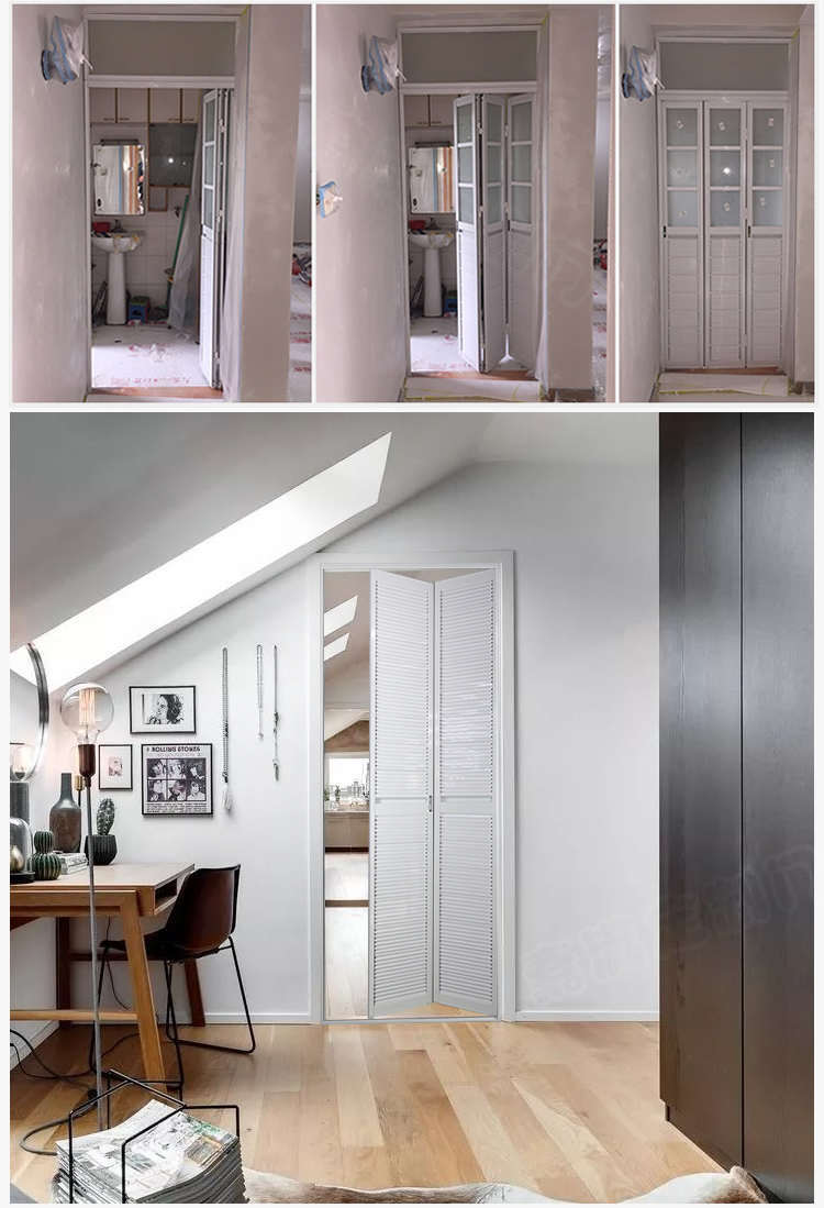 허니컴 주방 접이식 문 슬라이딩 보이지 않는 간단한 천공되지 않은 침실 음영 화장실 욕실 방수 도어 커튼스토어 가기