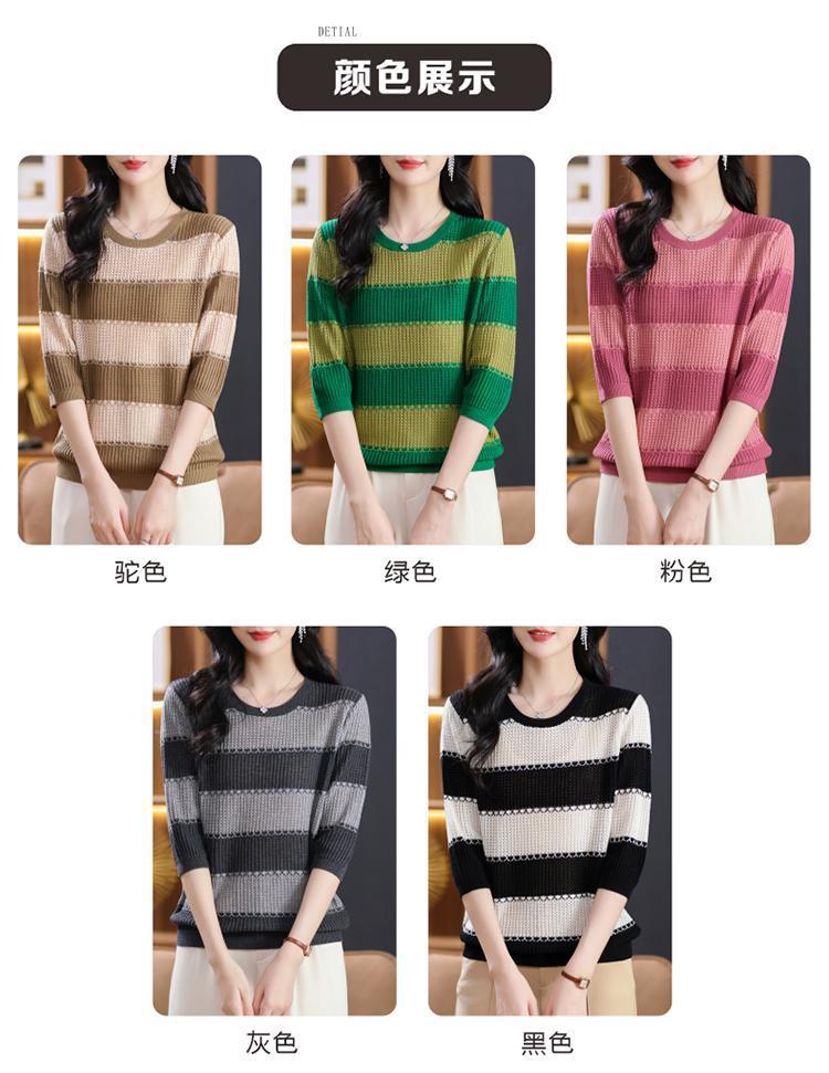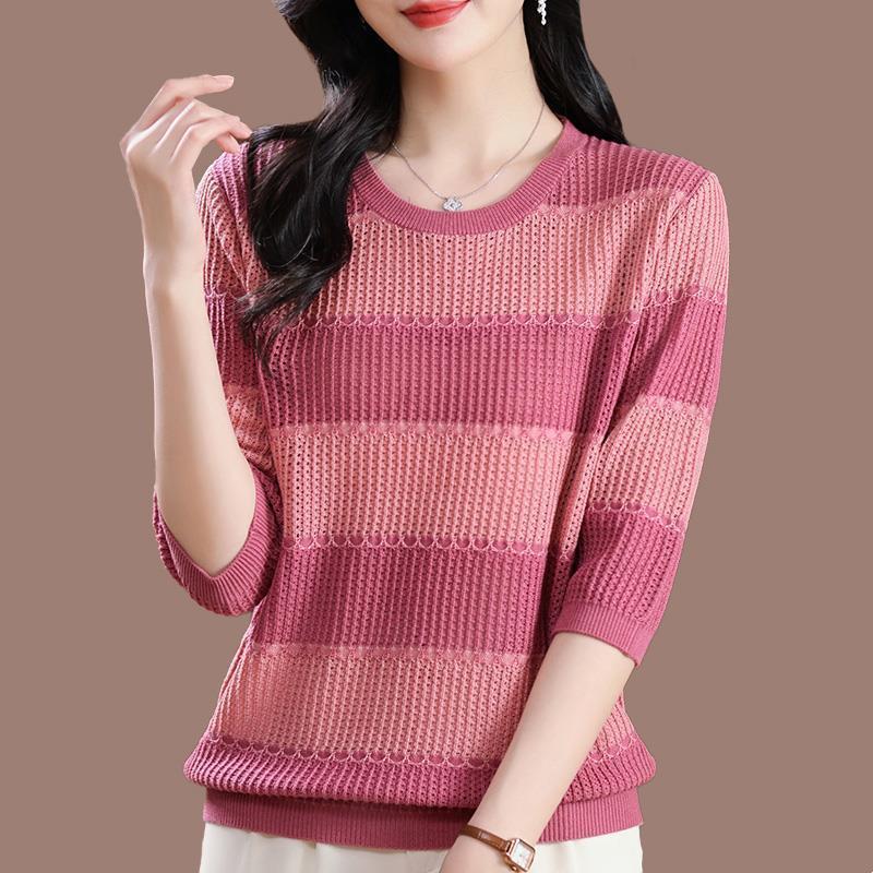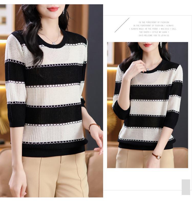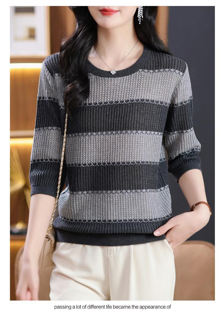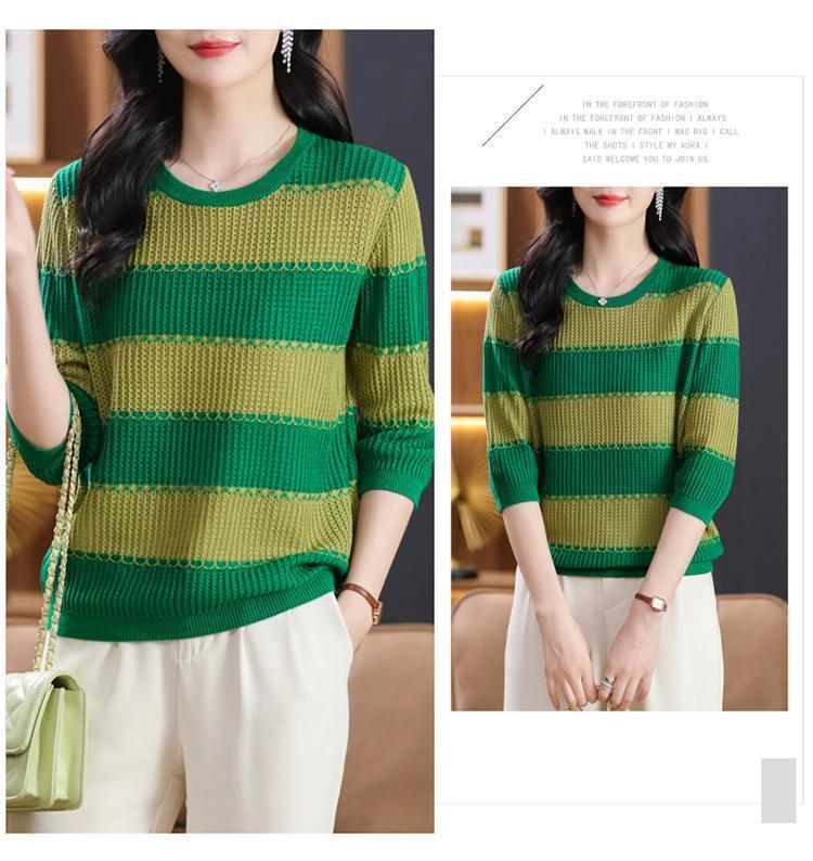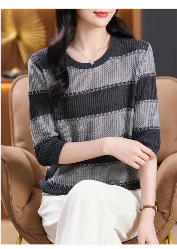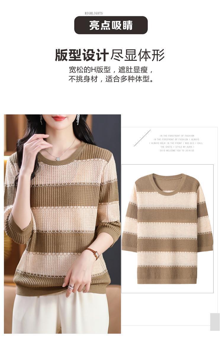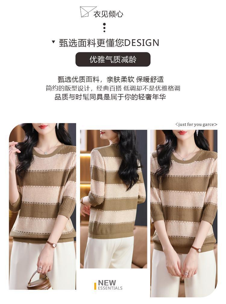 2024 새로운 미드 슬리브 티셔츠 여성용 세븐 슬리브 탑 어머니의 봄 원피스 스트라이프 웨스턴 스타일 니트 히트스토어 가기