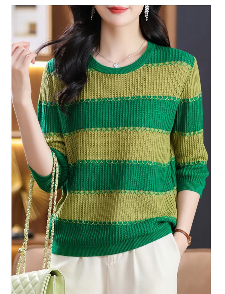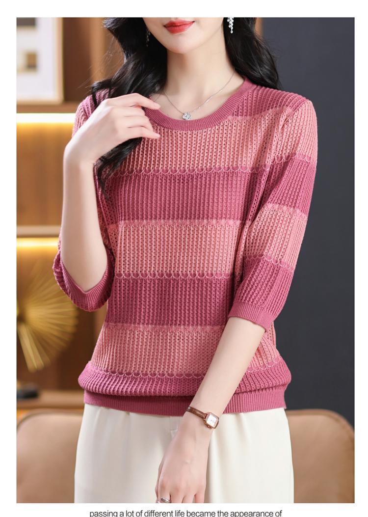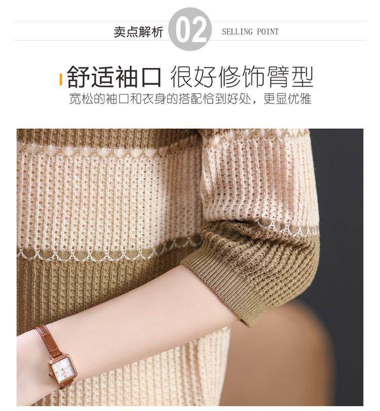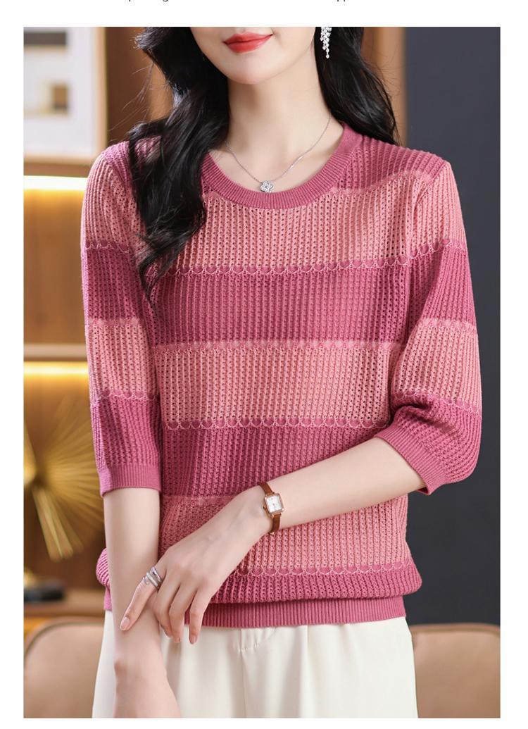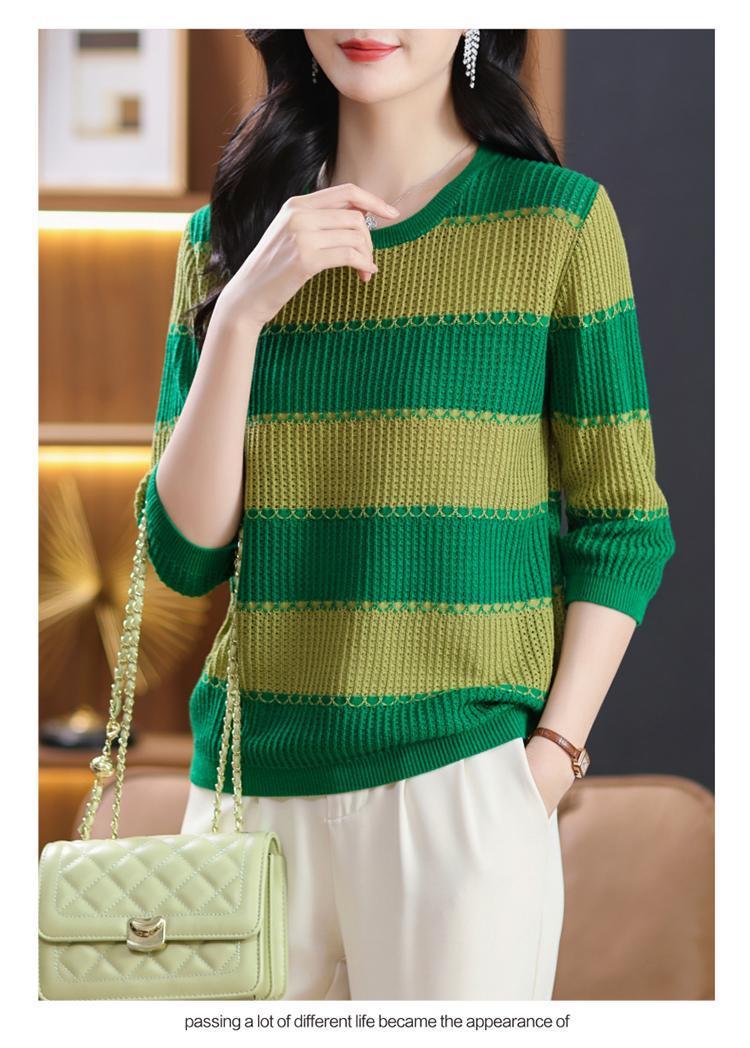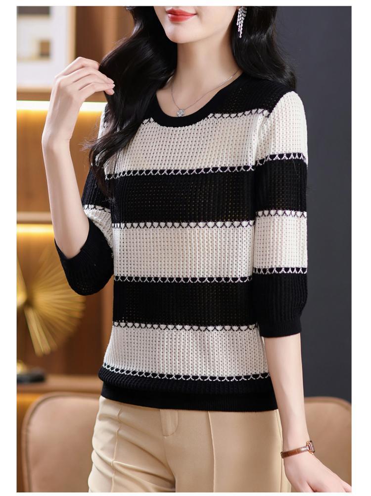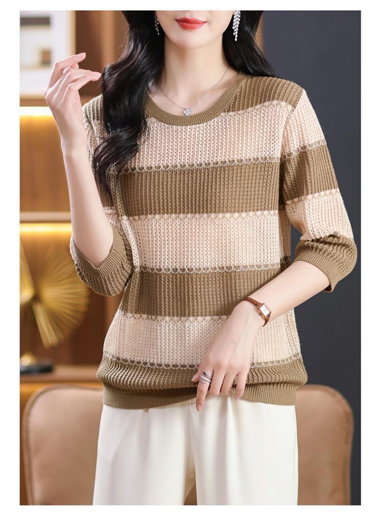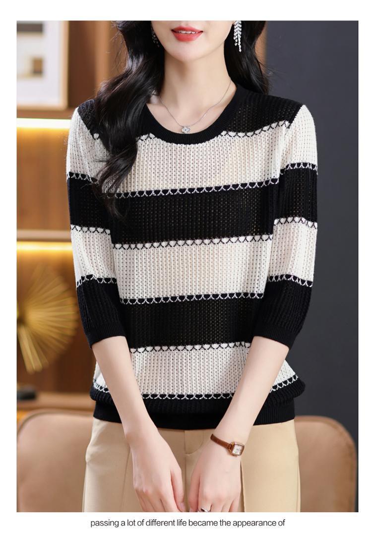 2024 새로운 미드 슬리브 티셔츠 여성용 세븐 슬리브 탑 어머니의 봄 원피스 스트라이프 웨스턴 스타일 니트 히트스토어 가기