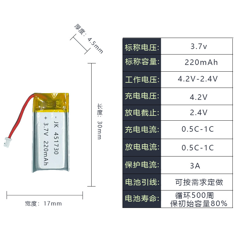 451730 폴리머 리튬 배터리 220mAh 블루투스 헤드셋 LED 보청기 야간 조명 리튬 배터리 3.7V스토어 가기