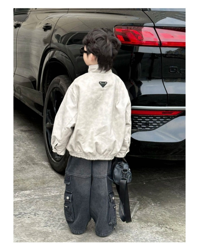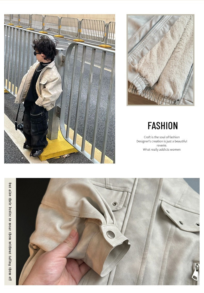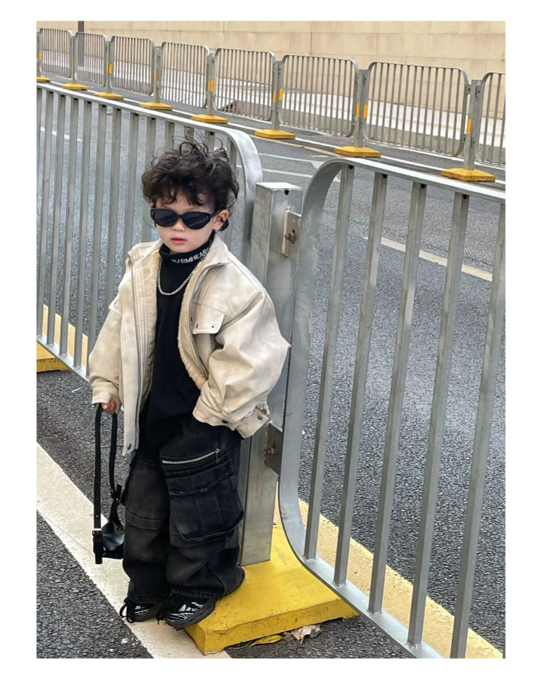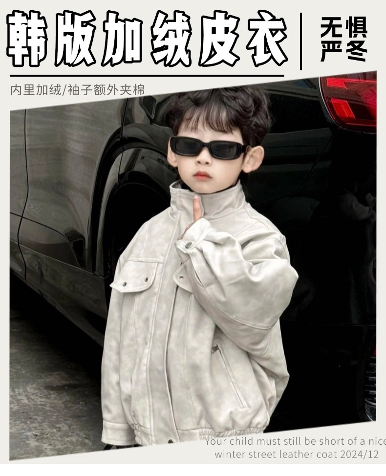남아용 한국 스타일 멋진 가죽 재킷 2025 겨울 신상 아동용 지퍼 상의 플리스 안감 따뜻한 유아용 재킷스토어 가기