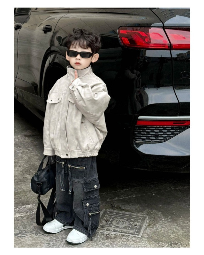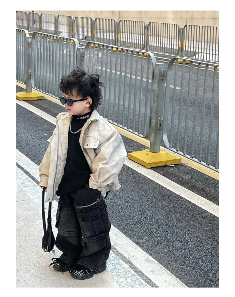 남아용 한국 스타일 멋진 가죽 재킷 2025 겨울 신상 아동용 지퍼 상의 플리스 안감 따뜻한 유아용 재킷