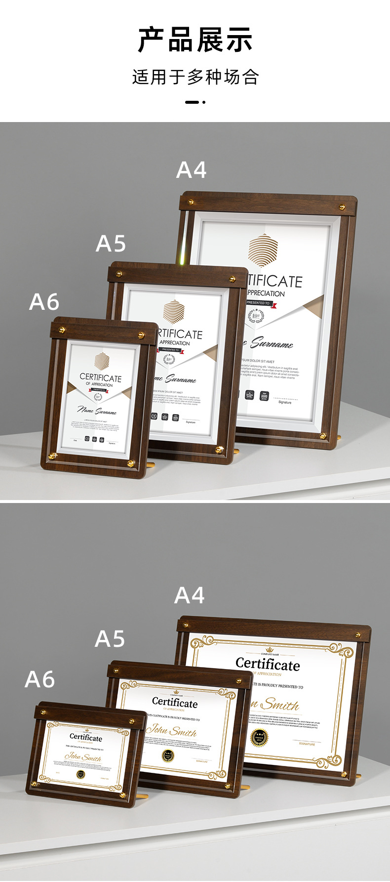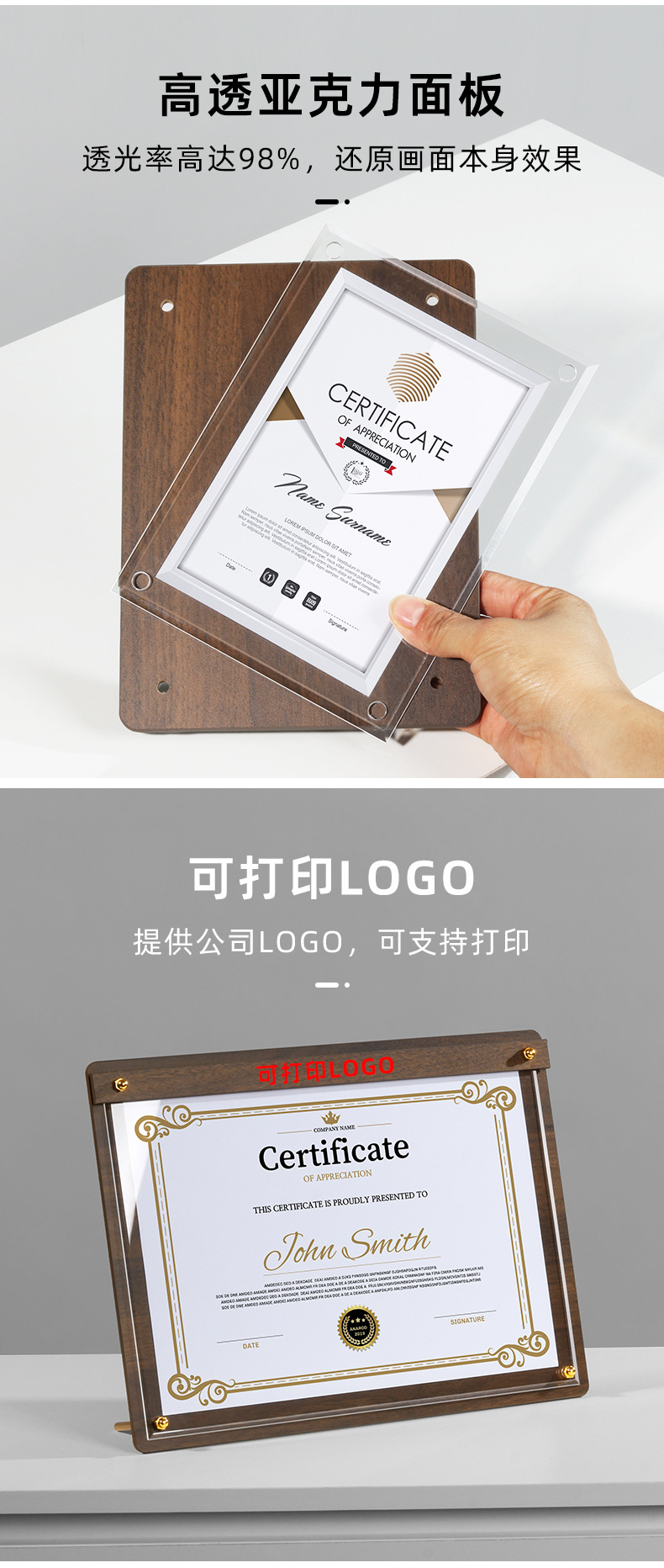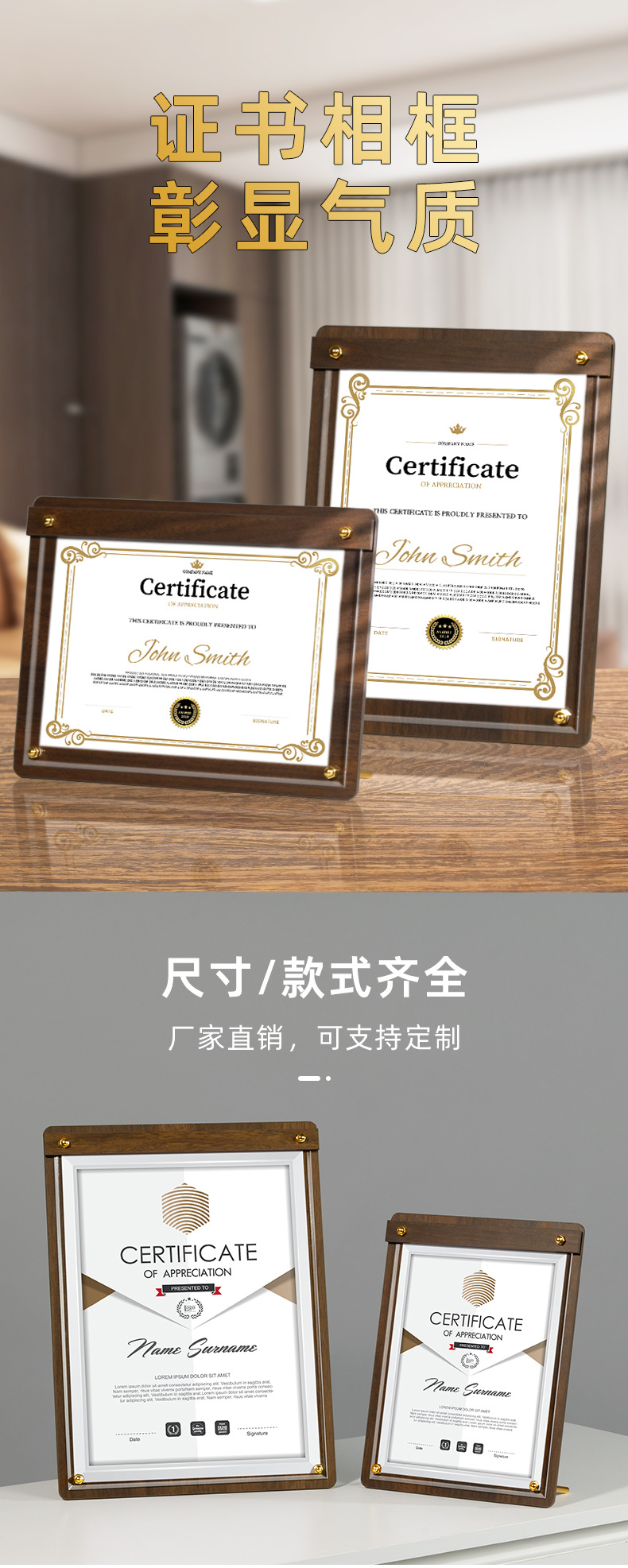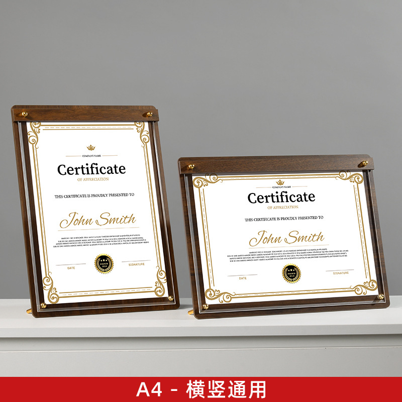 A4 아크릴 라이센스 장착 디스플레이 프레임 특허 인증서 프레임 견고한 목재 라이센스 승인 편지 명예 인증서 사진 프레임