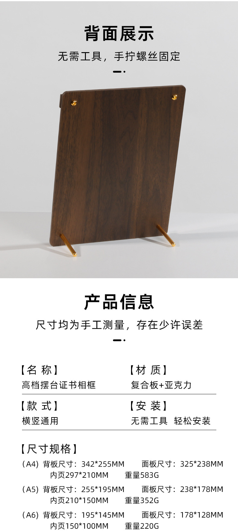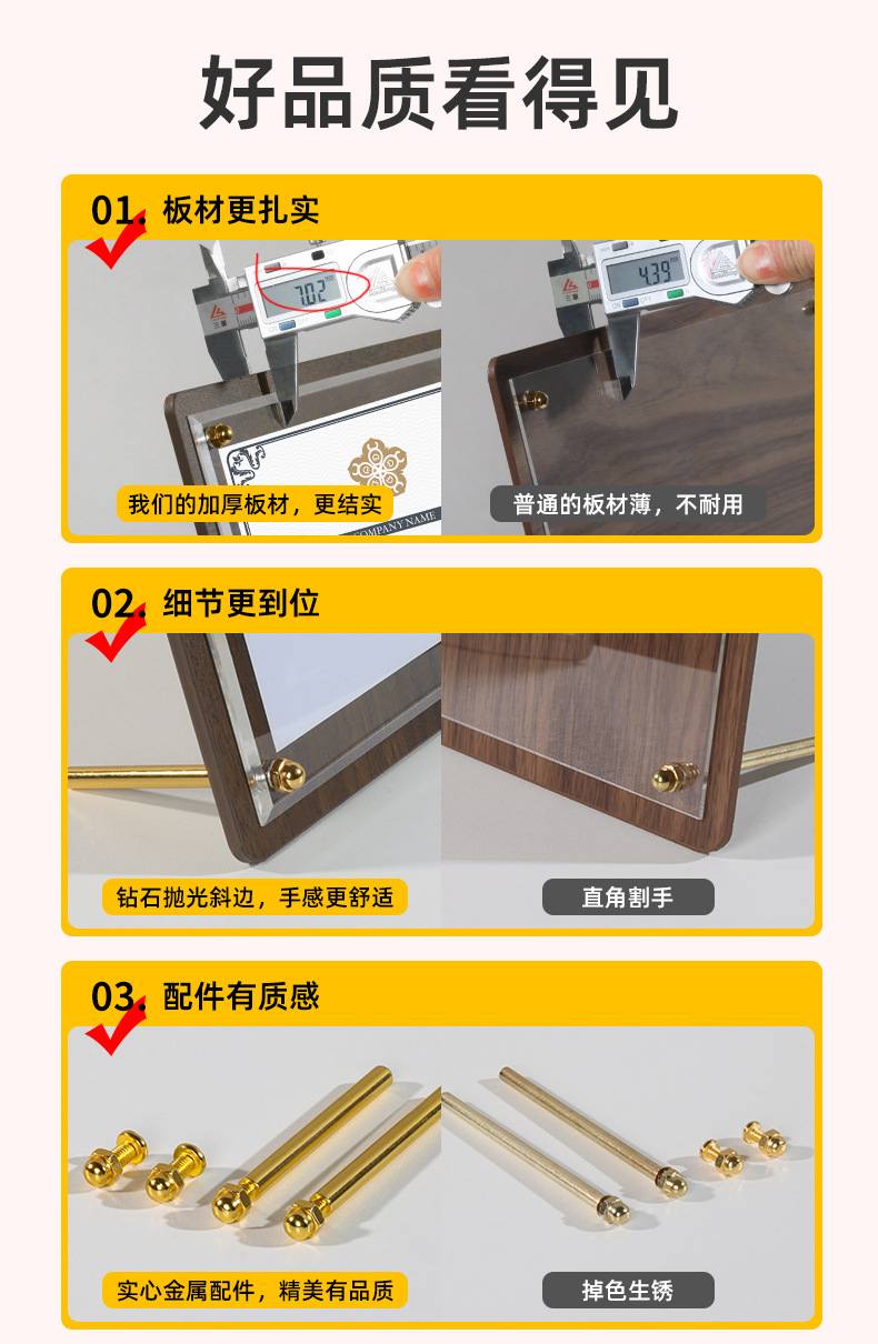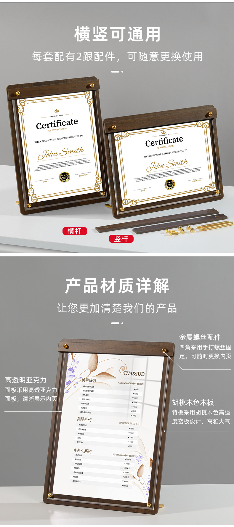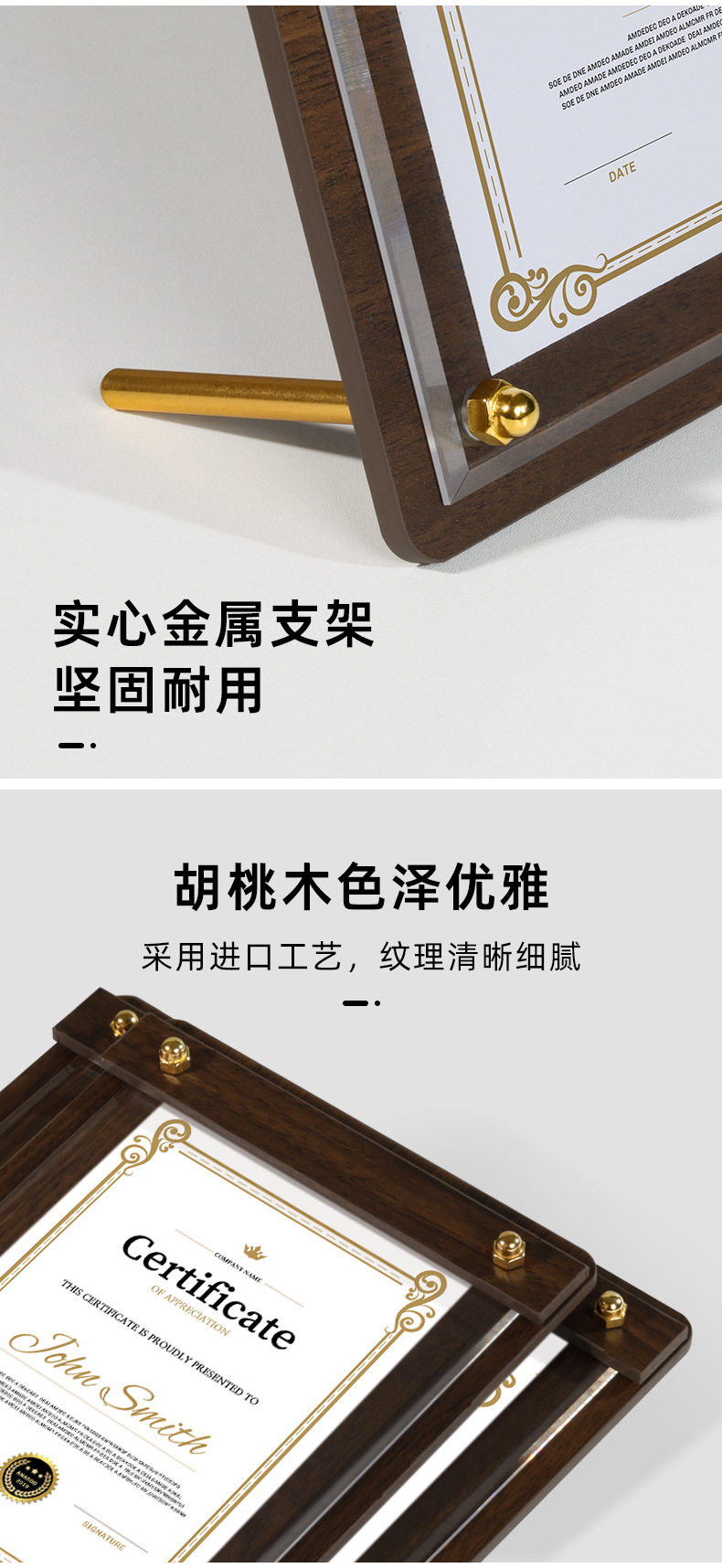 A4 아크릴 라이센스 장착 디스플레이 프레임 특허 인증서 프레임 견고한 목재 라이센스 승인 편지 명예 인증서 사진 프레임