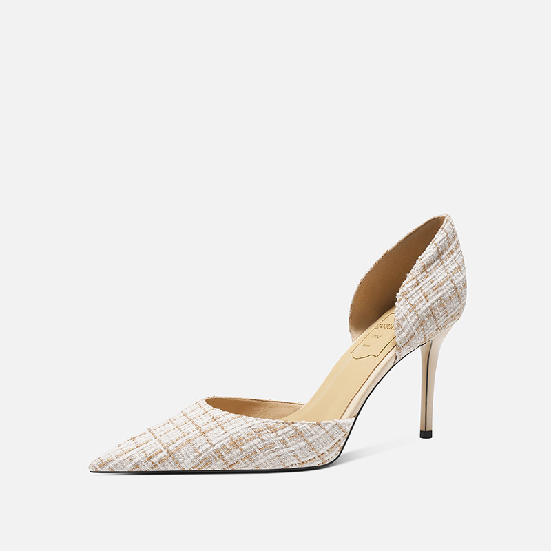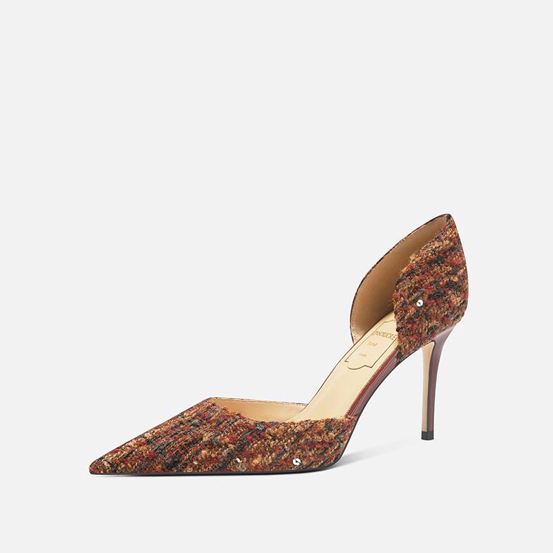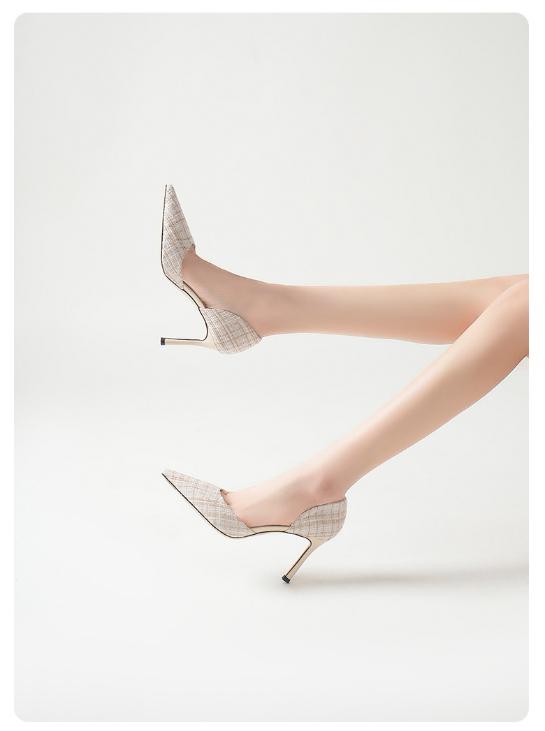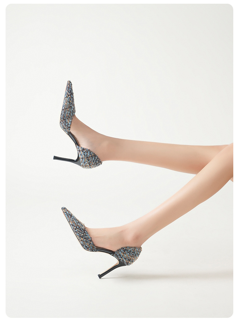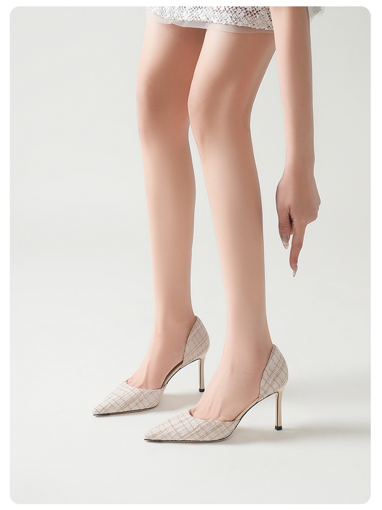 708-K60 프랑스 우아한 사교계 하이힐 여성용 스틸레토 힐스 소녀의 새로운 격자 무늬 샤넬 할로우 섹시한 스타일스토어 가기