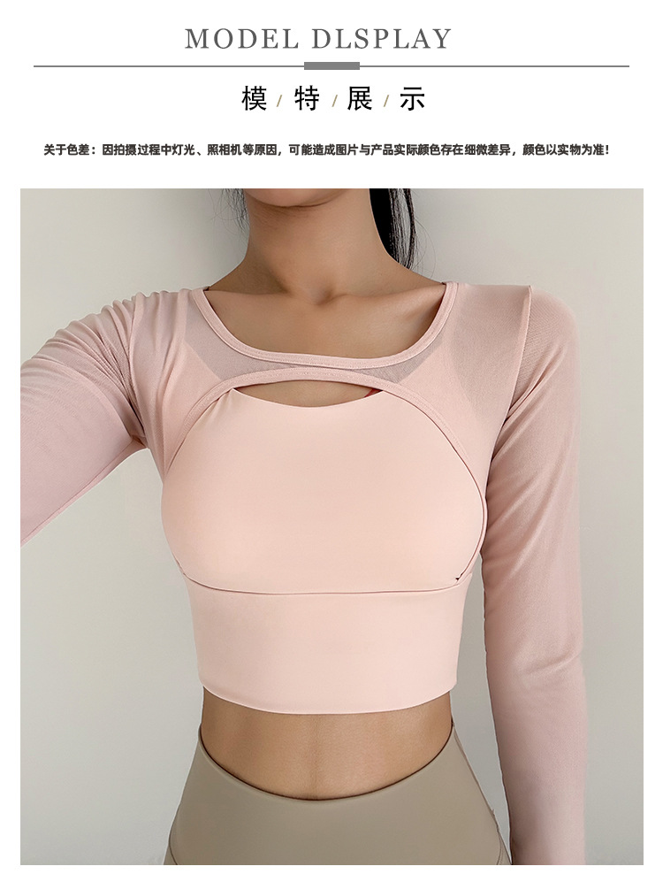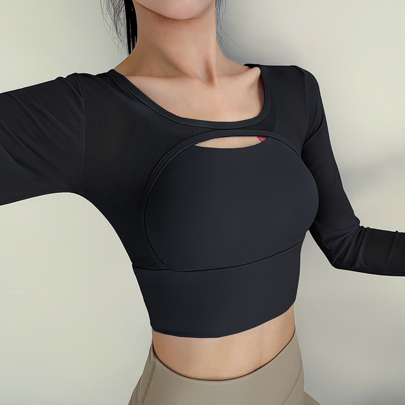 브래지어 패드 요가 할로우 아웃 메쉬 탑 슬림 핏 슬리밍 러닝 스포츠 테니스 피트니스 세트 여성용 긴팔 티셔츠스토어 가기