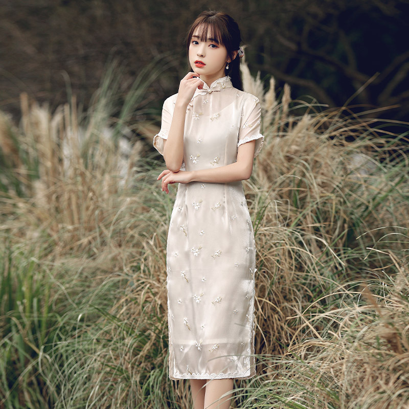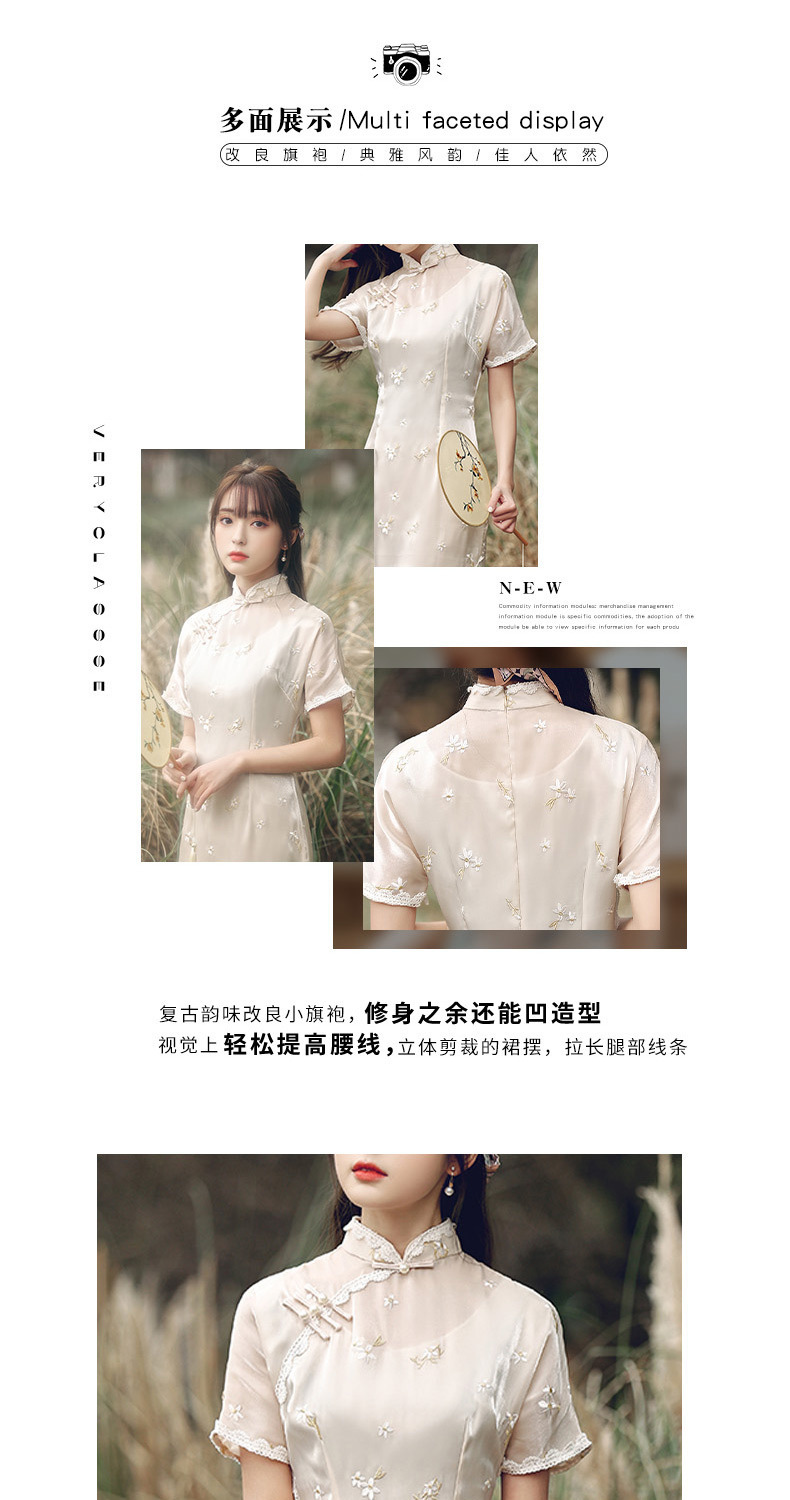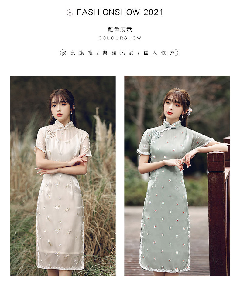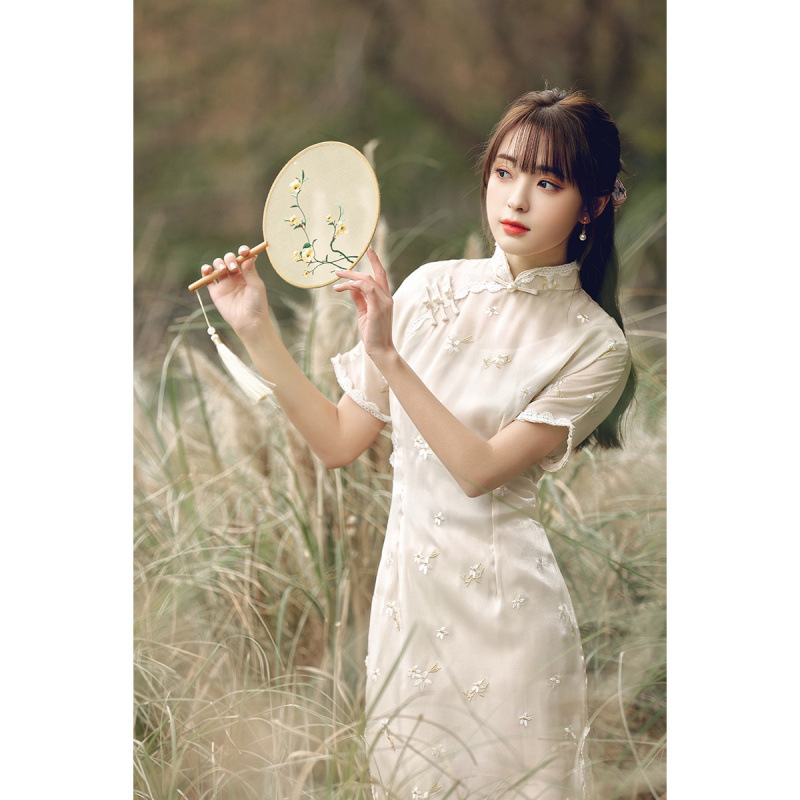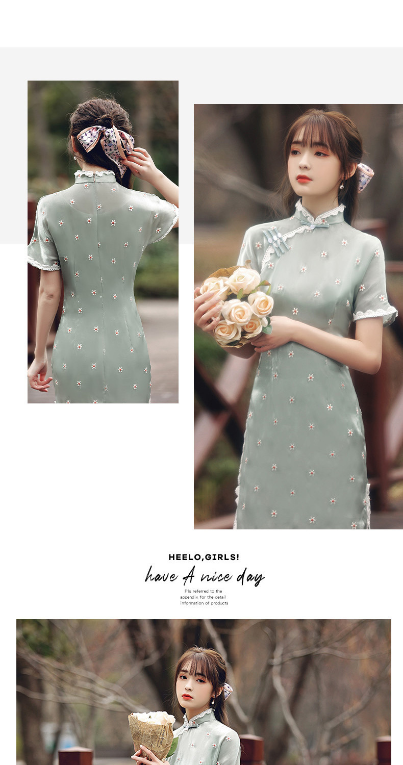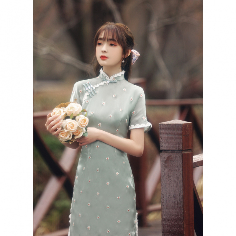봄 · 여름 새 수놓은 청삼 원피스 개선 패션 수놓은 청삼 귀여운 소녀 청삼 재고
