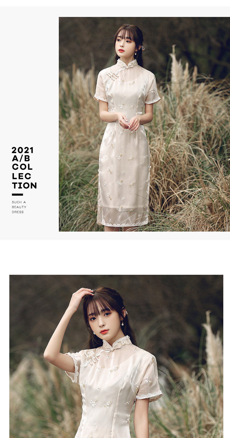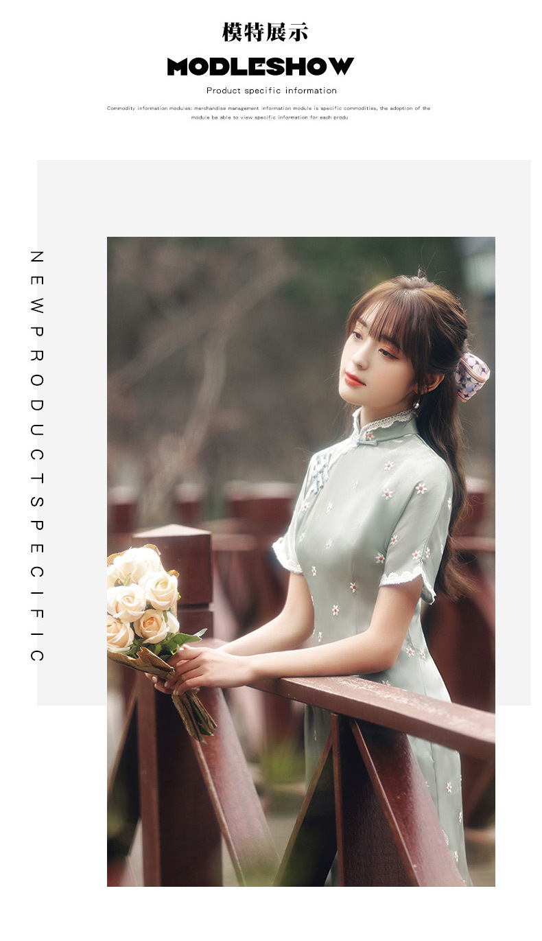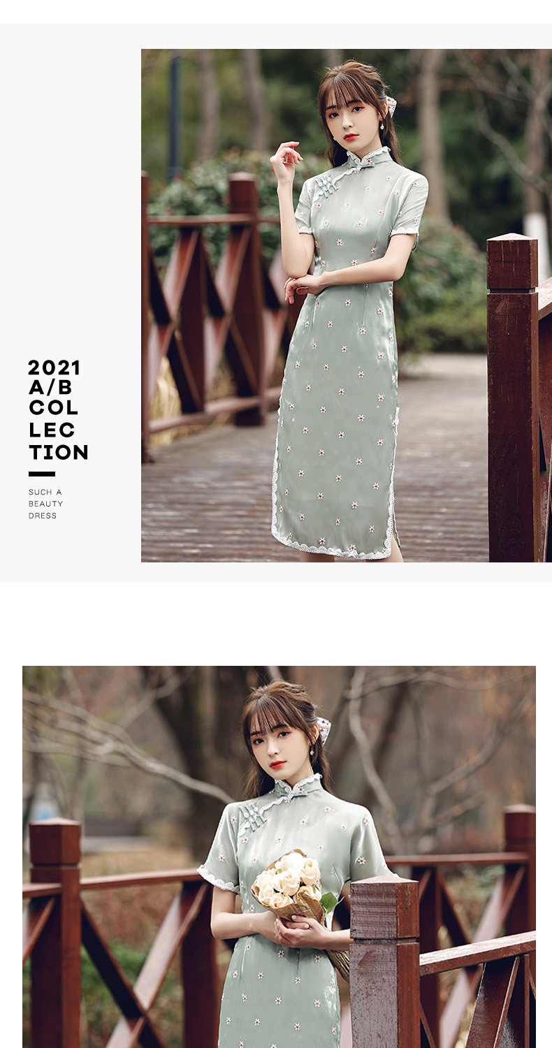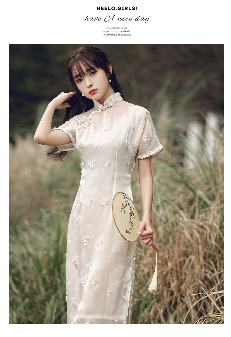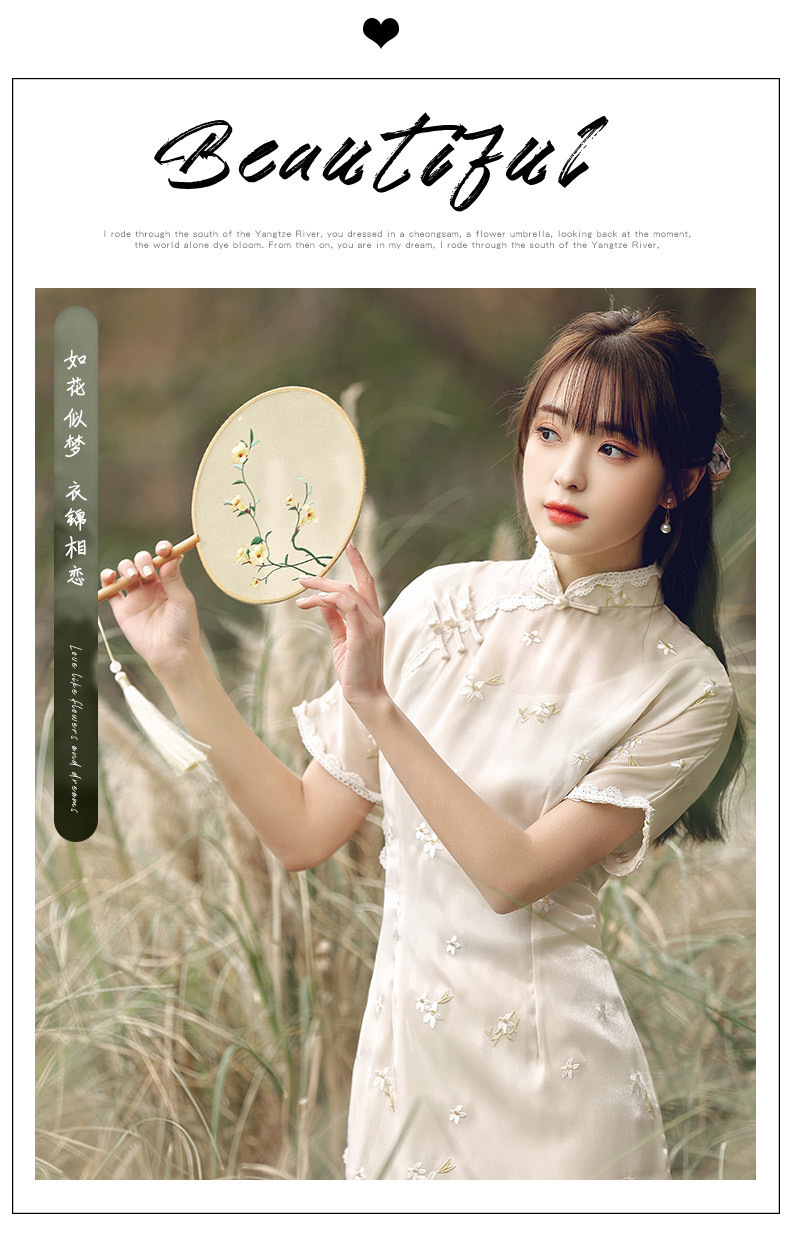 봄 · 여름 새 수놓은 청삼 원피스 개선 패션 수놓은 청삼 귀여운 소녀 청삼 재고