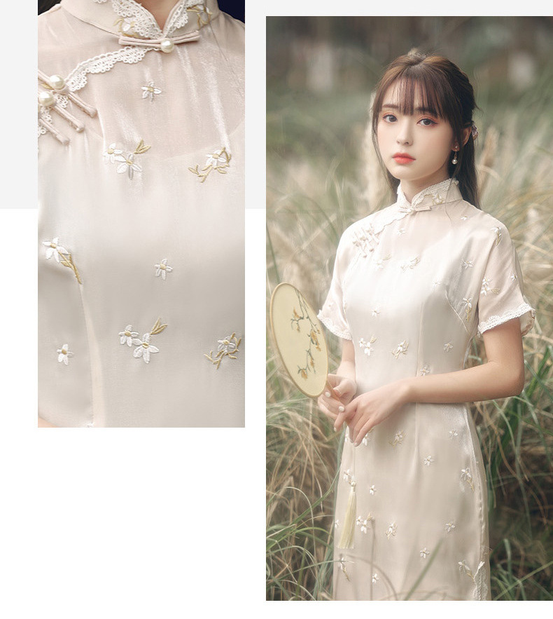 봄 · 여름 새 수놓은 청삼 원피스 개선 패션 수놓은 청삼 귀여운 소녀 청삼 재고스토어 가기