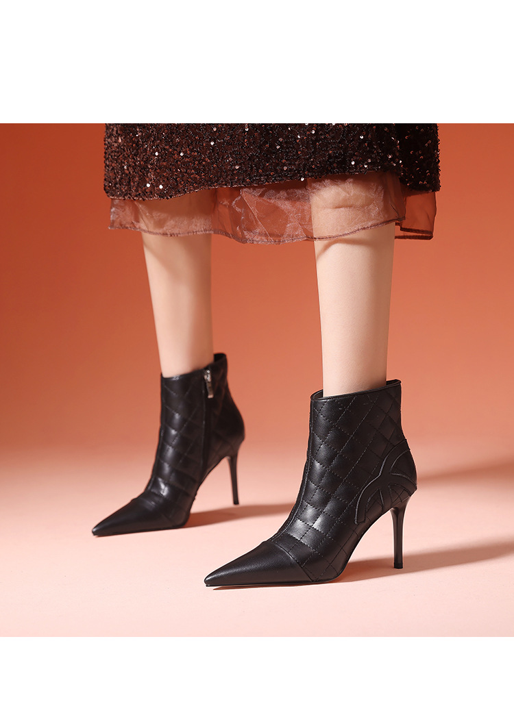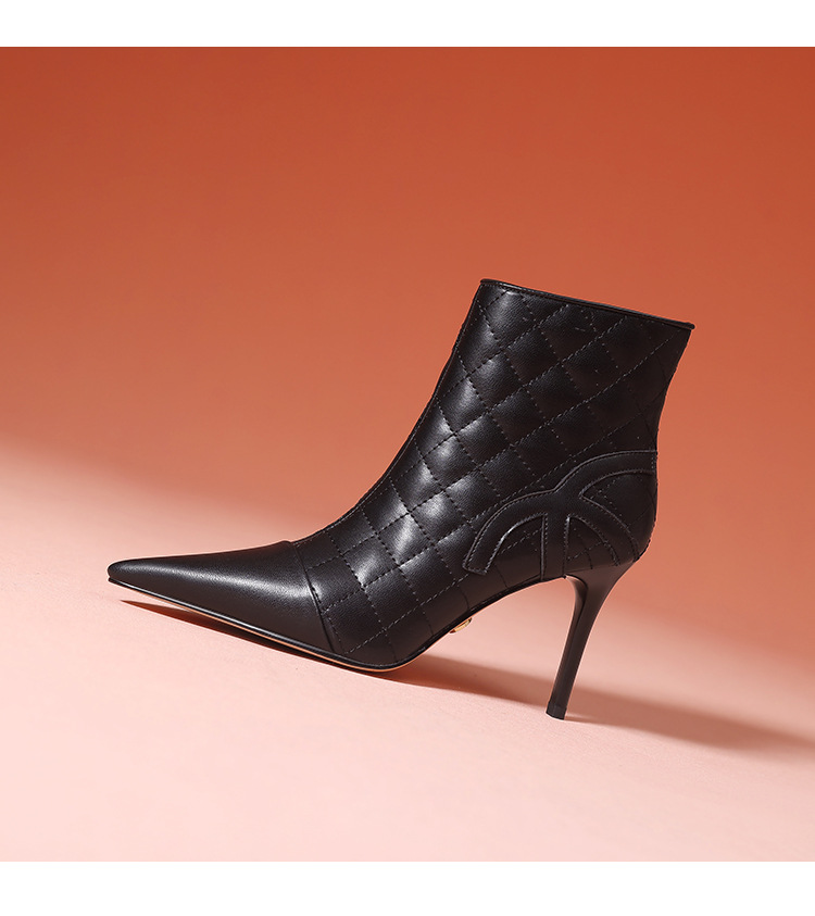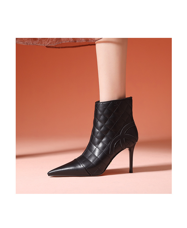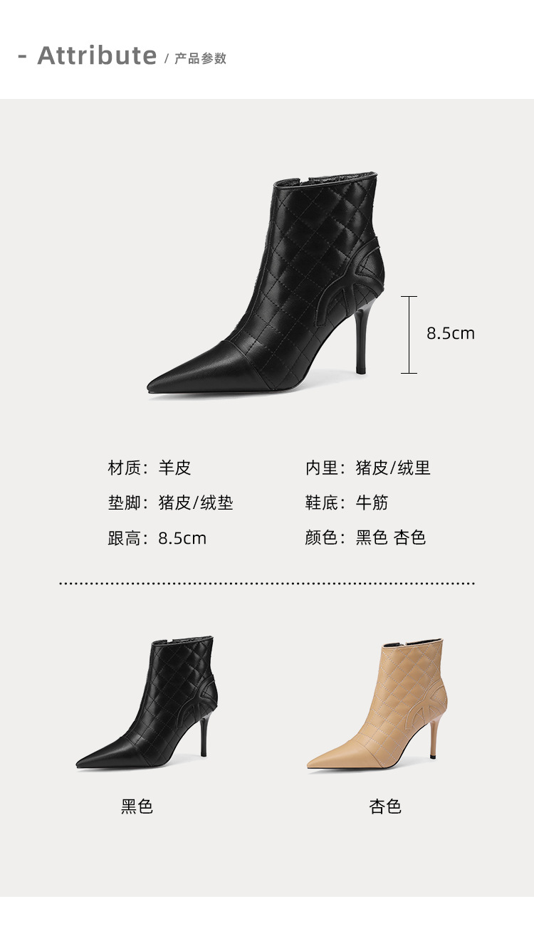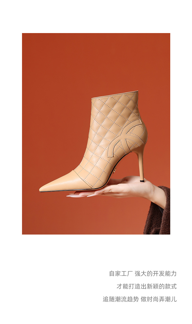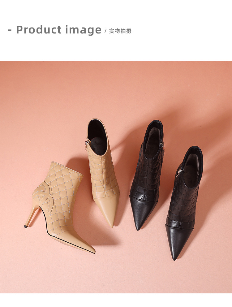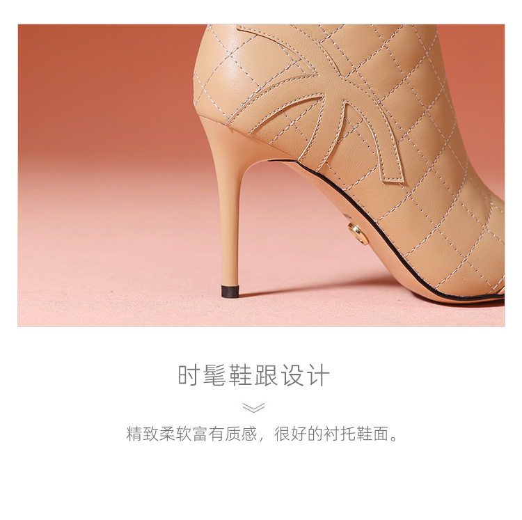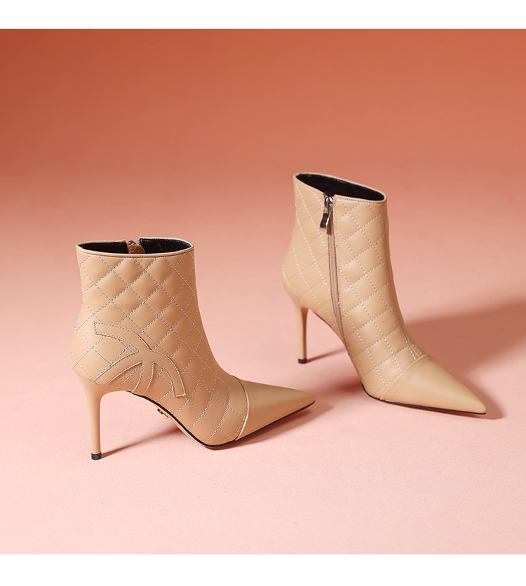 새로운 샤넬 스타일 양가죽 패션 부츠 여성 뾰족한 우아한 여성 마름모꼴 짧은 부츠 살구색 얇은 부츠스토어 가기