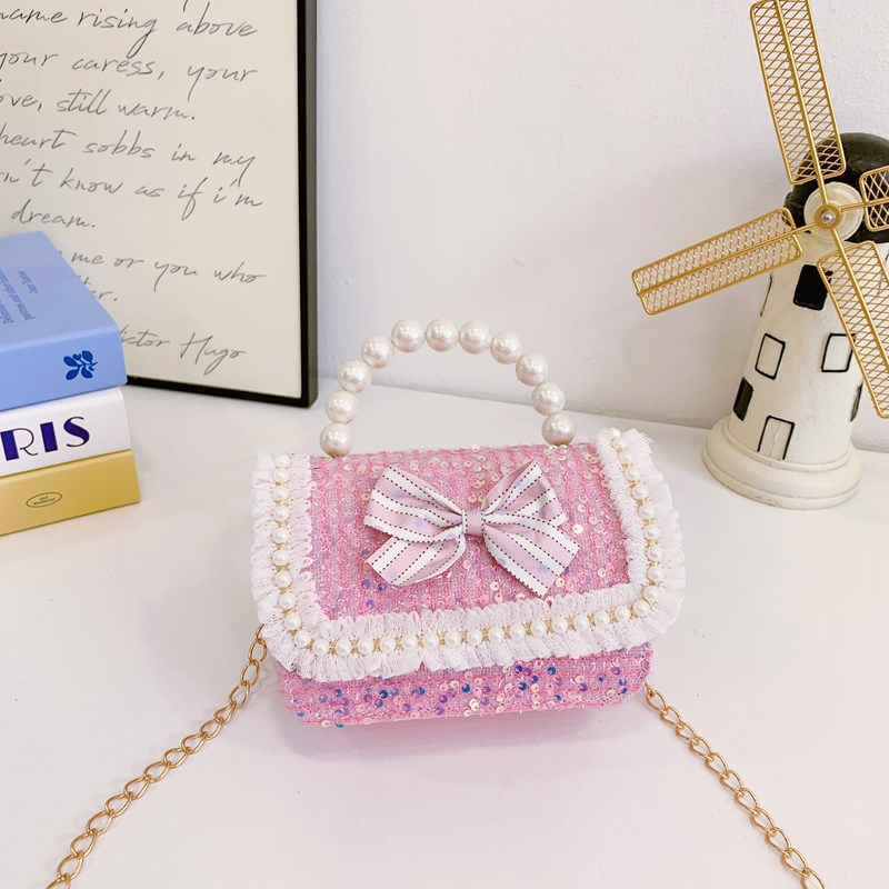 새로운 국경 활 어린이 가방 유치원 작은 소녀 크로스 바디 가방 새해 진주 휴대용 동전 지갑 도매스토어 가기