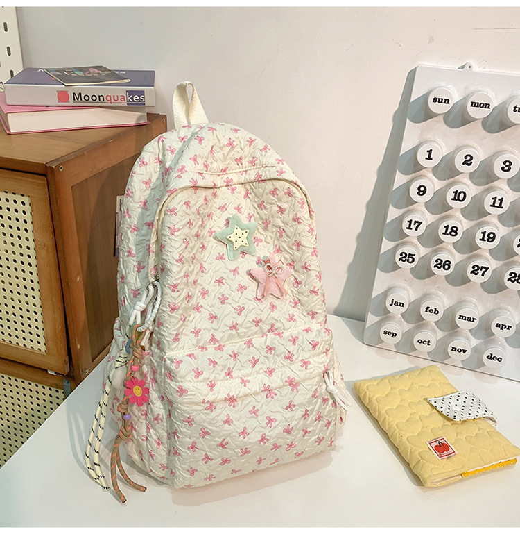 스쿨백 여성 대학생 통근 간단한 클래스 작은 배낭 스타 꽃 디자인 작은 빛과 귀여운 배낭스토어 가기