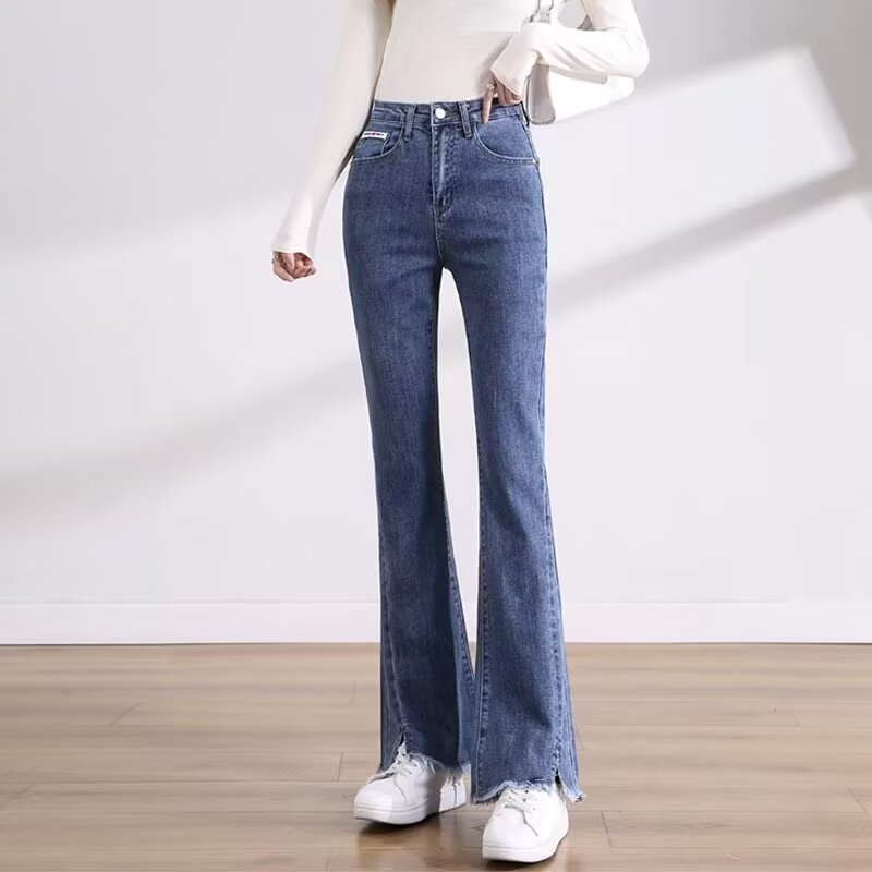 높은 허리 슬립 바지 여성용 청바지 2024 가을과 겨울 새로운 작은 슬리밍 랩 회전 탄성 경적 바지스토어 가기