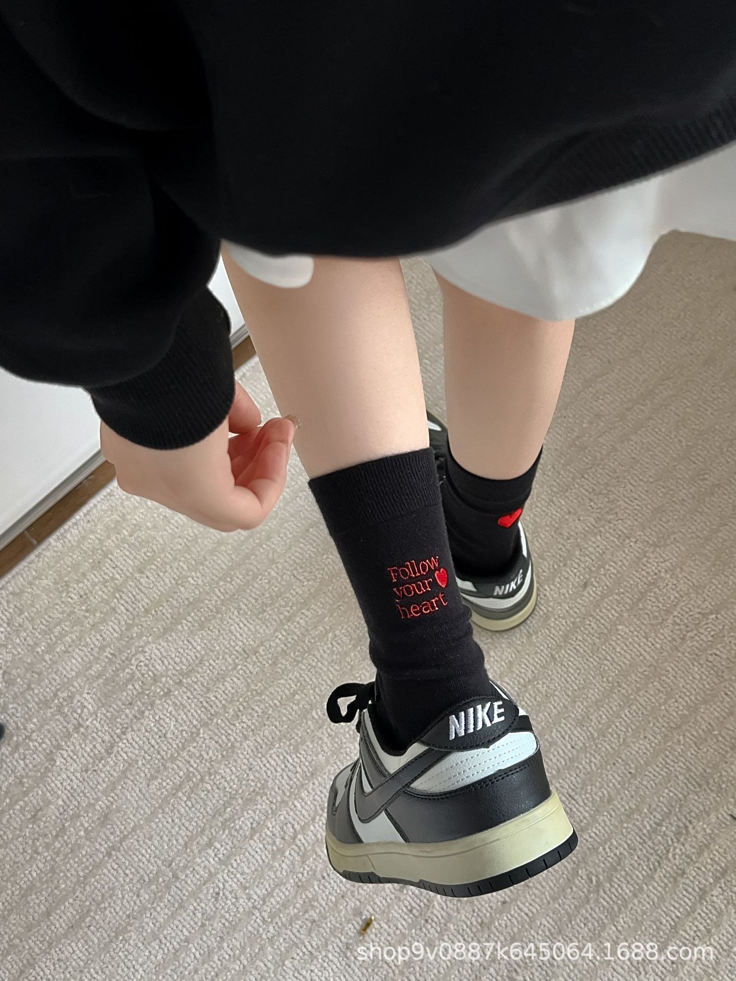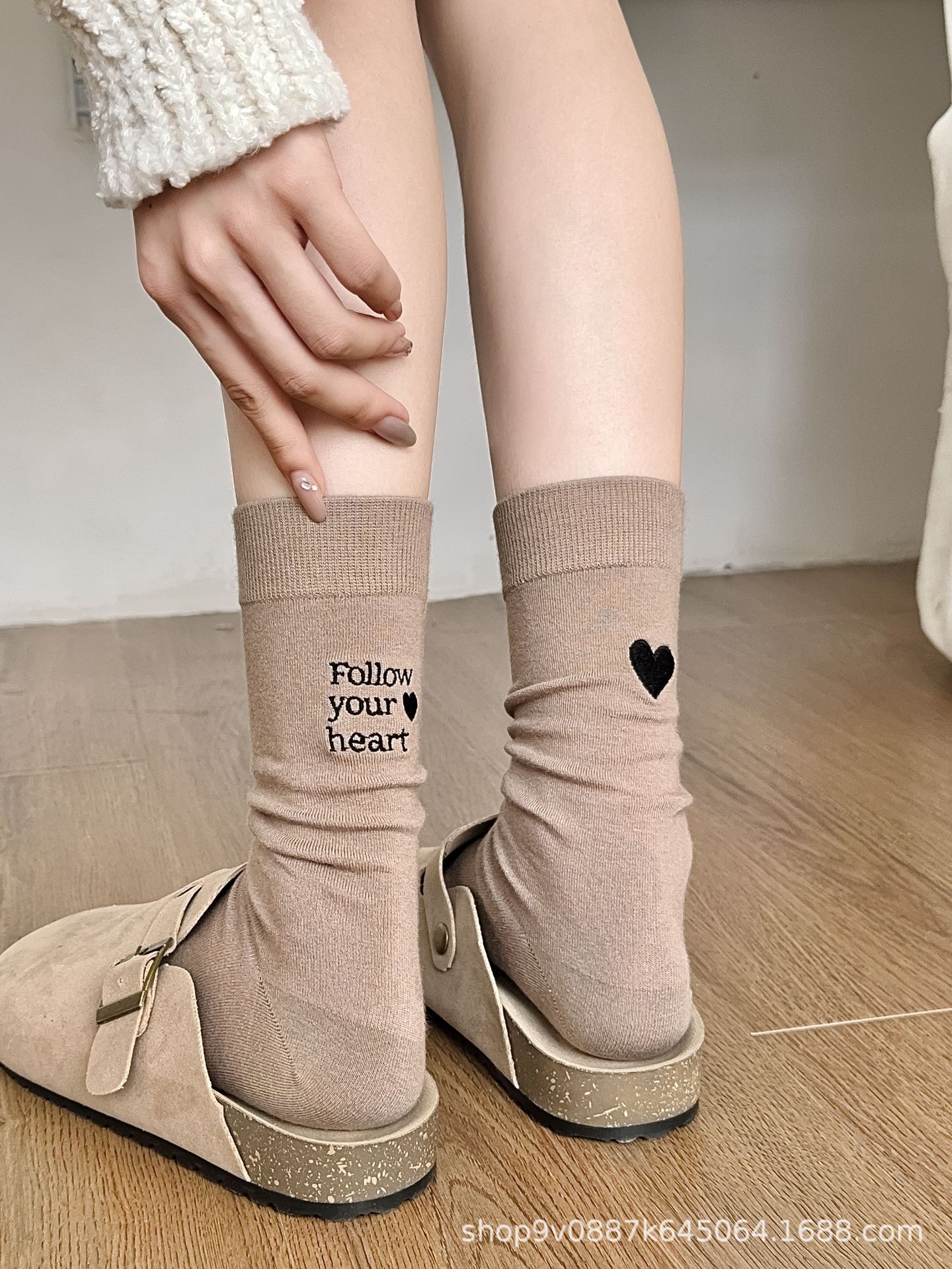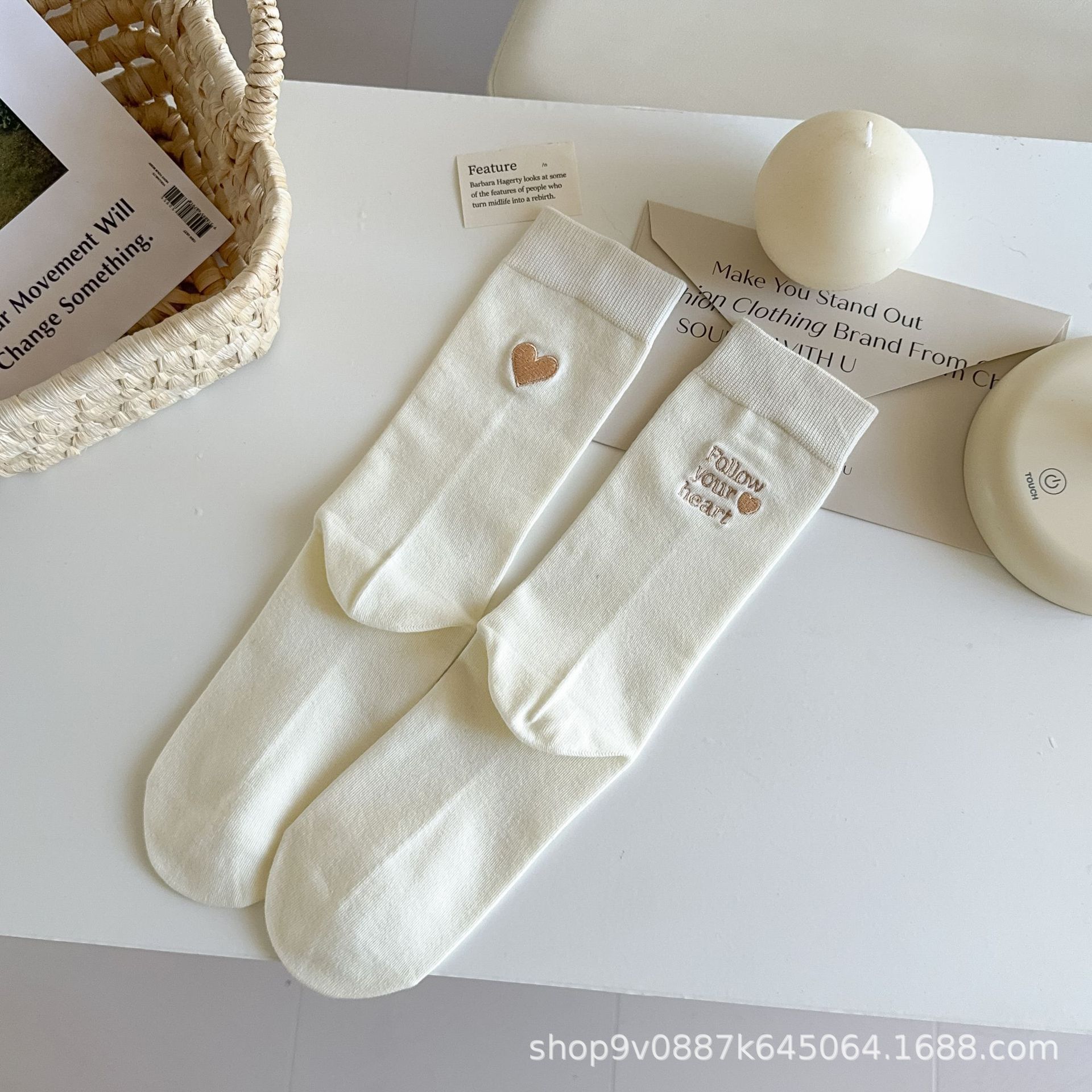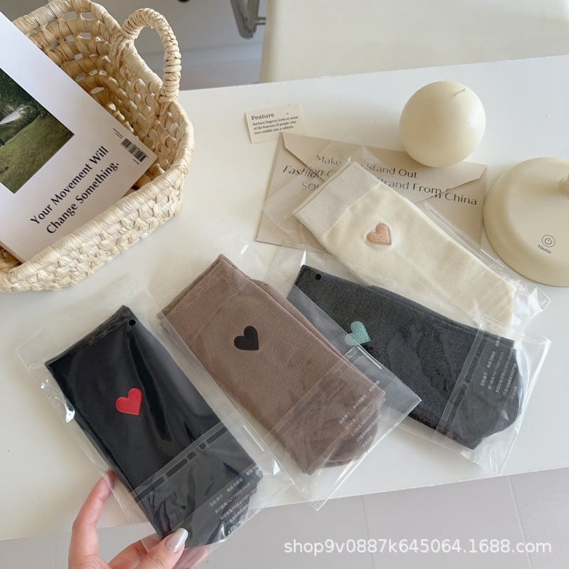 2024 년 튜브 양말에 새로운 폭발 단순 AB 자수 연애 편지 한국 양말 여성 가을 겨울 뼈없는 양말스토어 가기