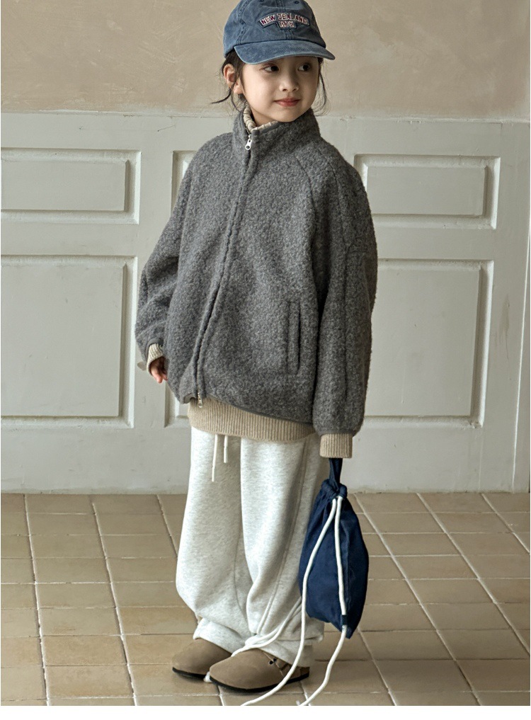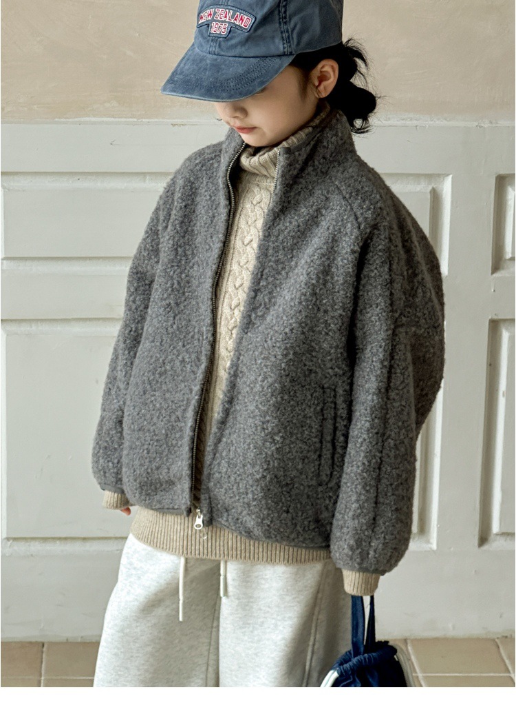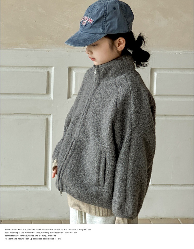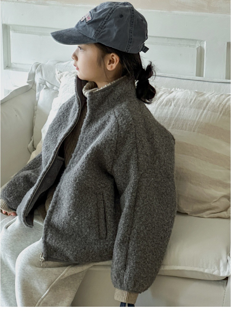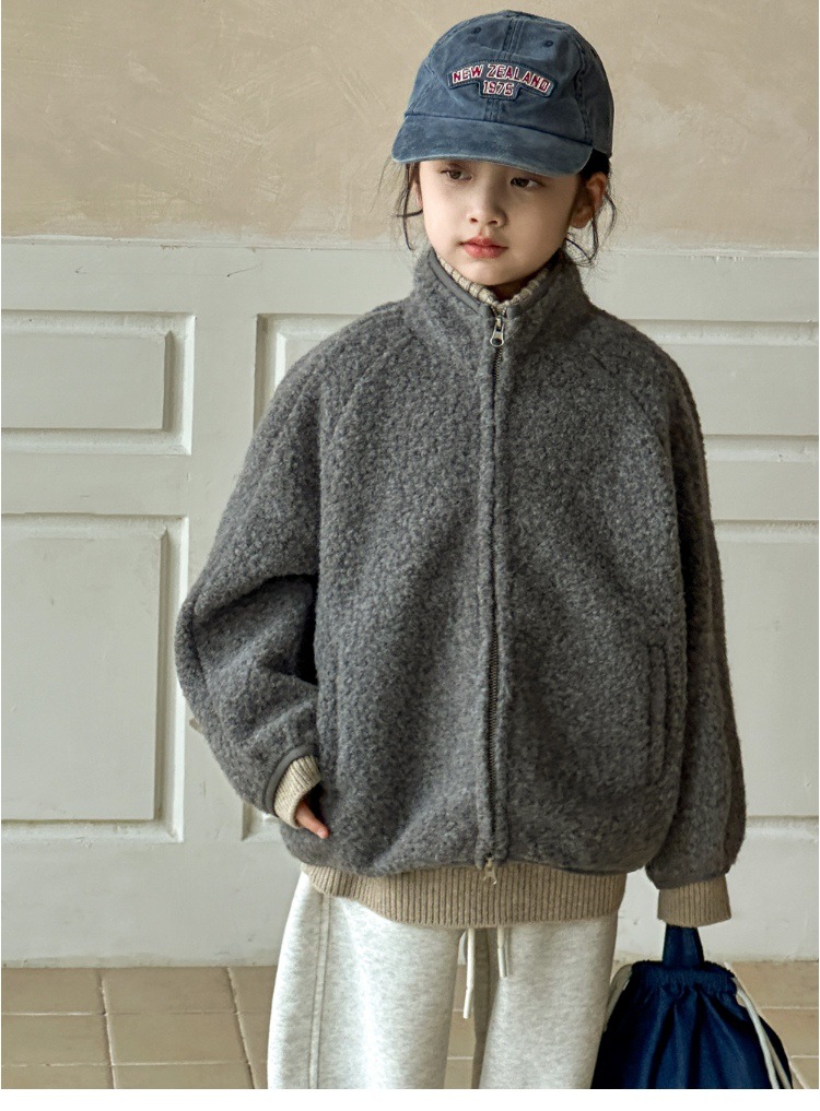 여자 양고기 양모 두꺼운 코트 가을과 겨울 어린이 높은 칼라 캐주얼 겨울 따뜻한 중간 및 큰 어린이 기모 재킷