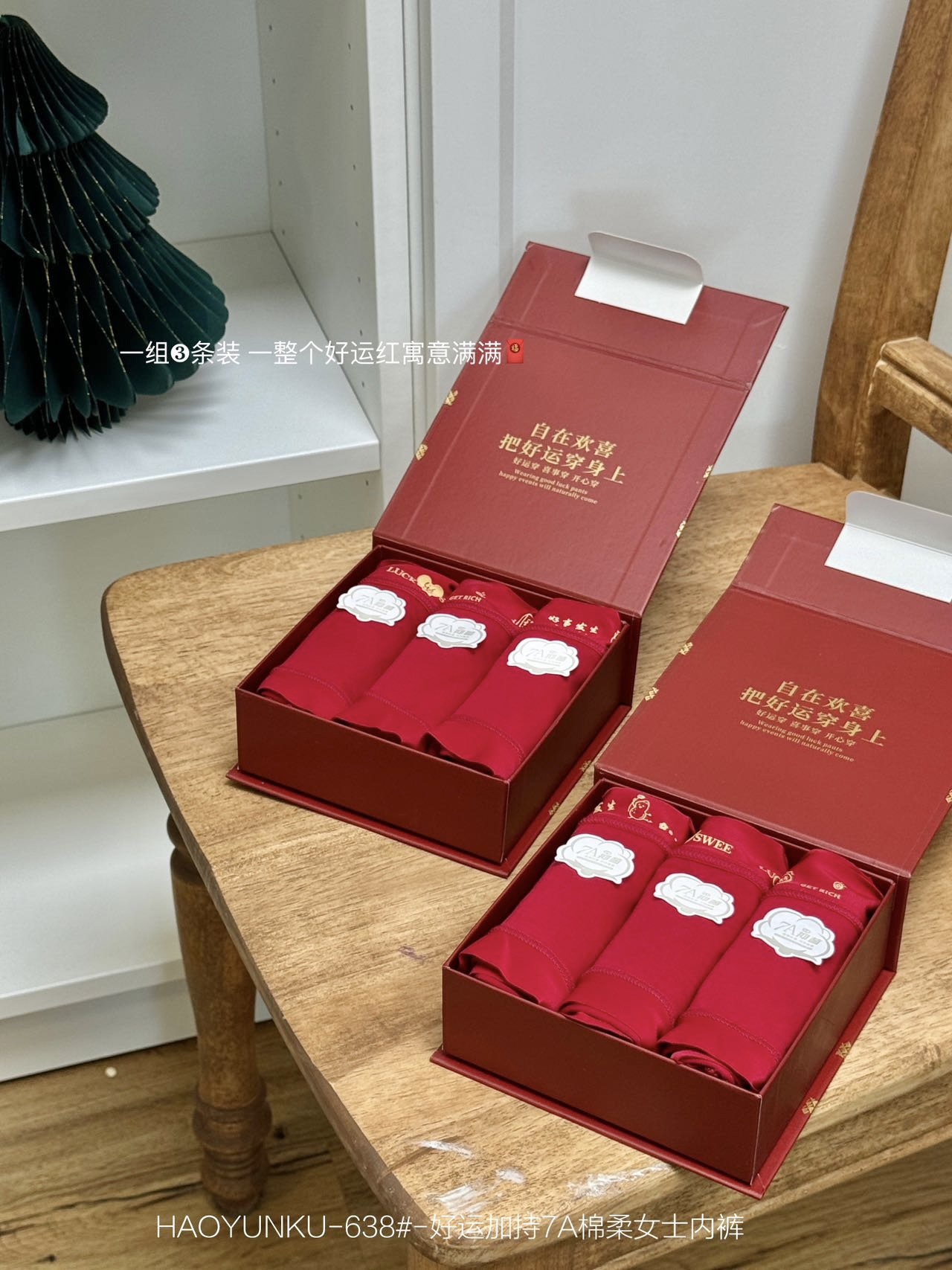 레드 속옷 여성용 퓨어 코튼 브닝 올겨울 항균 크로트 가을과 겨울 새로운 미드 허리 엉덩이 피부 친화적 인 삼각형 반바지스토어 가기