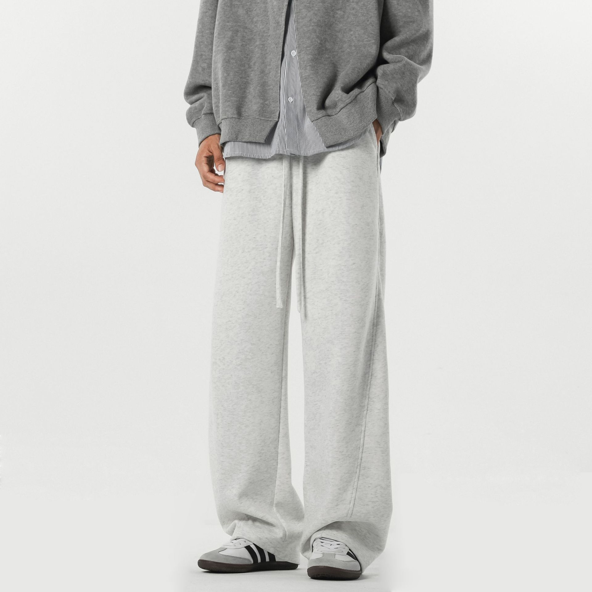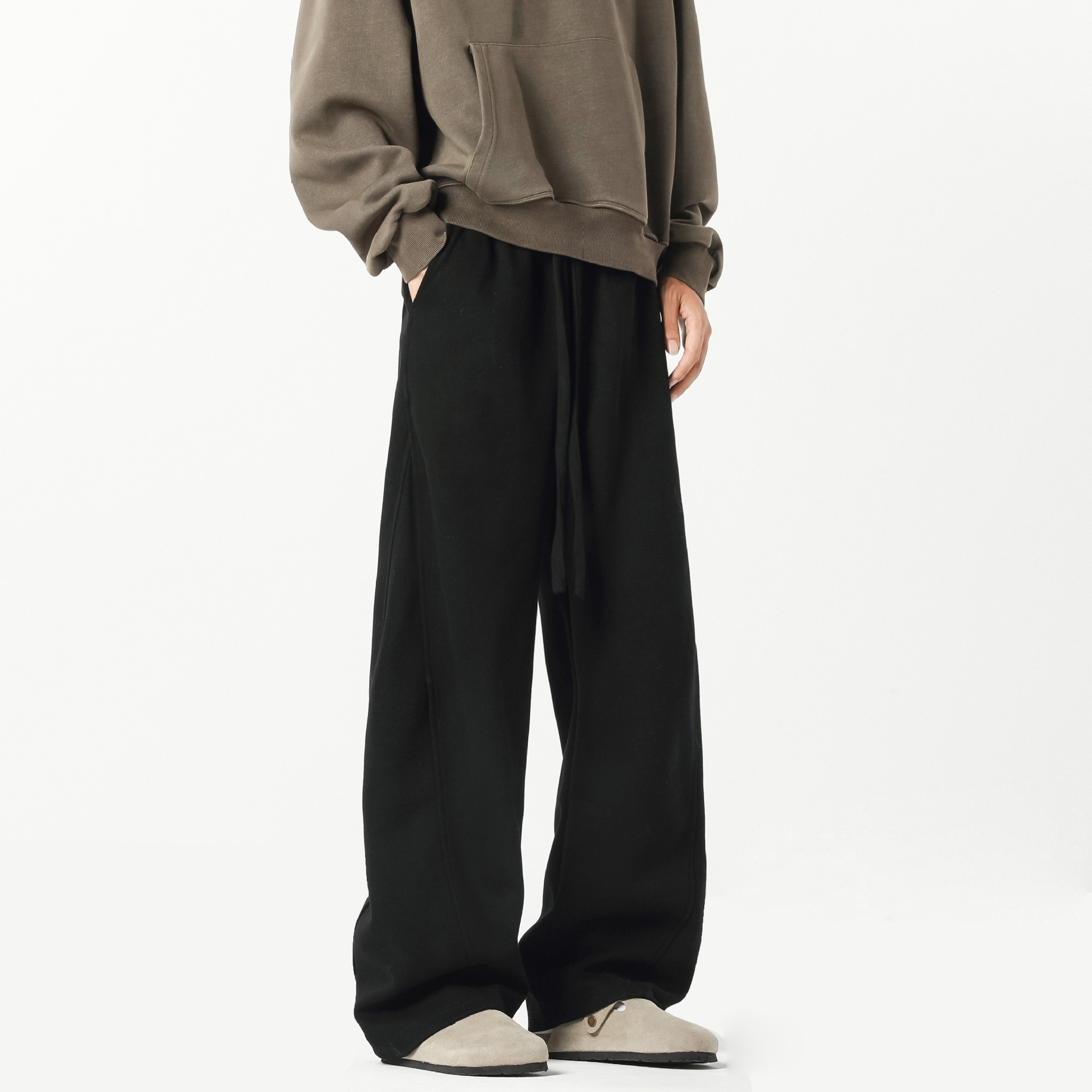 미국식 하이 스트리트 시미 터 바지 남자 가을 패션 브랜드 바느질 와이드 레그 스포츠 바지 레트로 올매치 스트레이트 캐주얼 바지스토어 가기