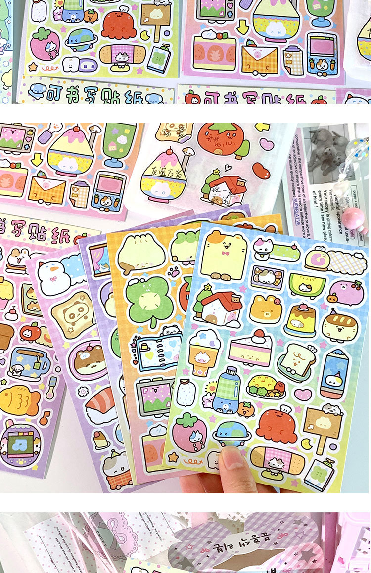 귀여운 만화 쓰기 스티커 라벨 스티커 잘못된 메모 학생 노트 메시지 메모 손 계정 스티커스토어 가기