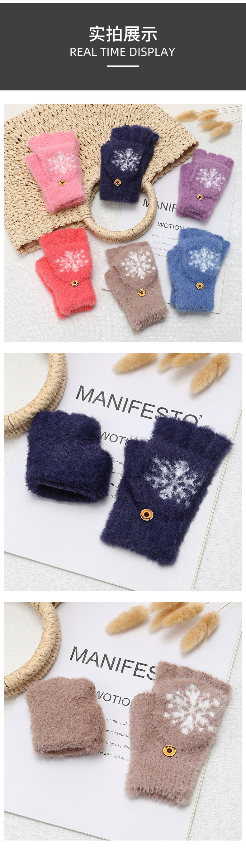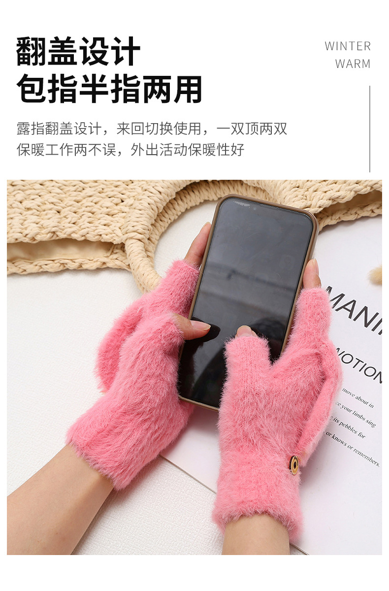 모조 밍크 울 가을과 겨울 니트 장갑 반 손가락 플립 터치 스크린 장갑을 타고 플러시 따뜻한 장갑 도매스토어 가기