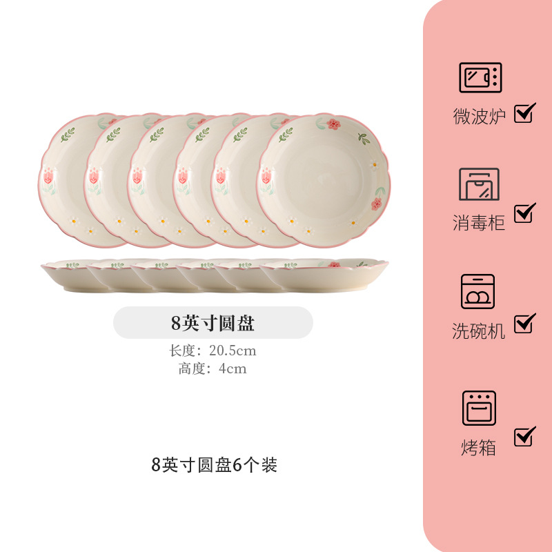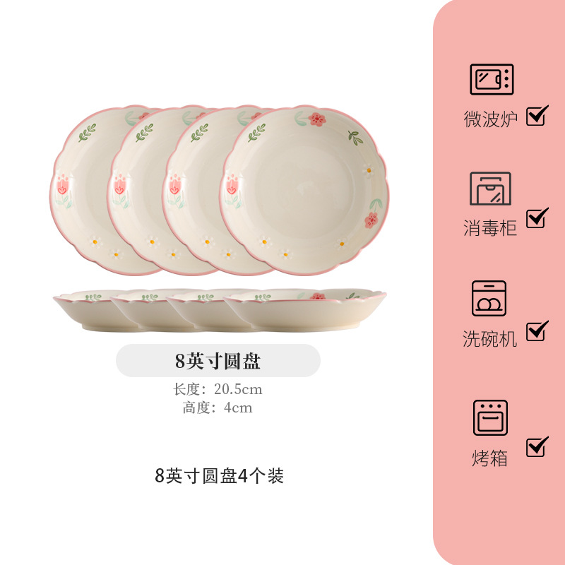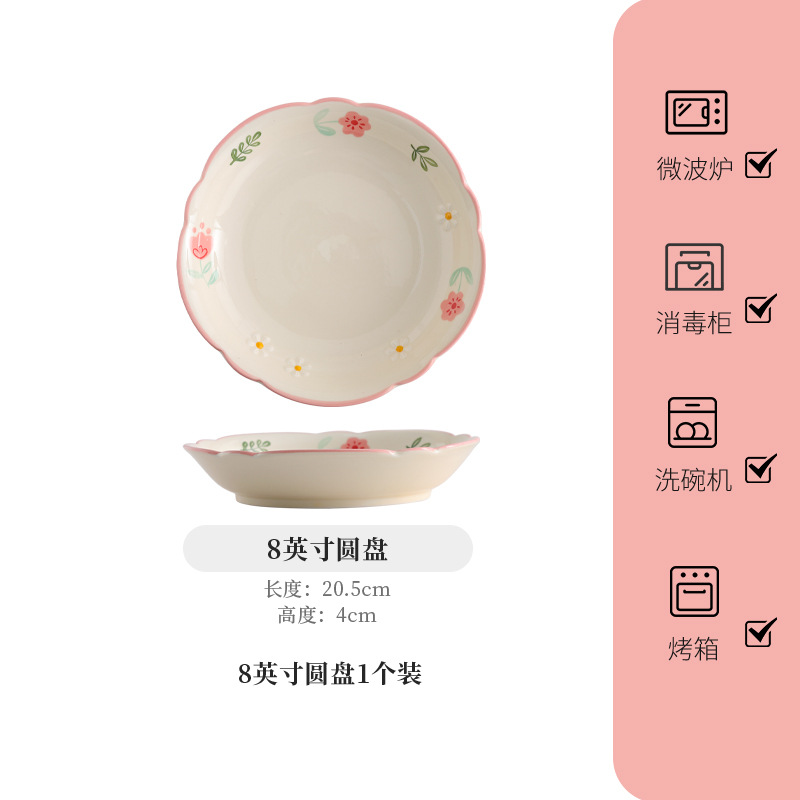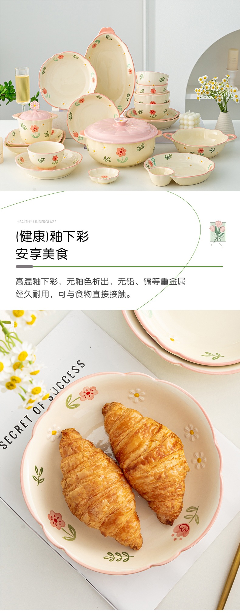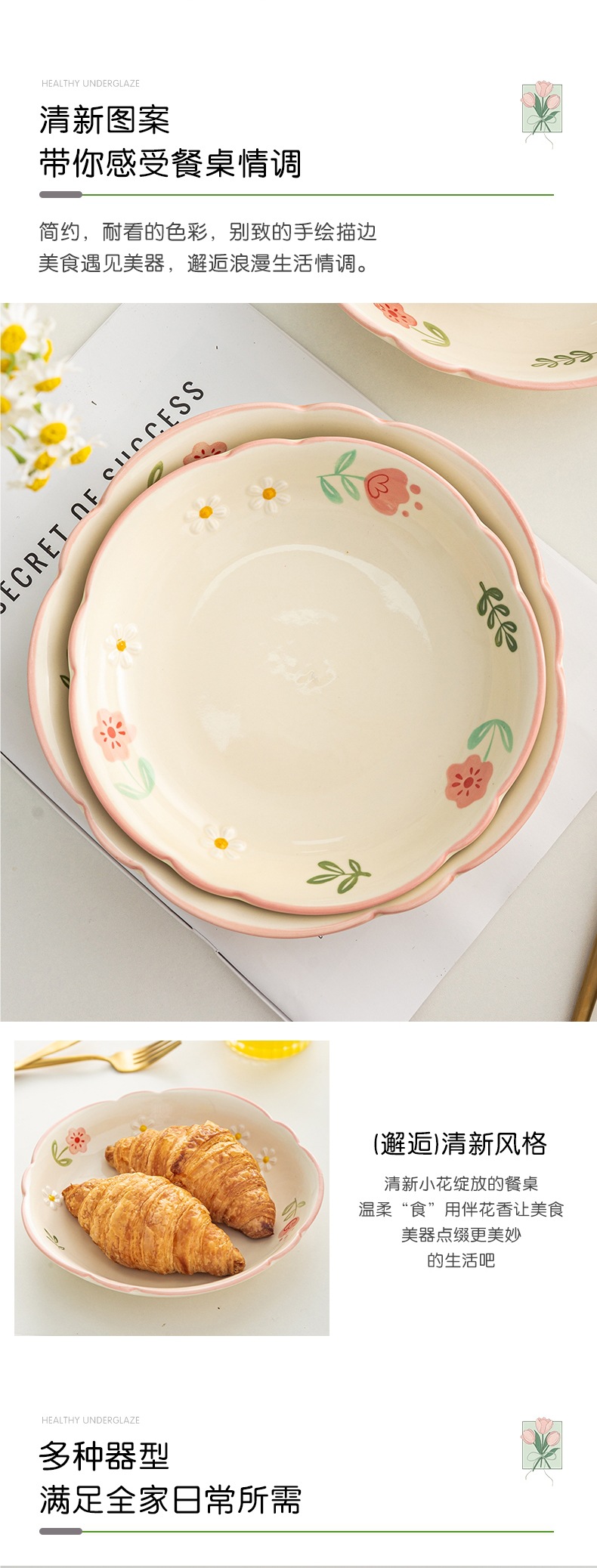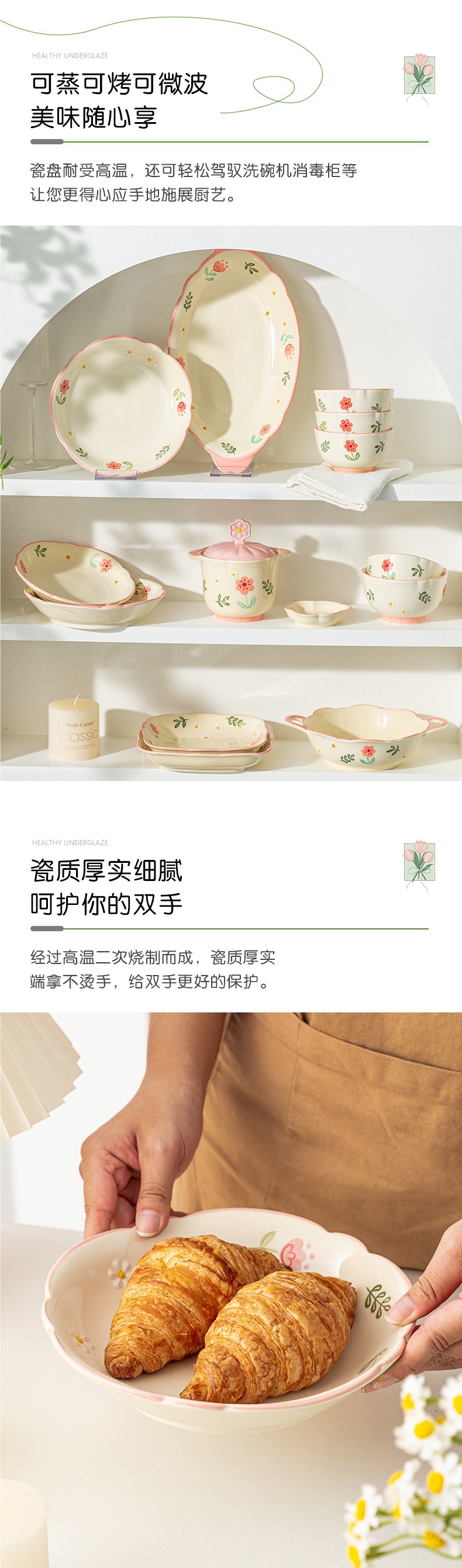 귀여운 세라믹 접시 가정용 유약 색상 2024 새로운 스타일 그릇과 접시 식기 감각 깊은 디너 플레이트스토어 가기