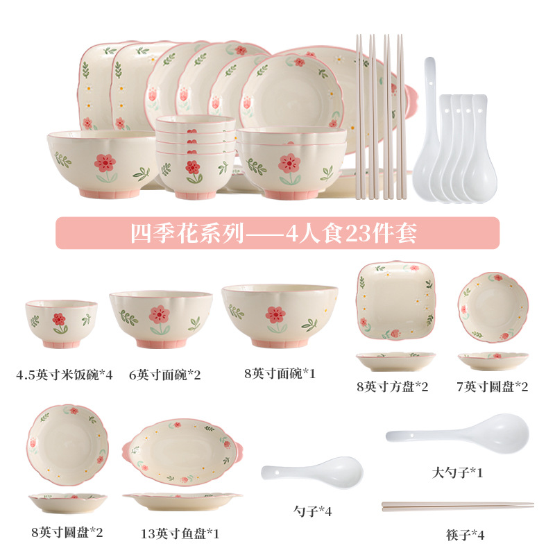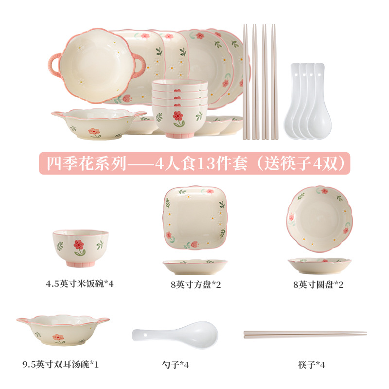 • 4인 13종 세트에는 젓가락 4쌍이 포함되어 있습니다. [고온 언더글레이즈 색상, 파손시 보상, 무료 재발급]